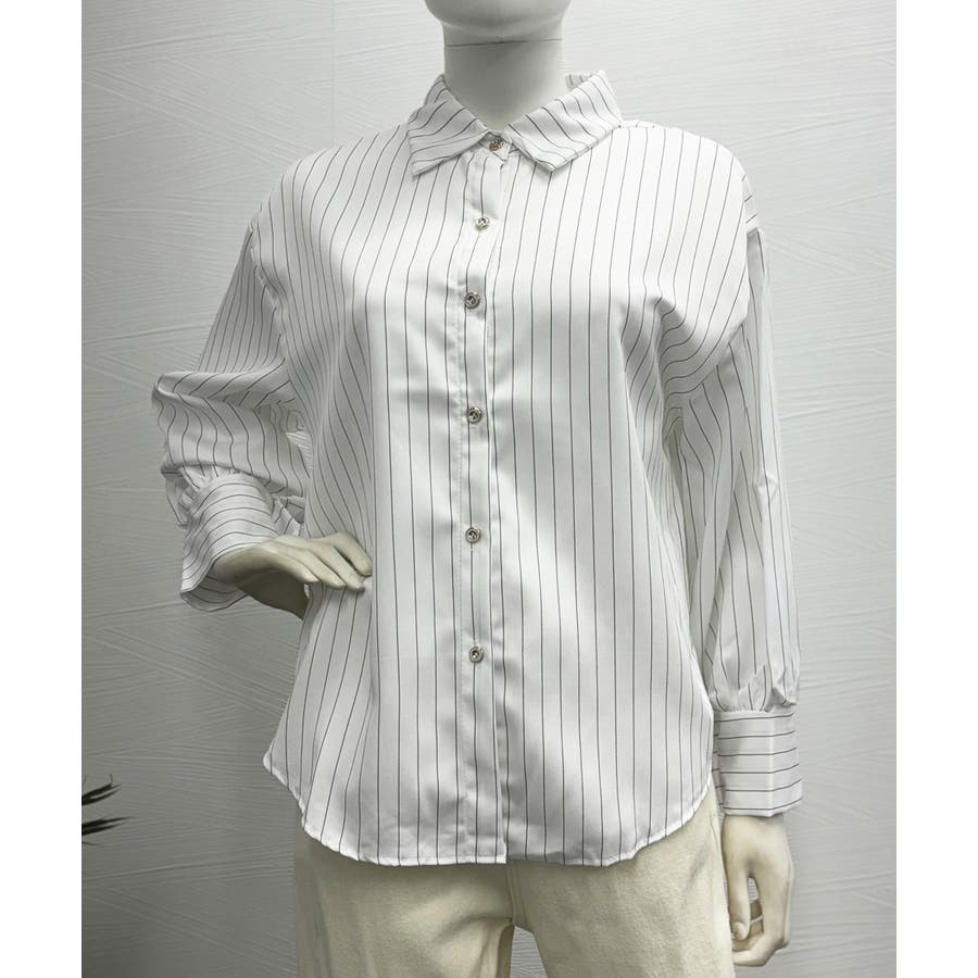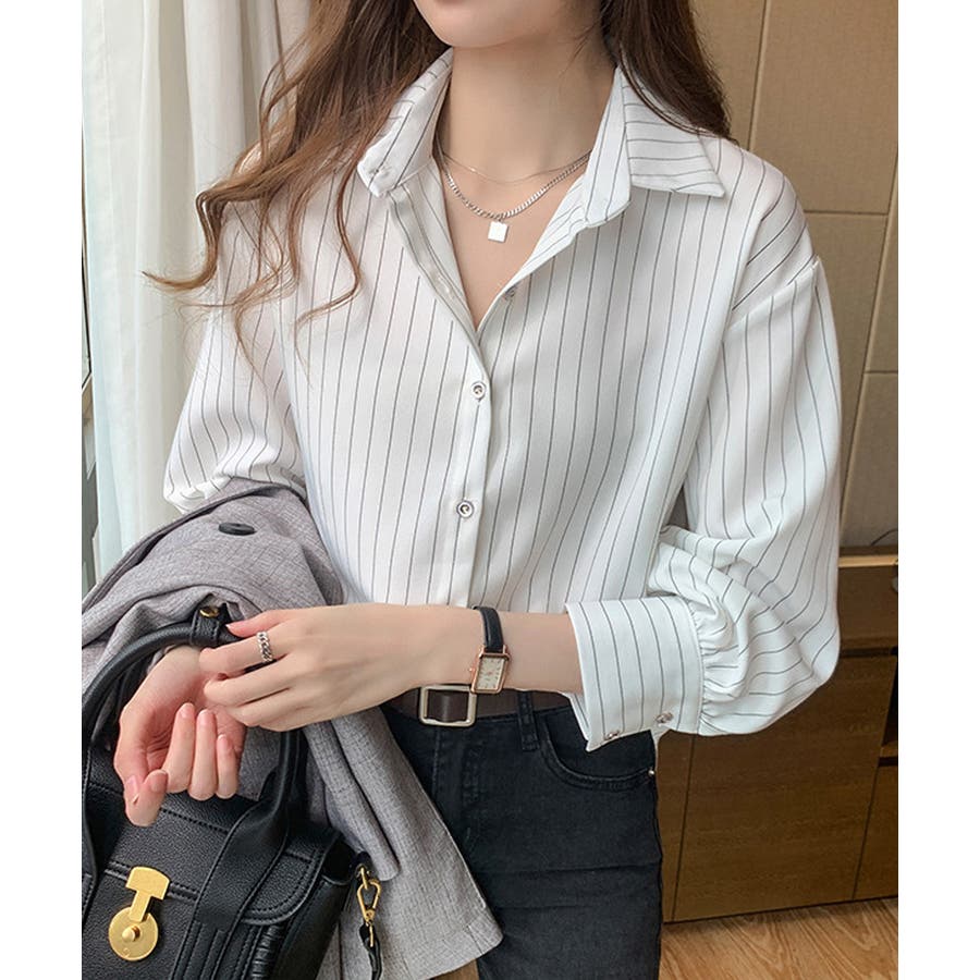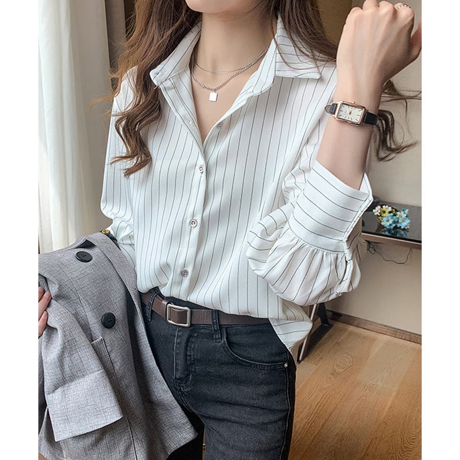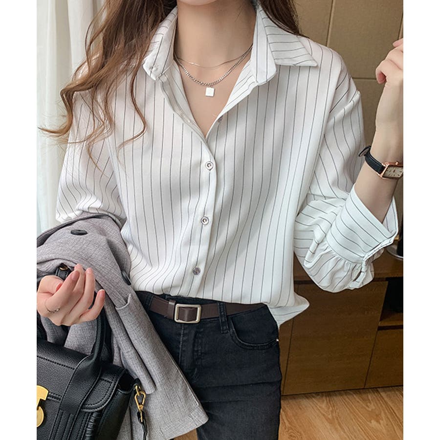 洗練されたシルエットを作り出すレディースストライプ柄シャツ