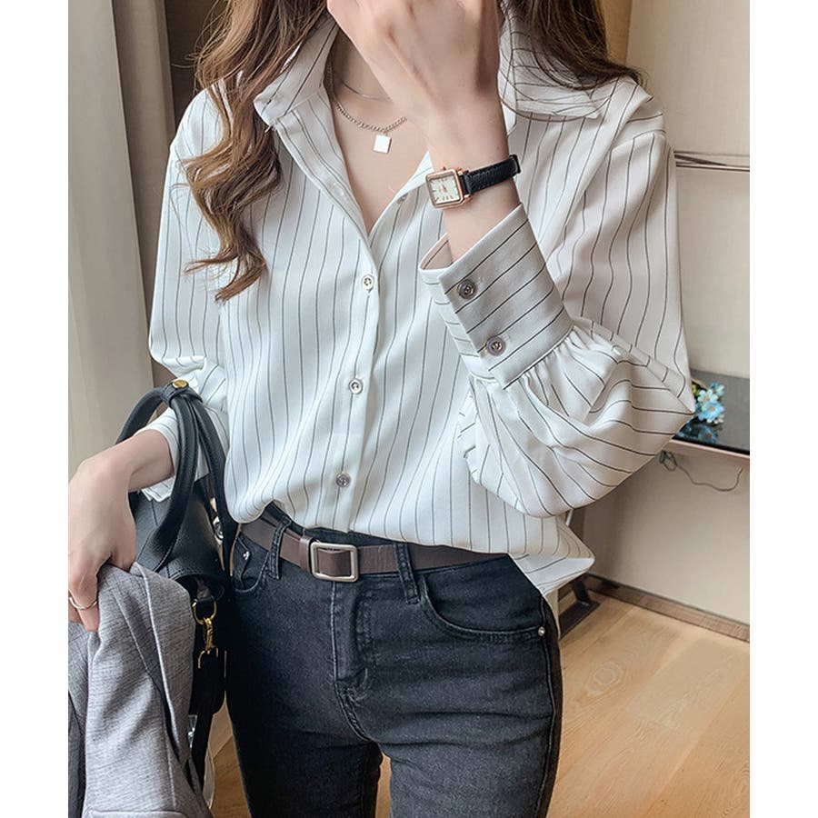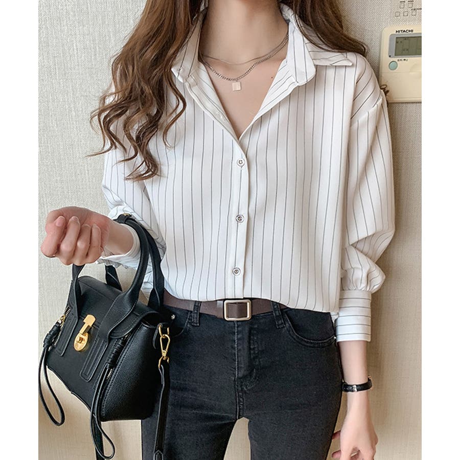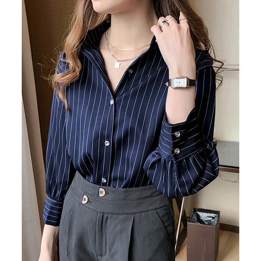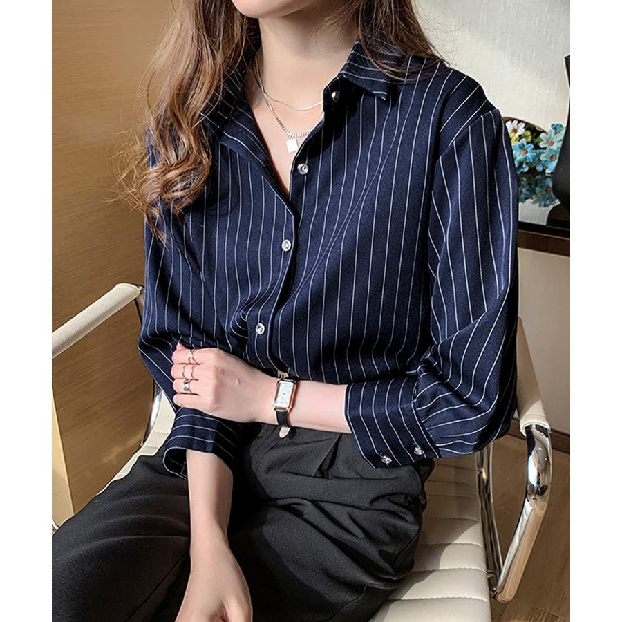 ストライプシャツブラウス レディース長袖