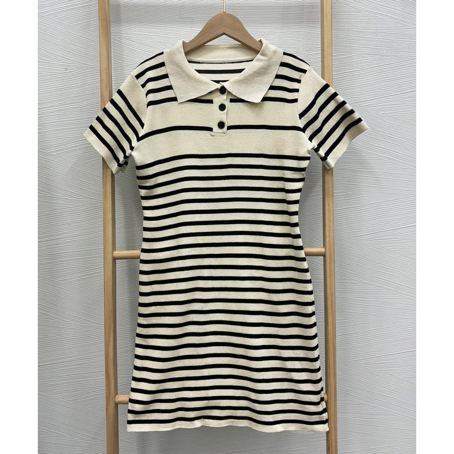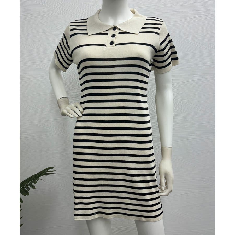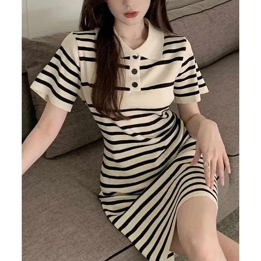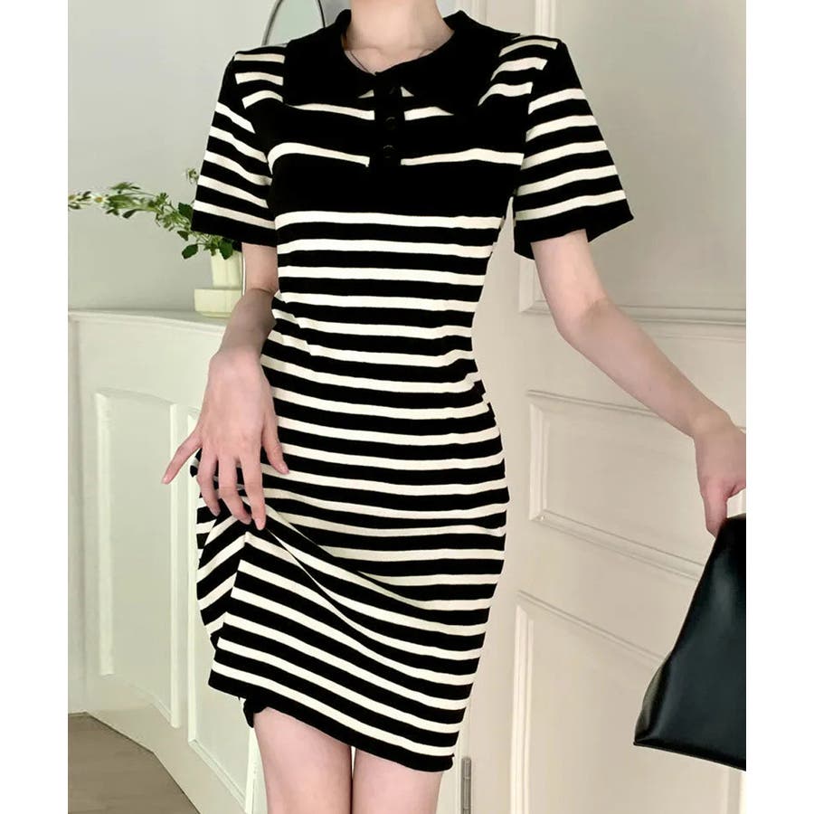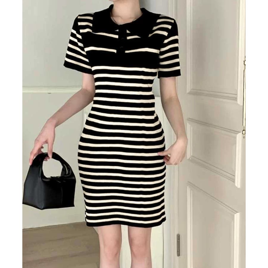 体にぴったりフィットして、ボディラインを魅せるボーダー柄ニットワンピース