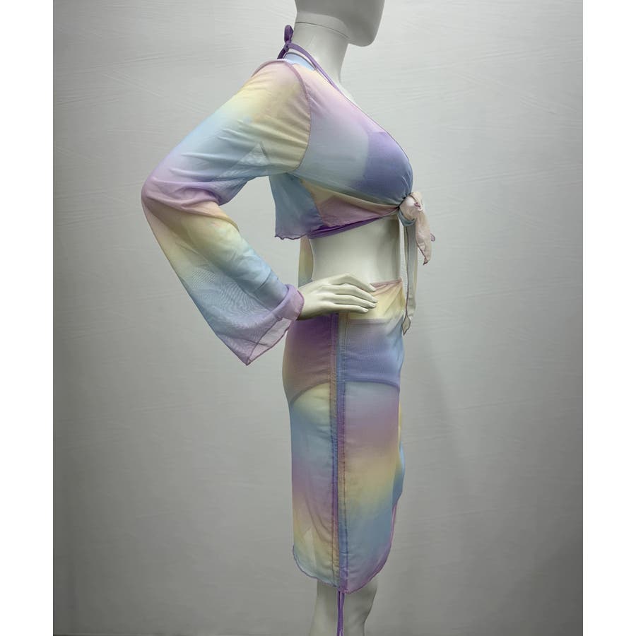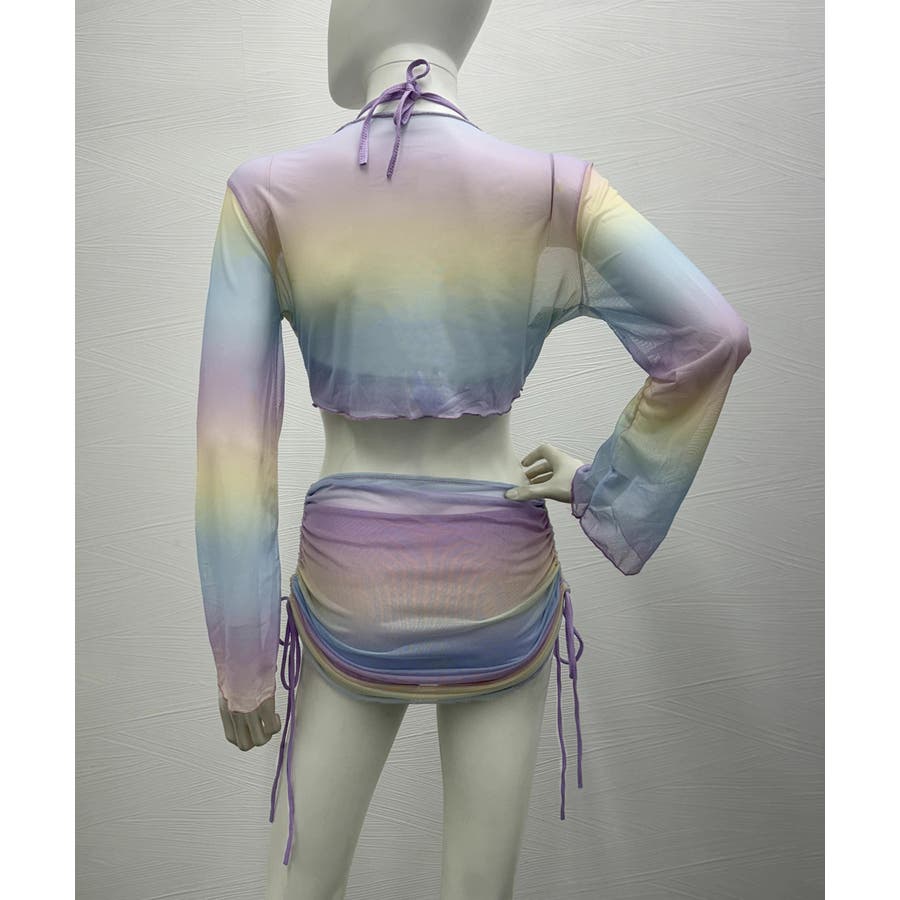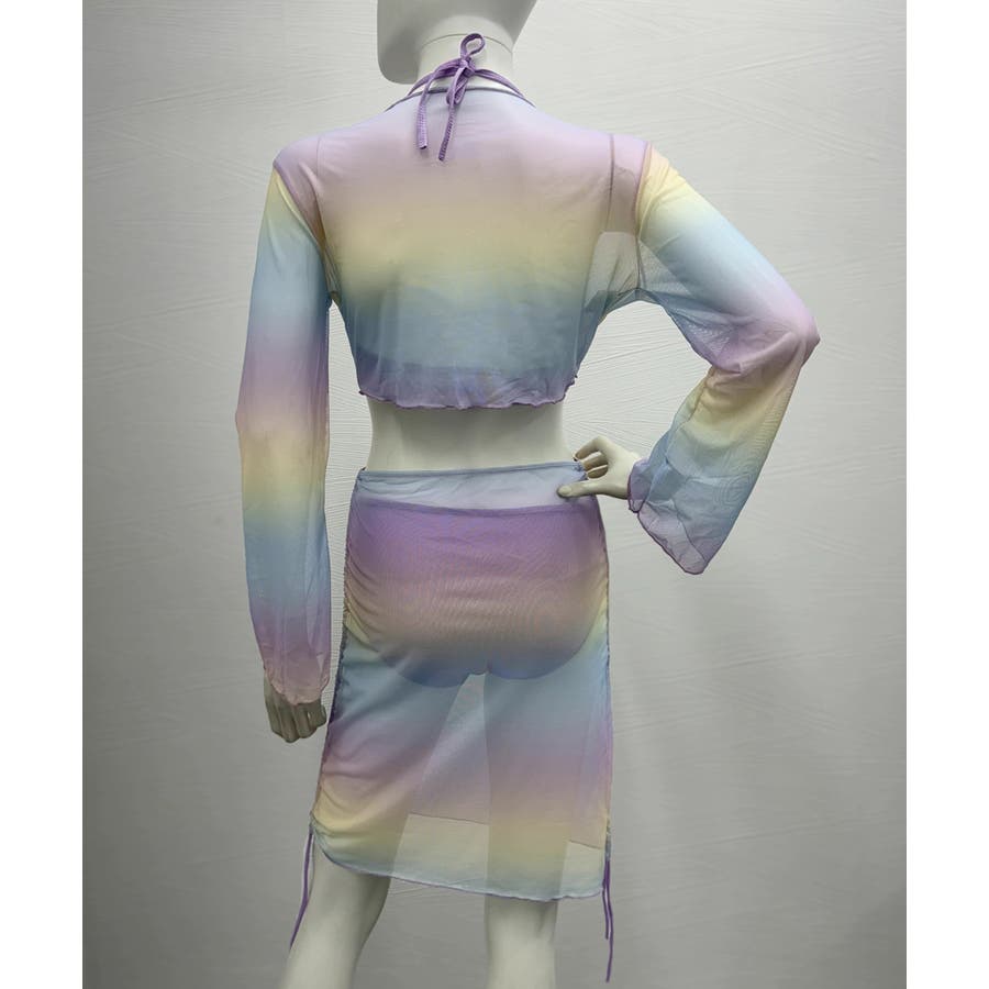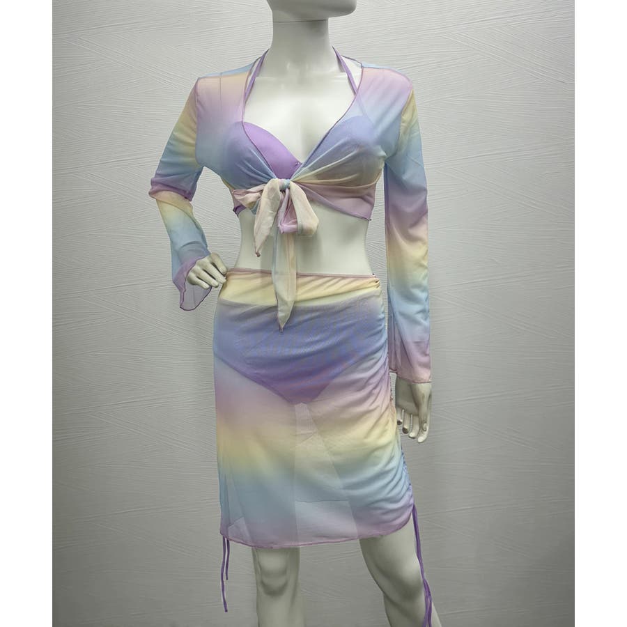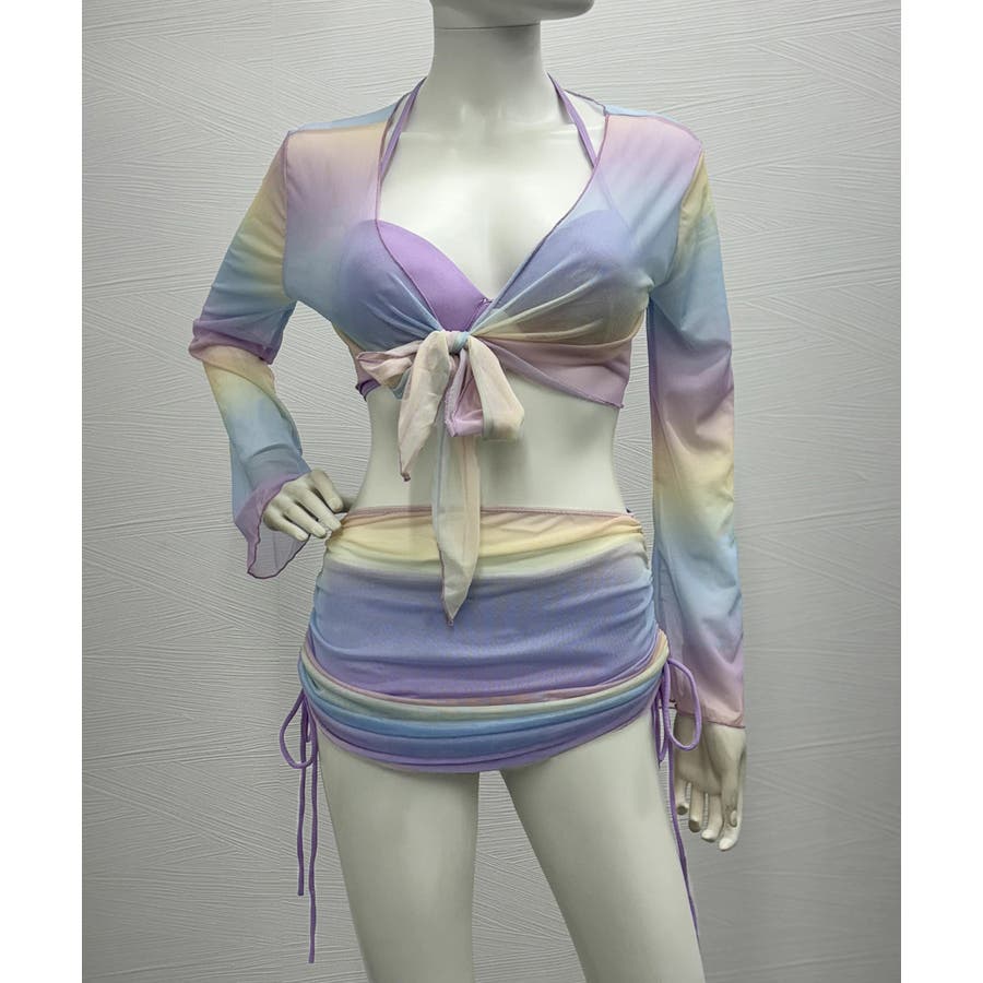 4WAYの着こなしが楽しめる、大人フェミニンなカラフル水着4点セット