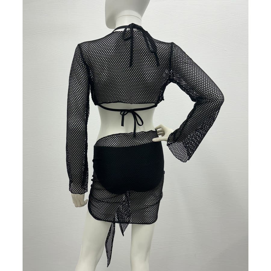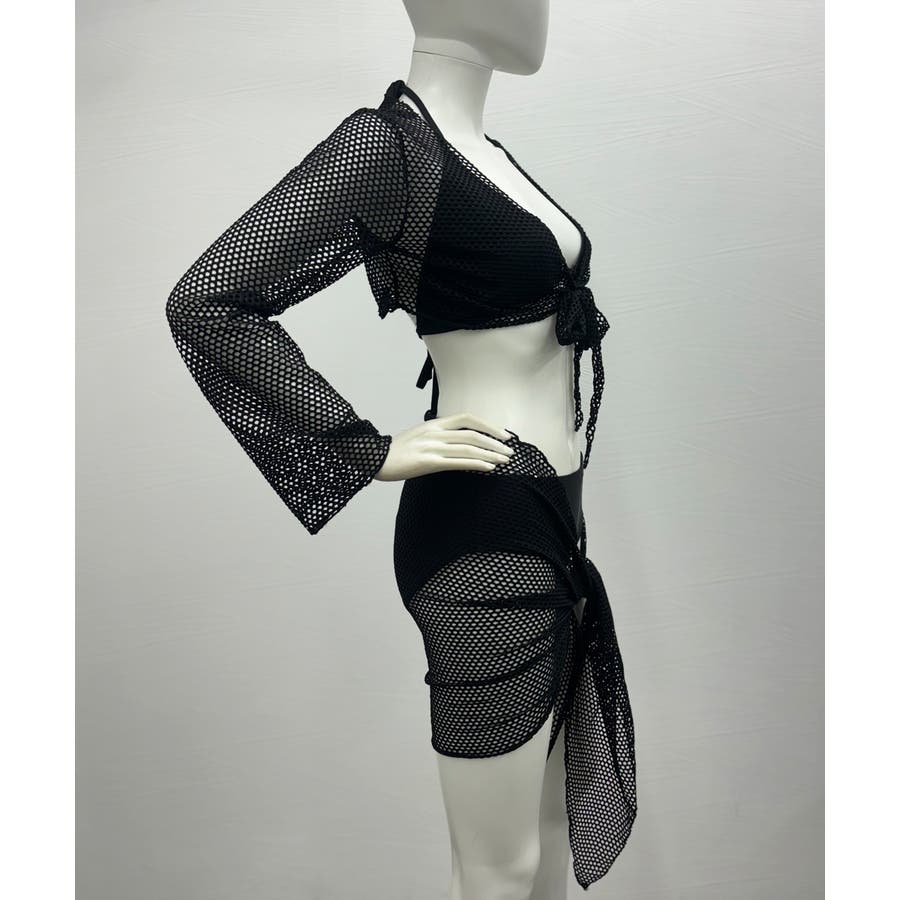 メッシュ素材でお作りしたパレオとボレロがモダンなテイストを添えるスイムウェアセット
