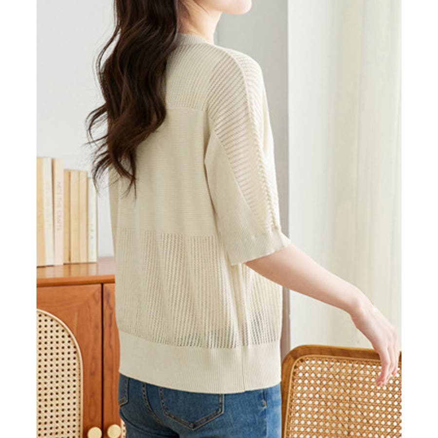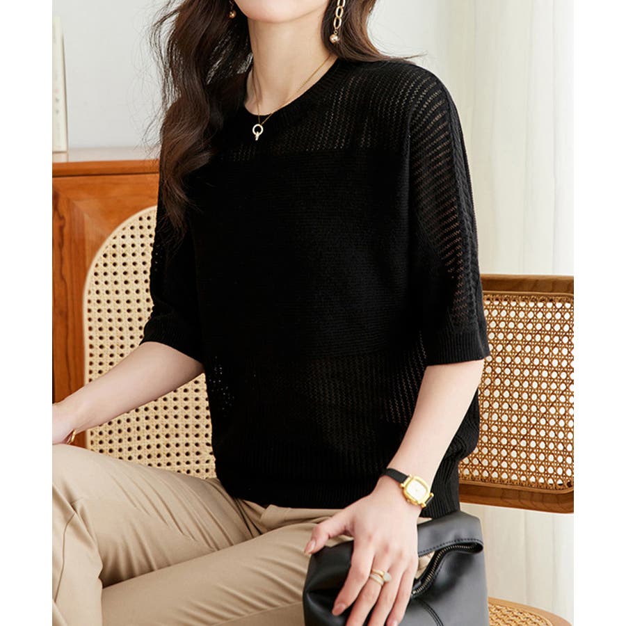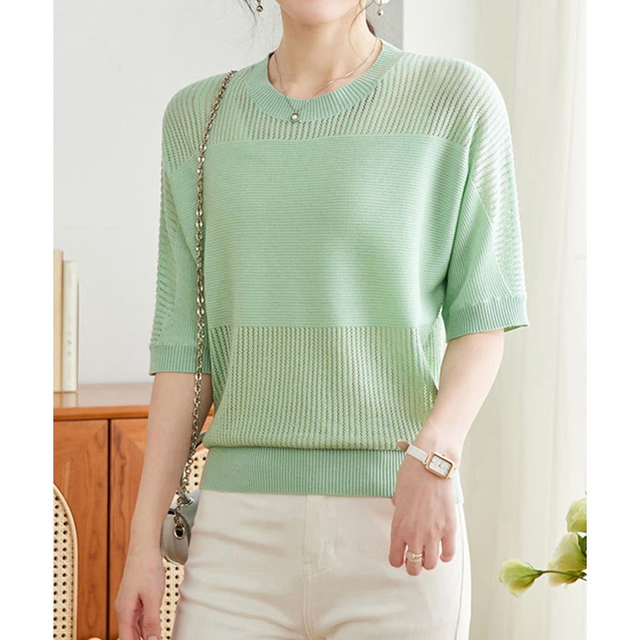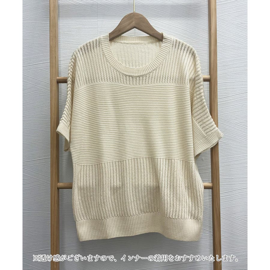 1枚取り入れるだけでおしゃれ着こなしが楽しめる透かし編みニットトップス
