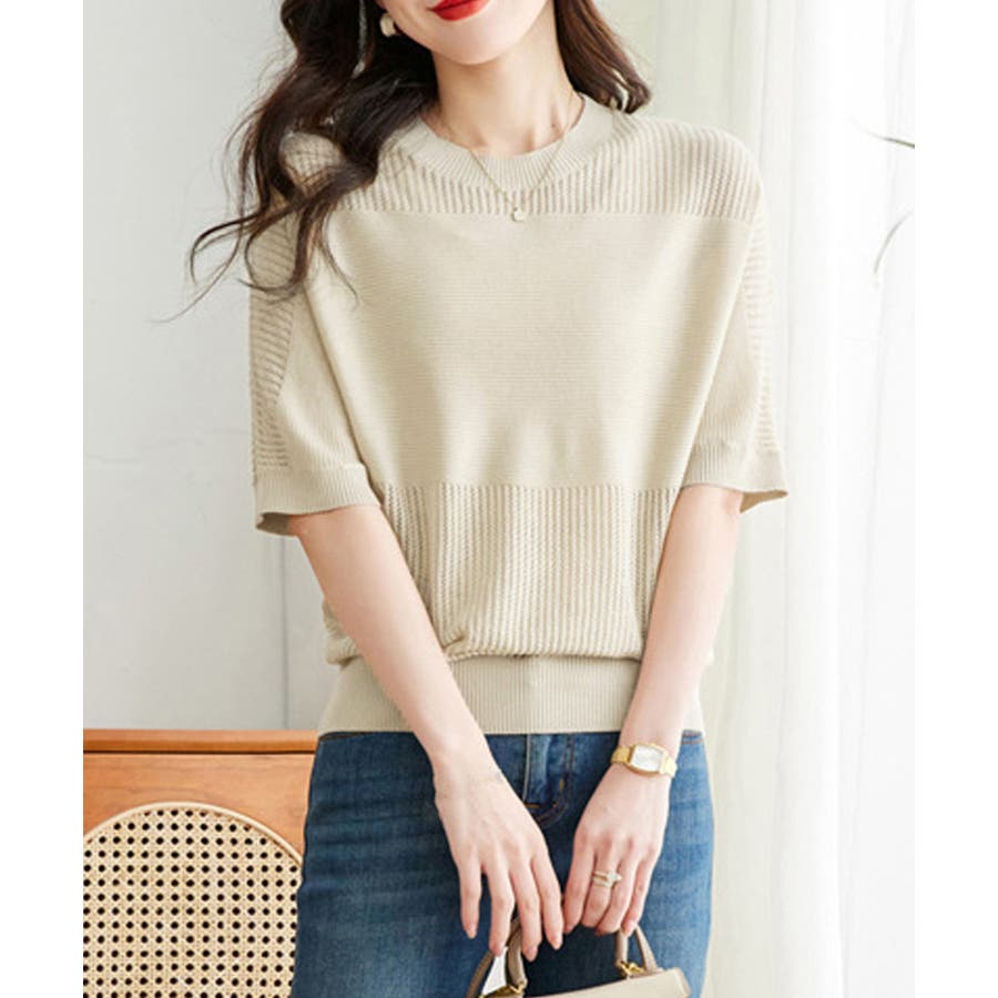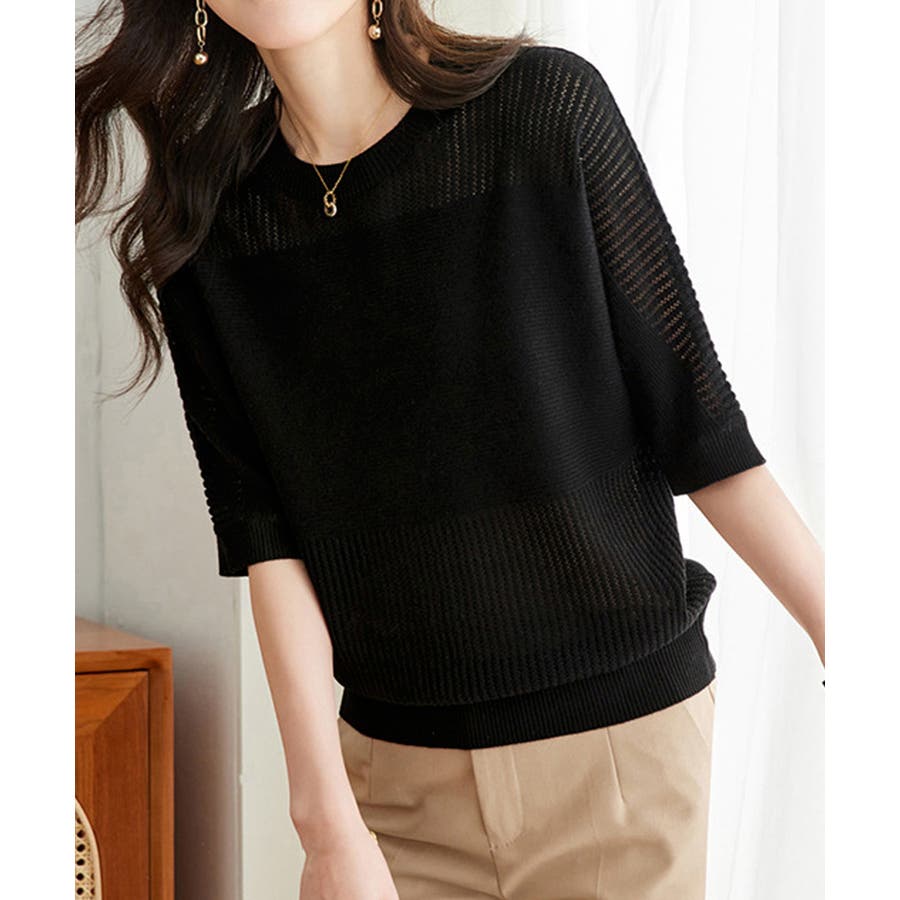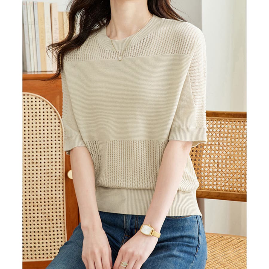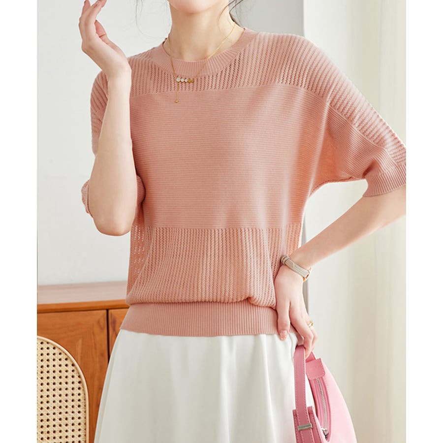 1枚取り入れるだけでおしゃれ着こなしが楽しめる透かし編みニットトップス