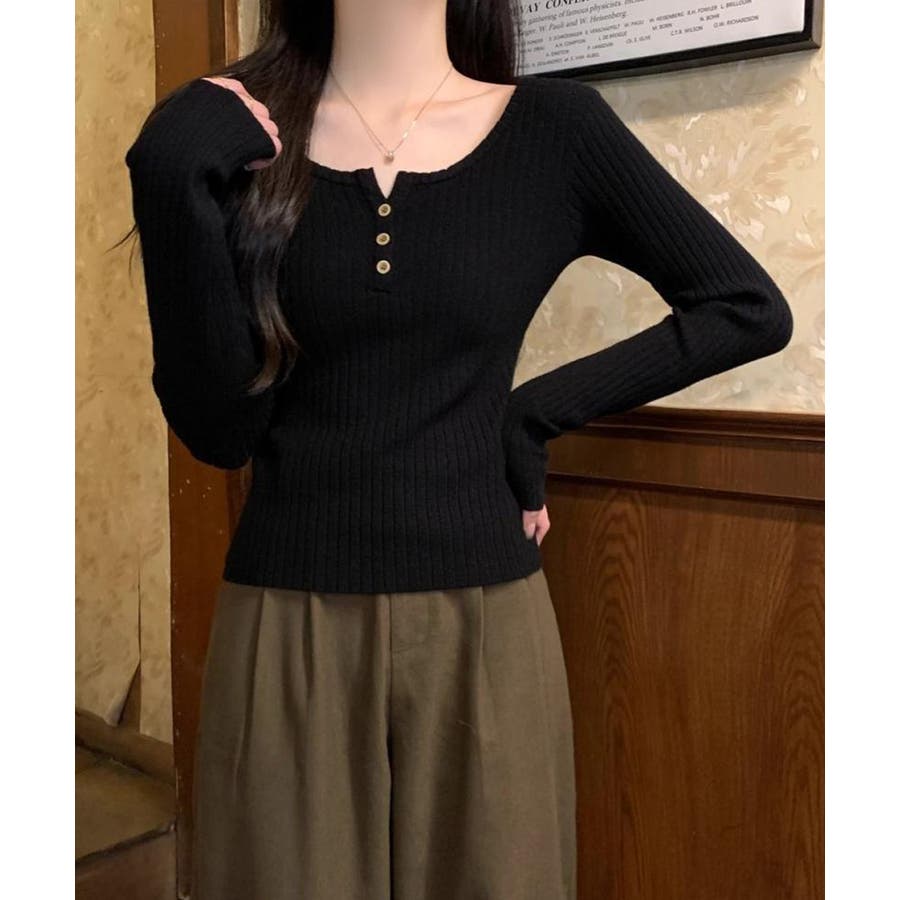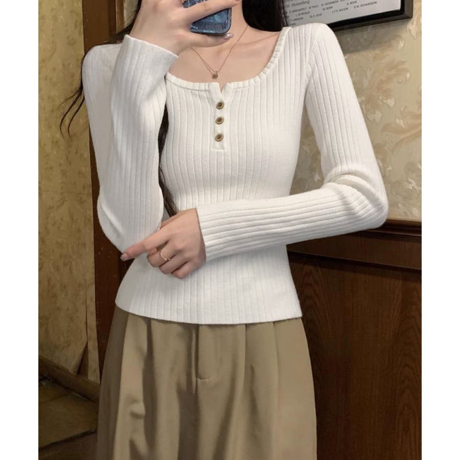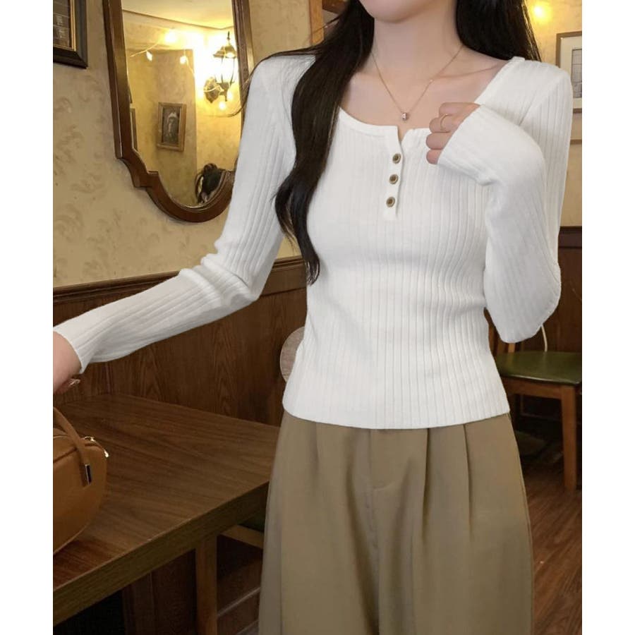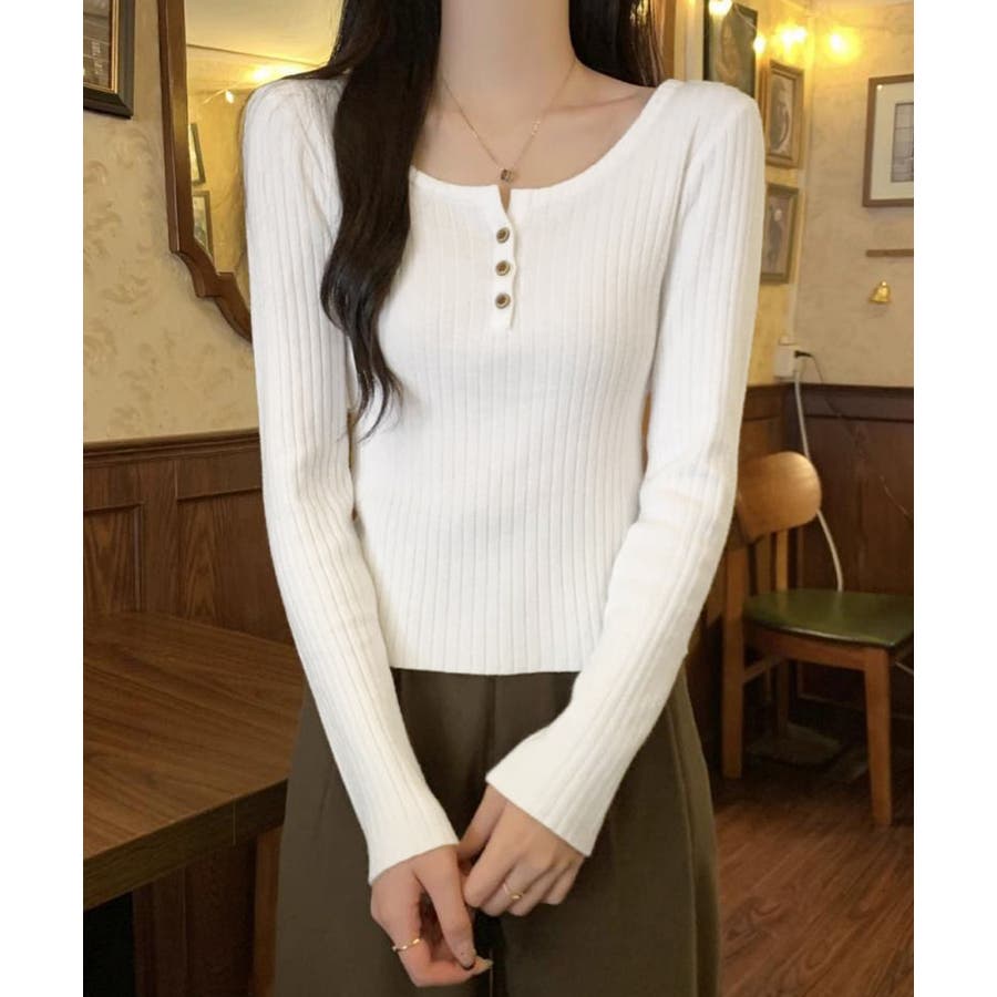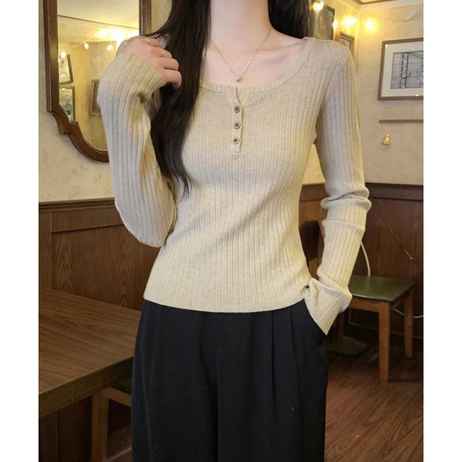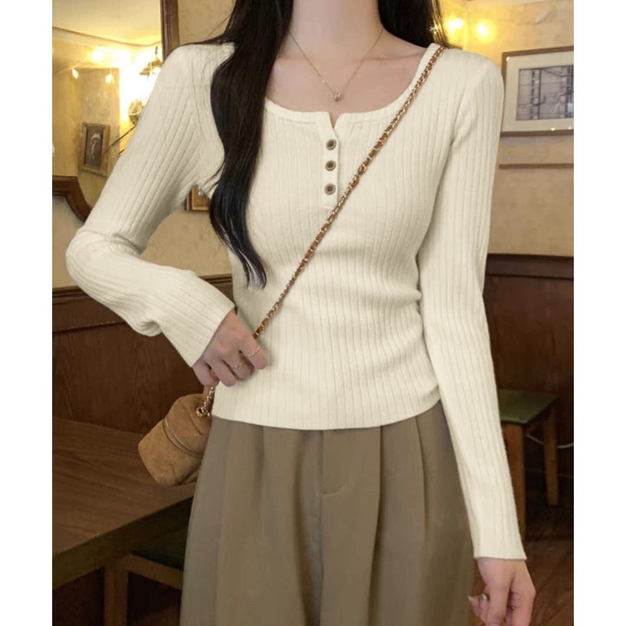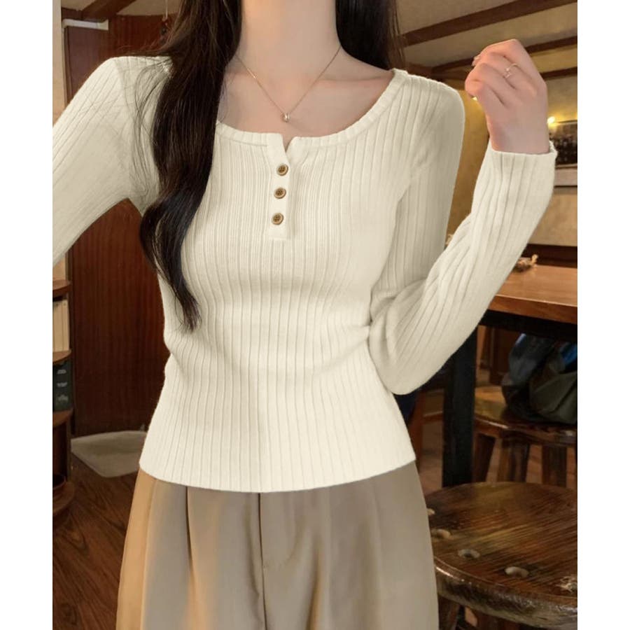 1枚でも重ね着でも着回し上手なリブニットトップス。