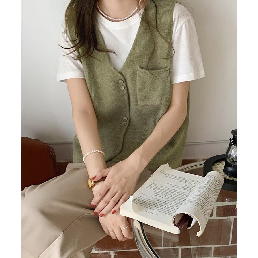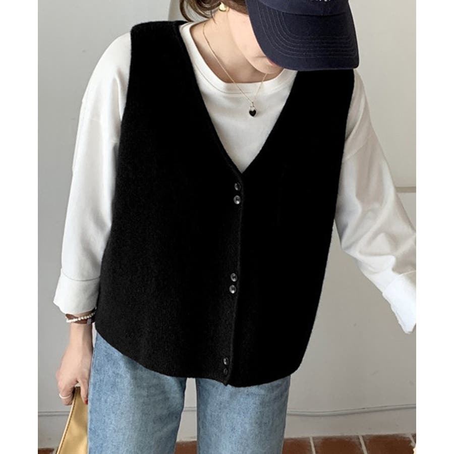 カジュアル ベスト 無地ニットチョッキ 着やせニット韓国風