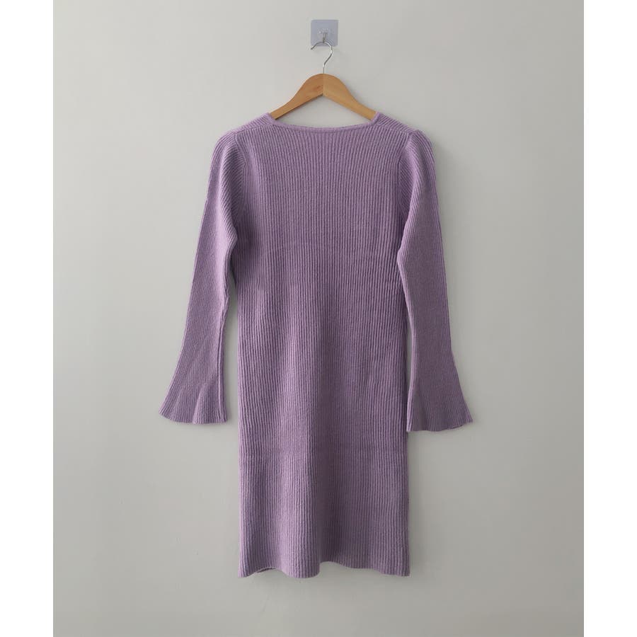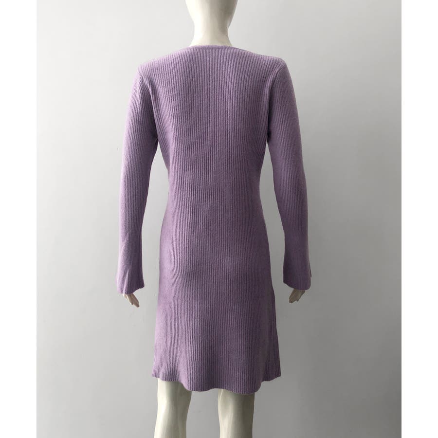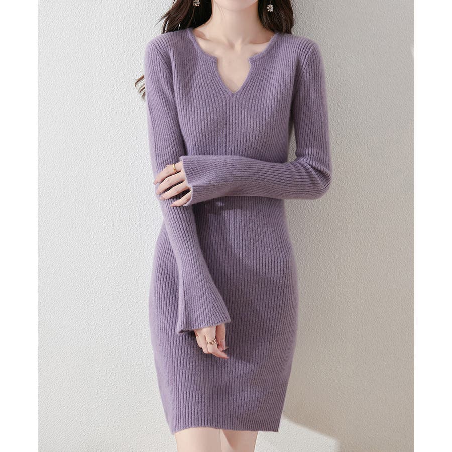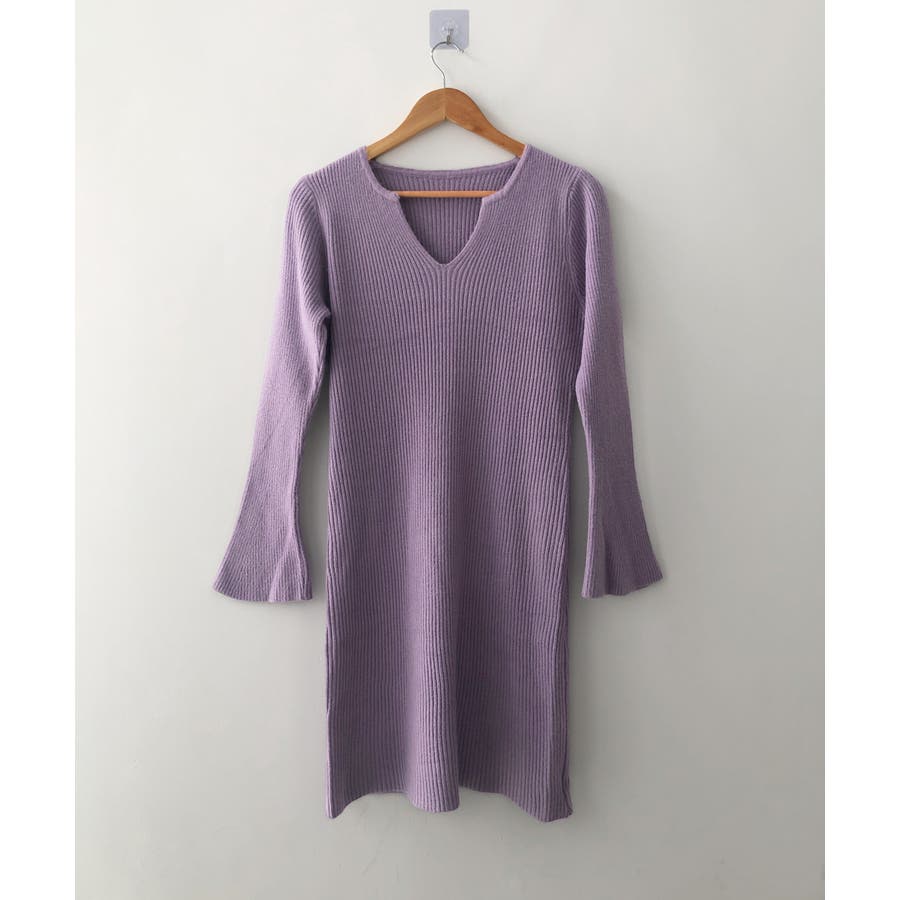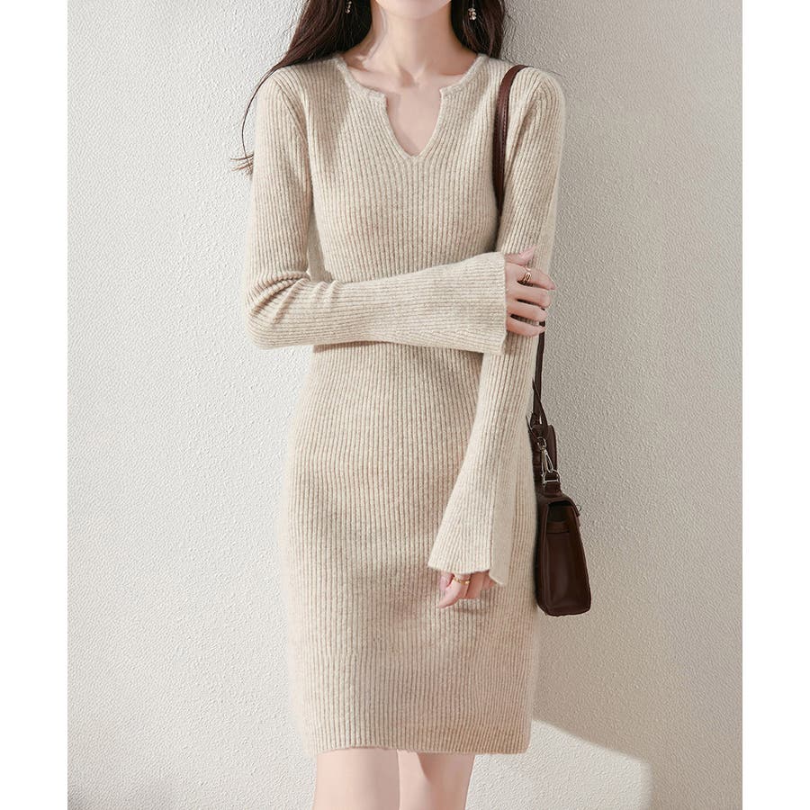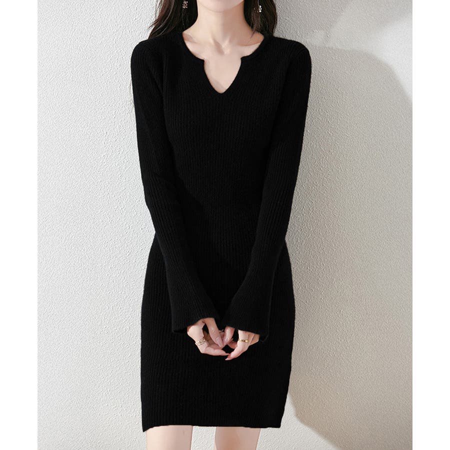 キーネック タイトリブニットワンピース