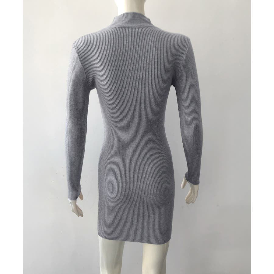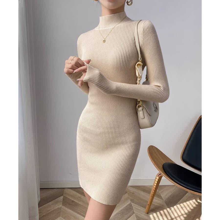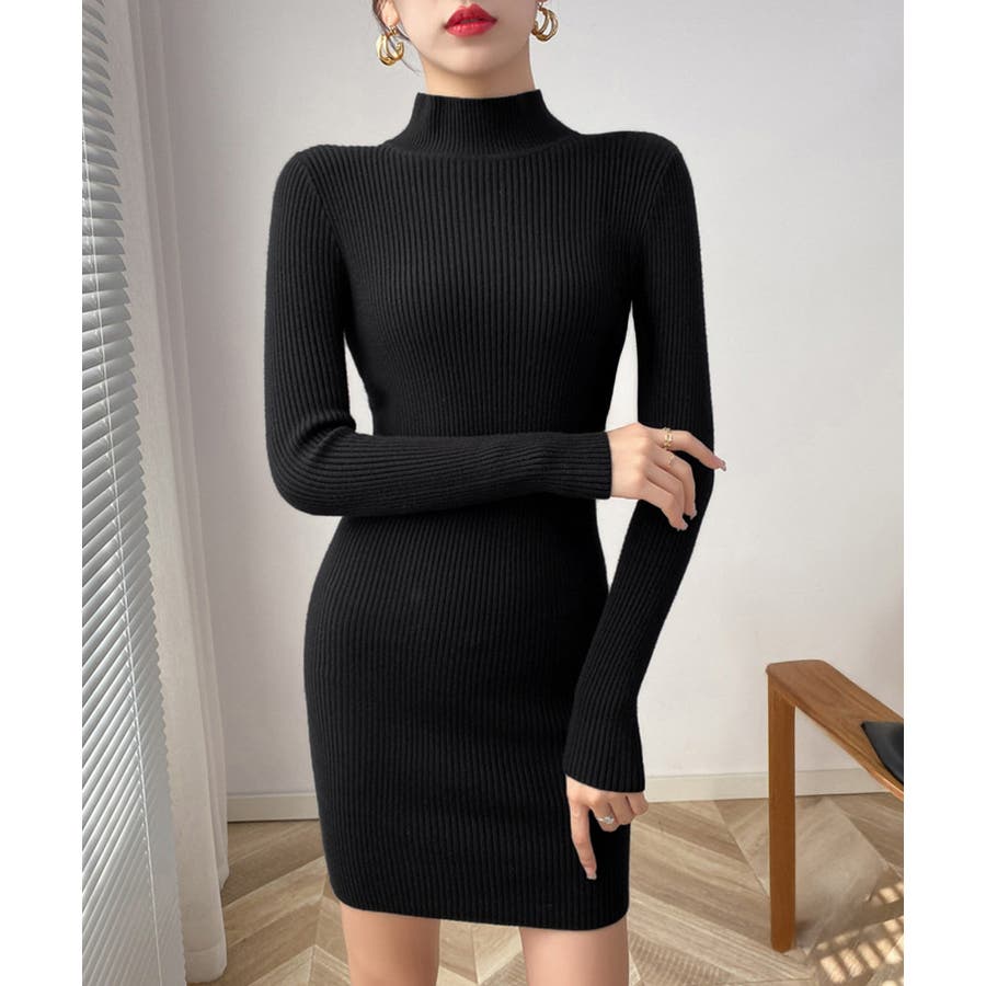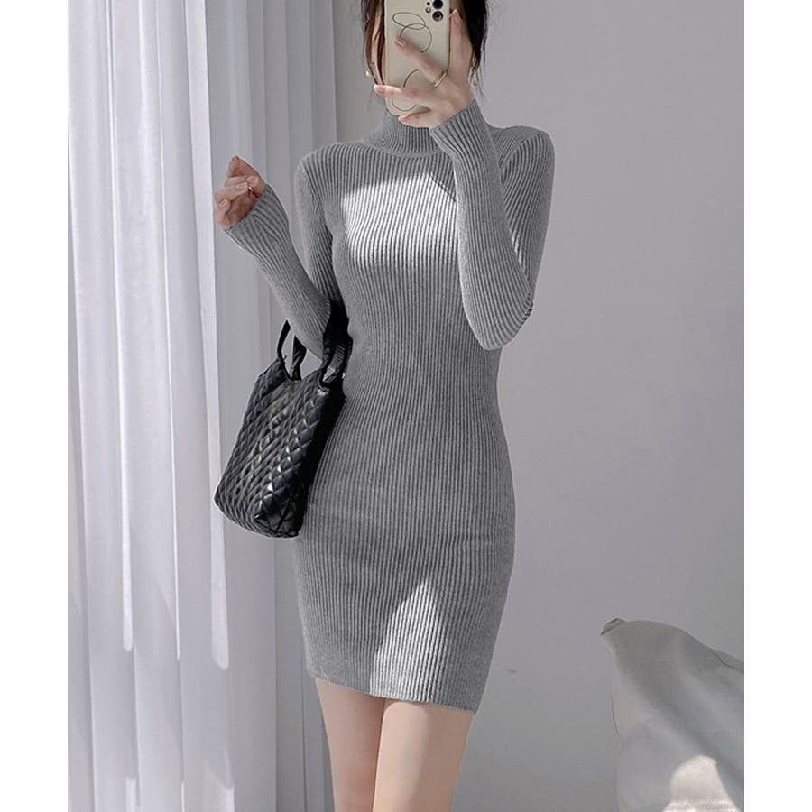 タイトなシルエットでメリハリのあるボディラインを見せるリブニットワンピース。