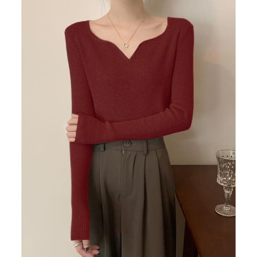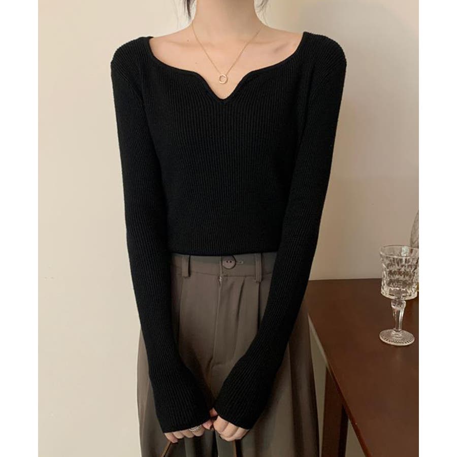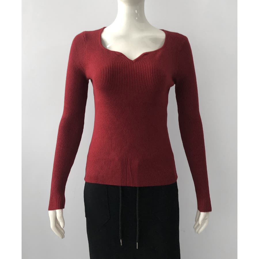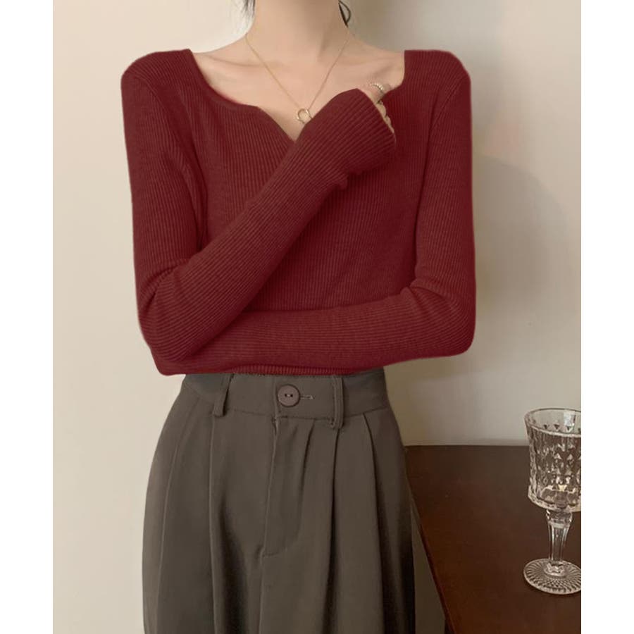 キーネック タイトリブニット 韓国風
