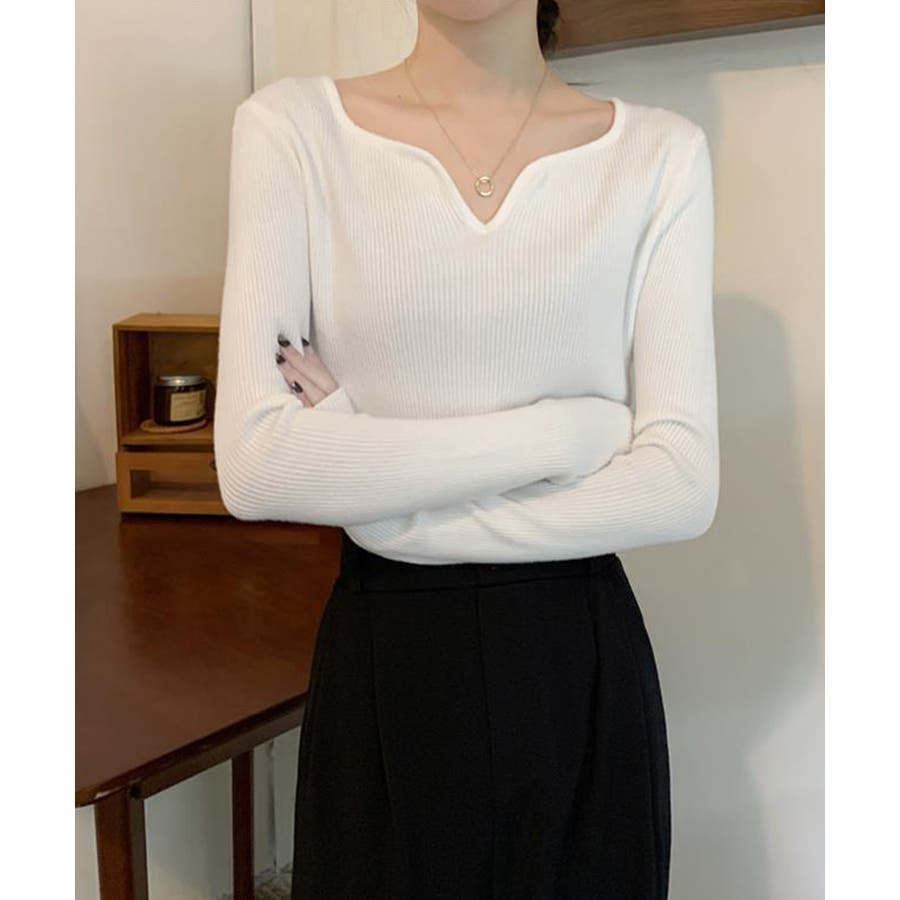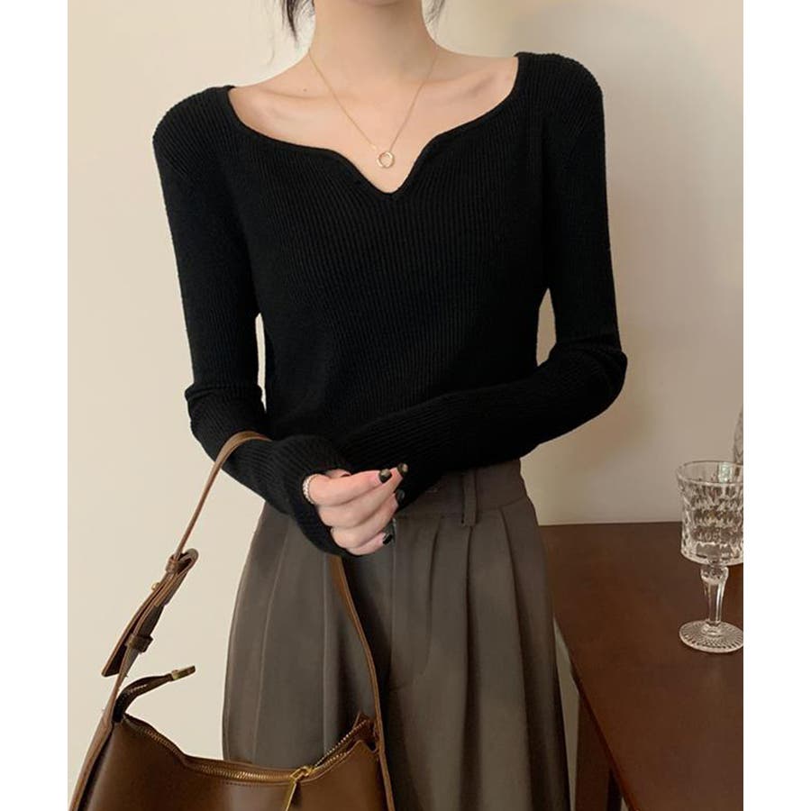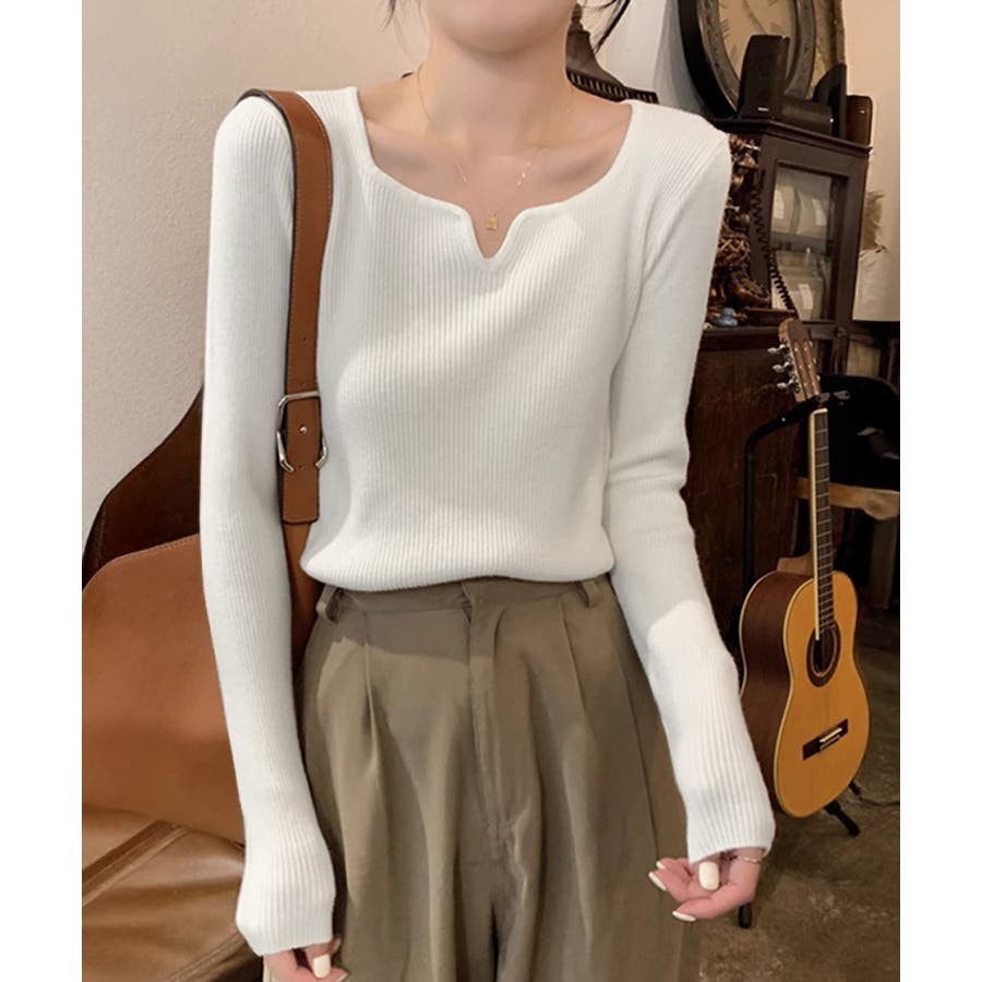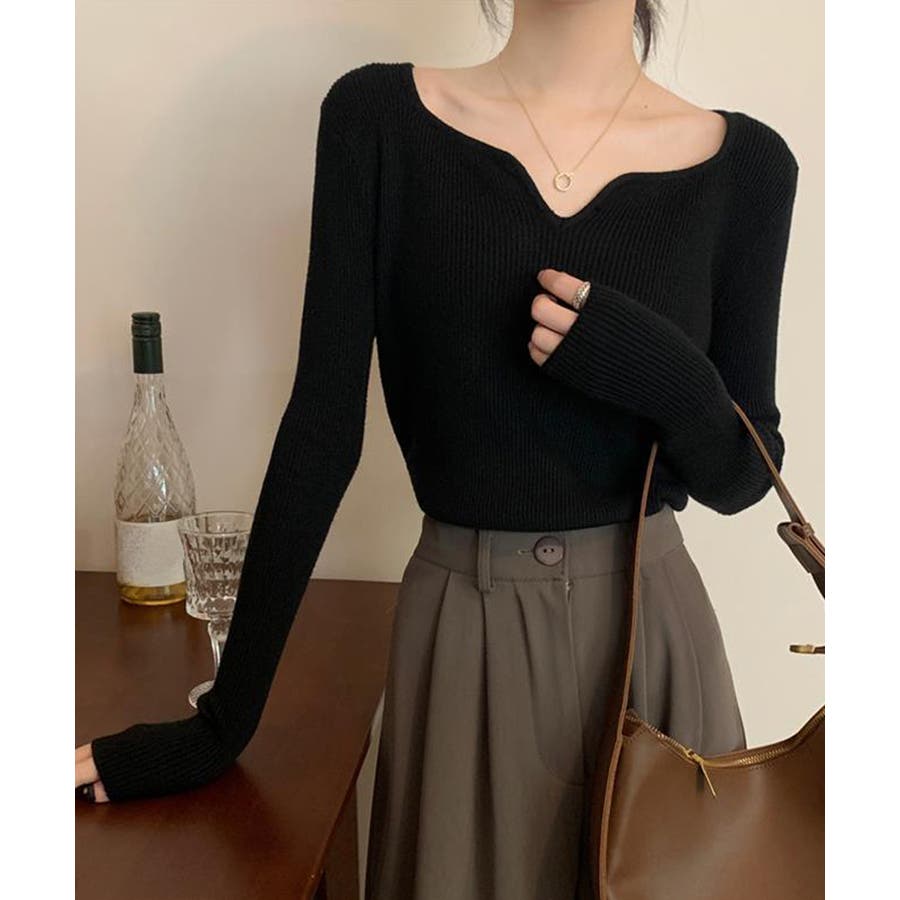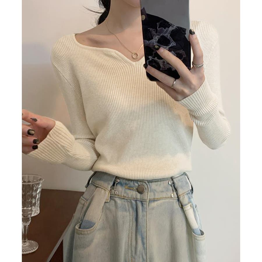 キーネック タイトリブニット 韓国風