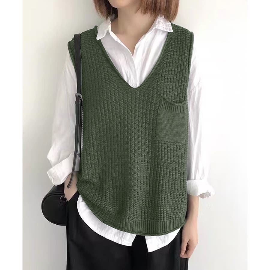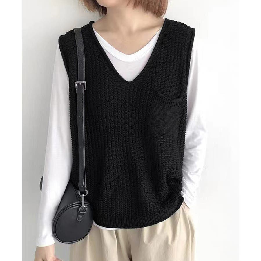 着やせニット韓国風 無地ニットチョッキ カジュアル ベスト