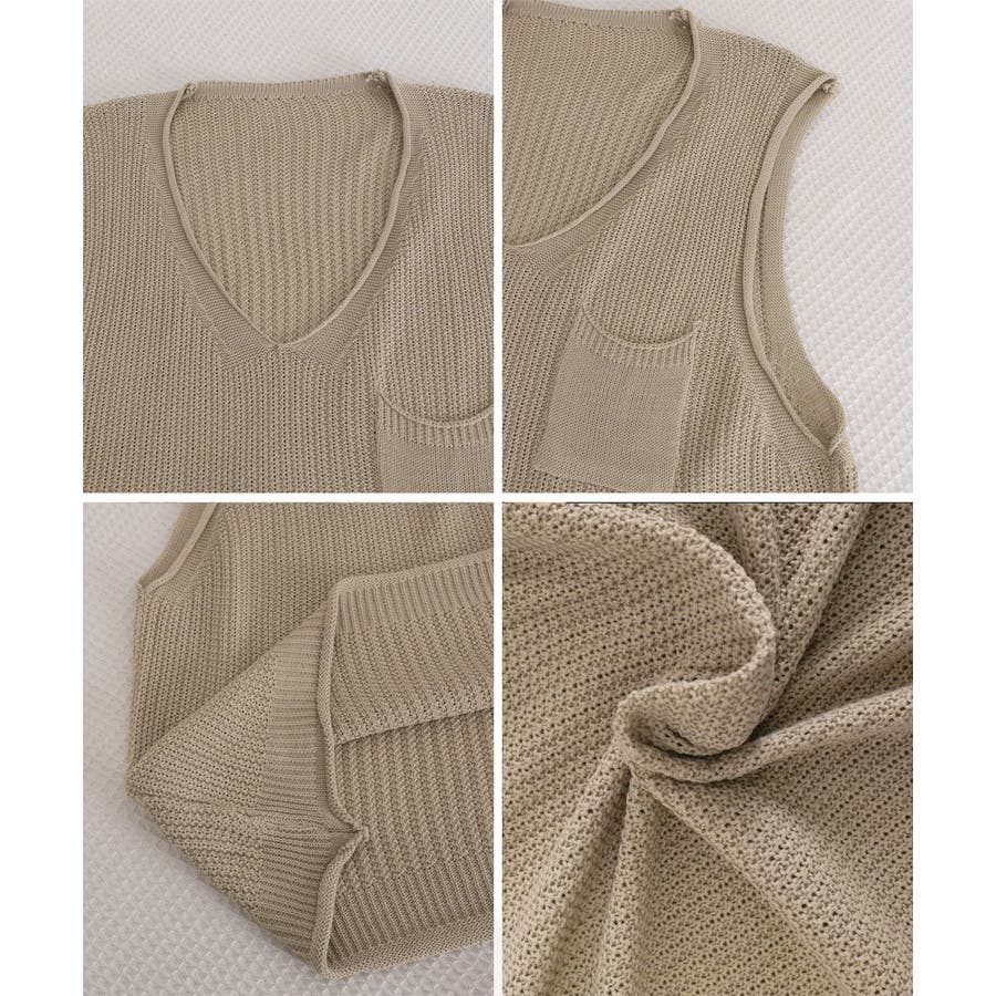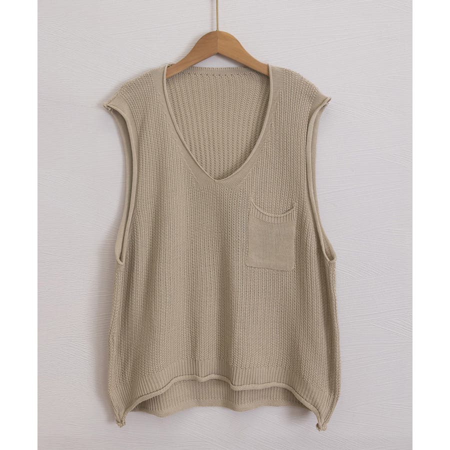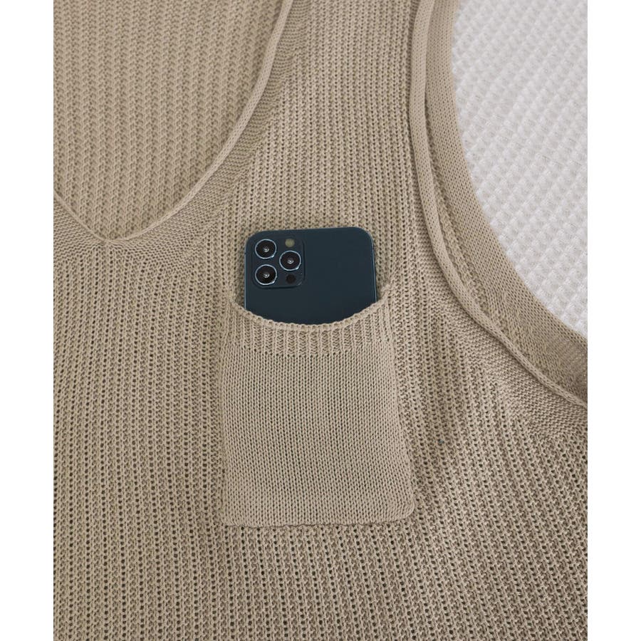 ポケット付きニットジレ ノースリーブ ニットトップス