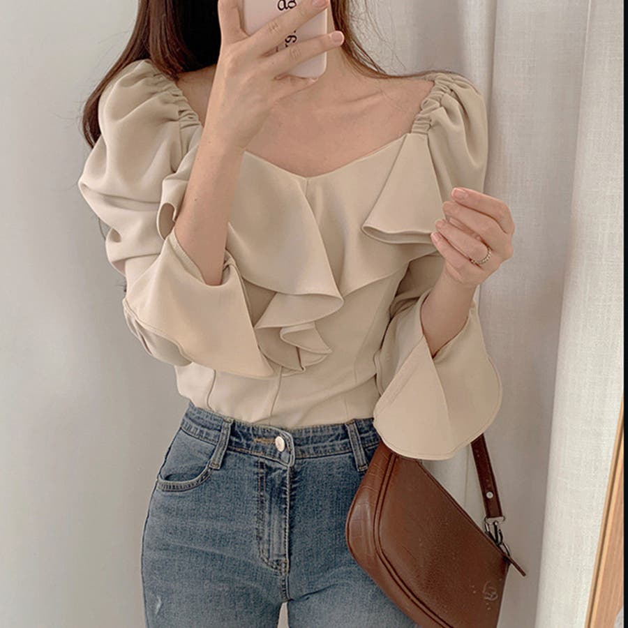 オルチャンブラウス 大人可愛いブラウス ペンタゴンネック