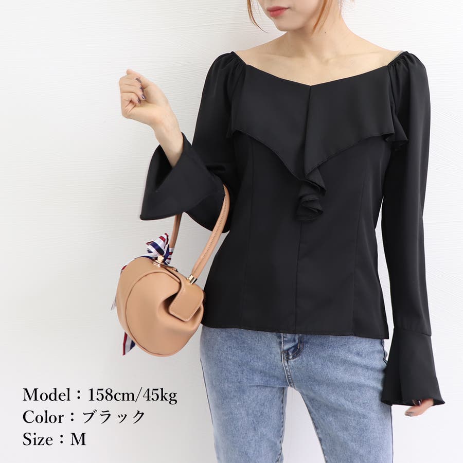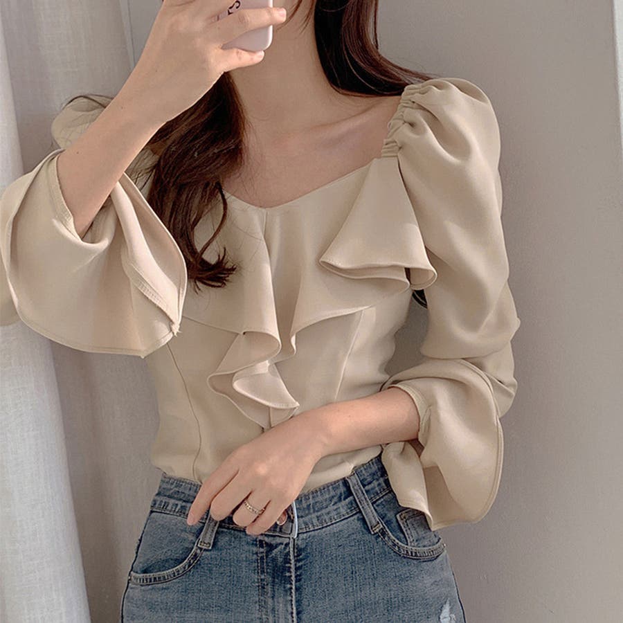 レディース ラッフルカラー とろみブラウス パフスリーブ トップス フレア袖 おしゃれ ブラウス きれいめ 春先行 人気