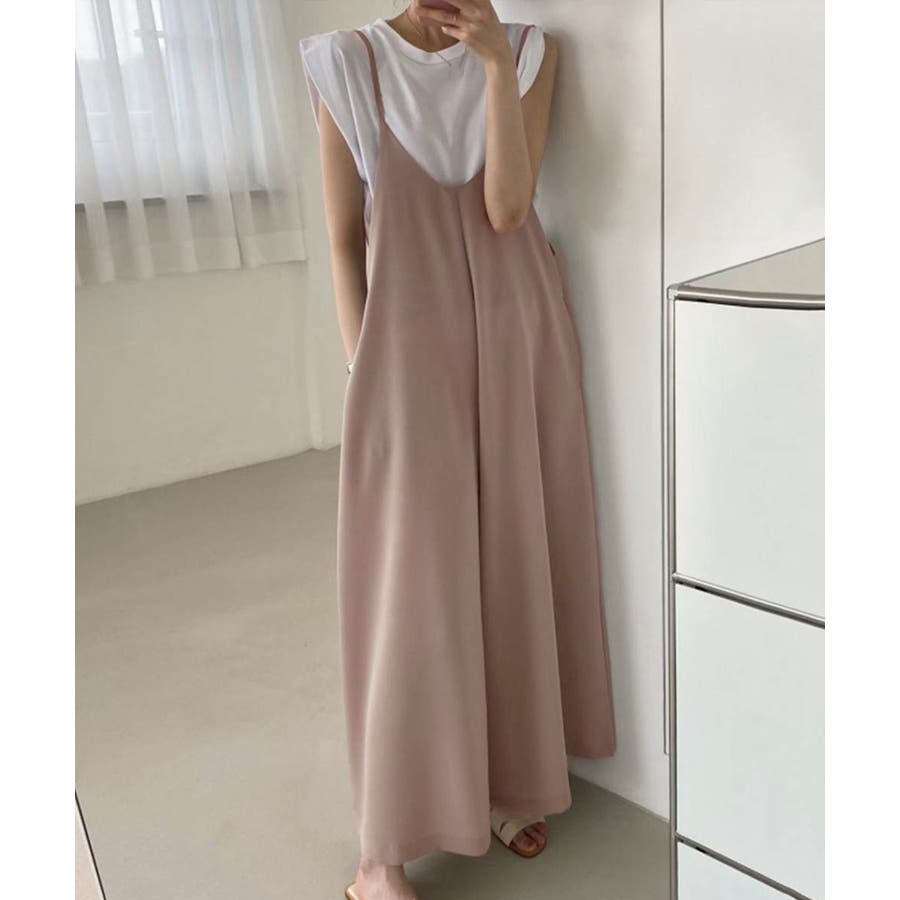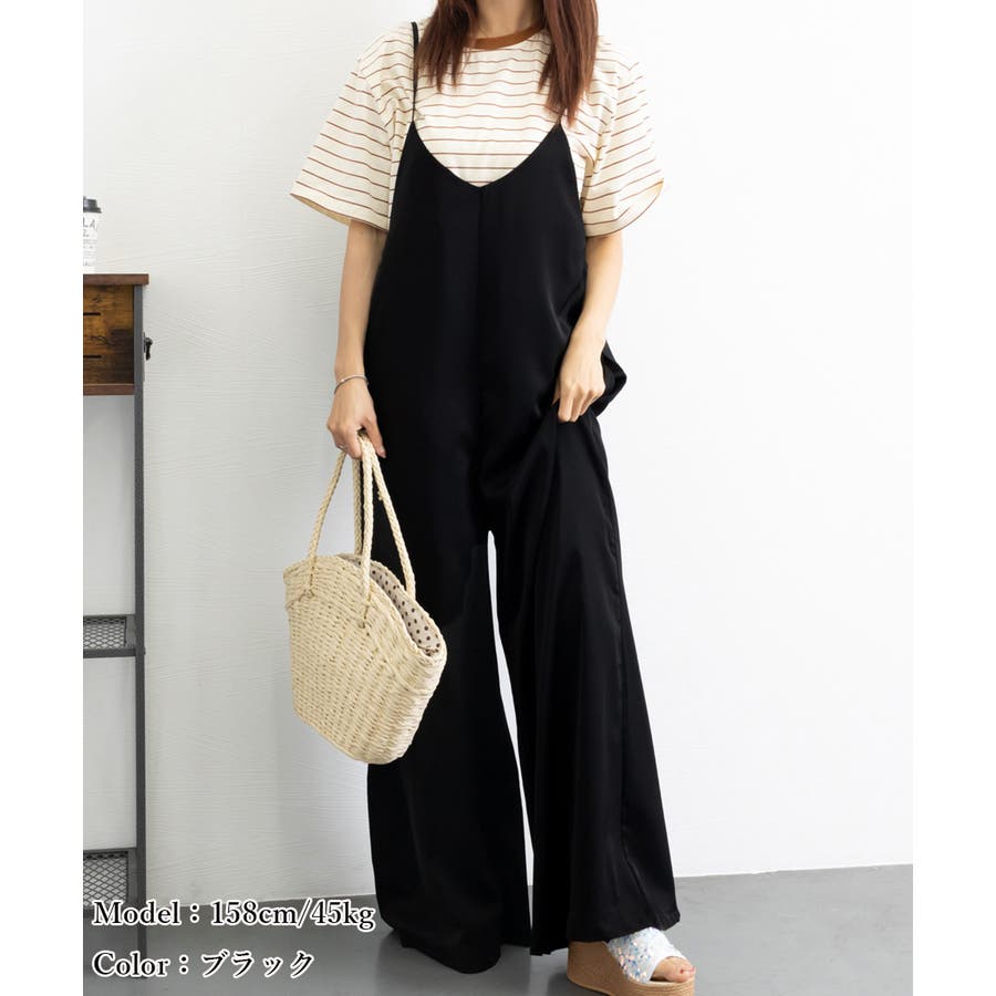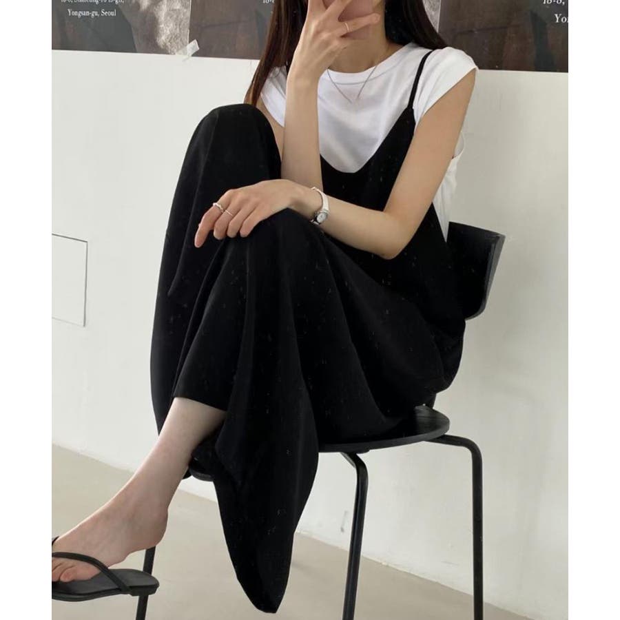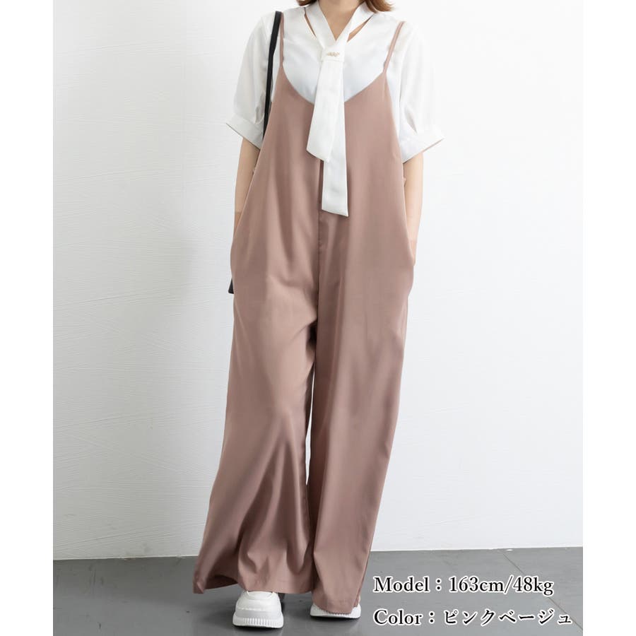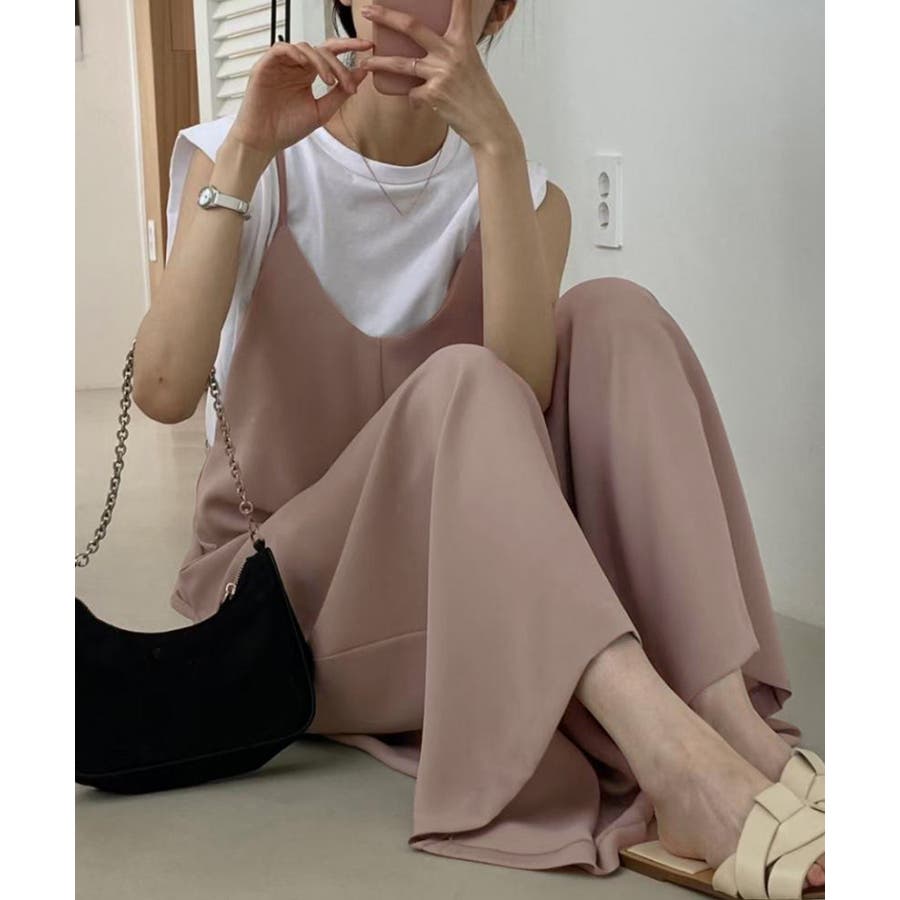 体型カバーパンツ つなぎワイドパンツ キャミサロペット夏