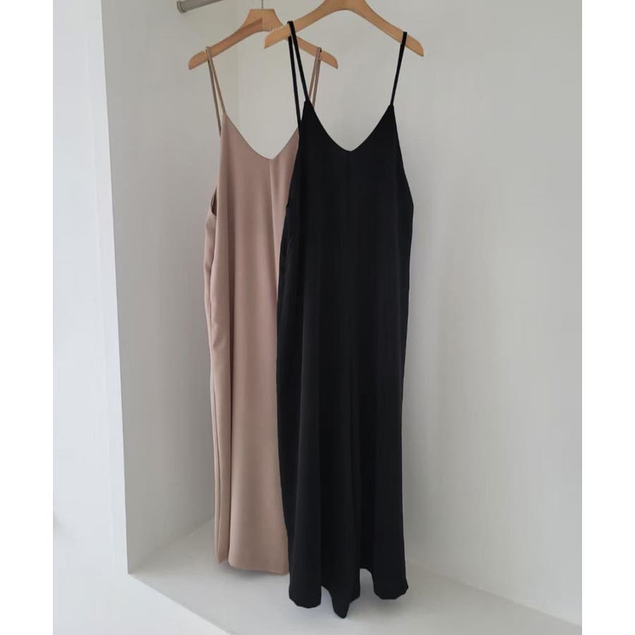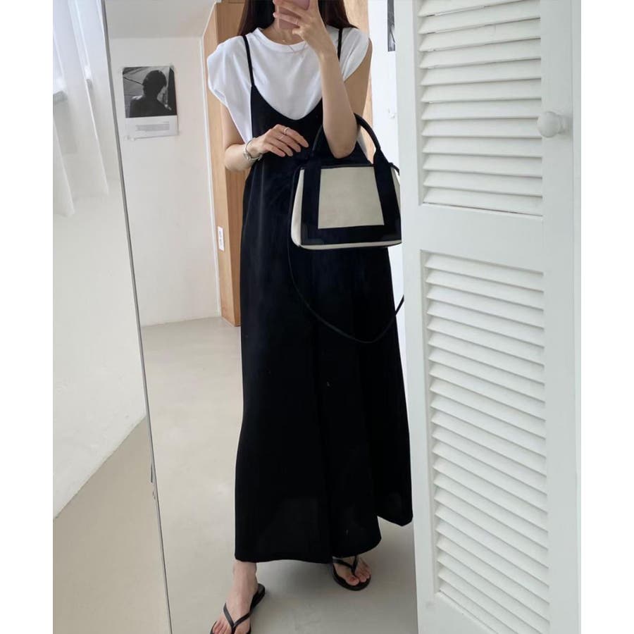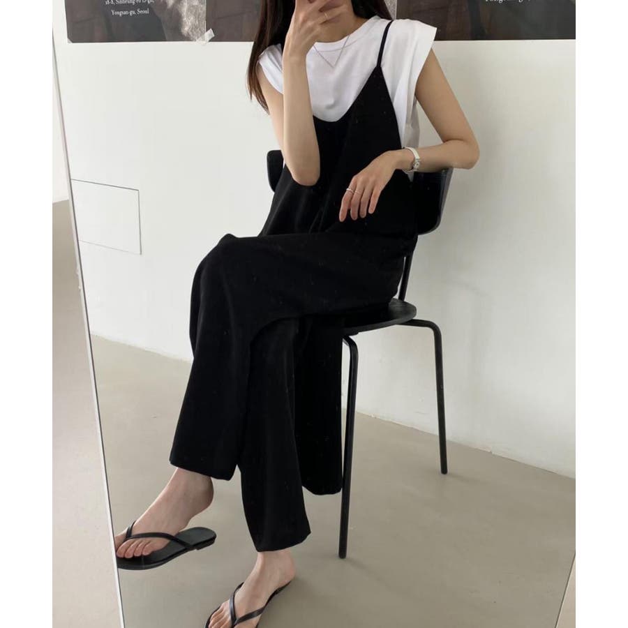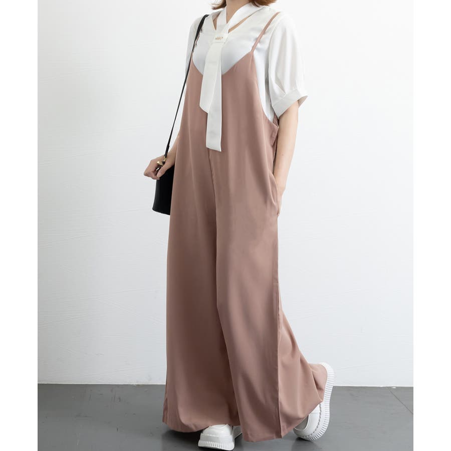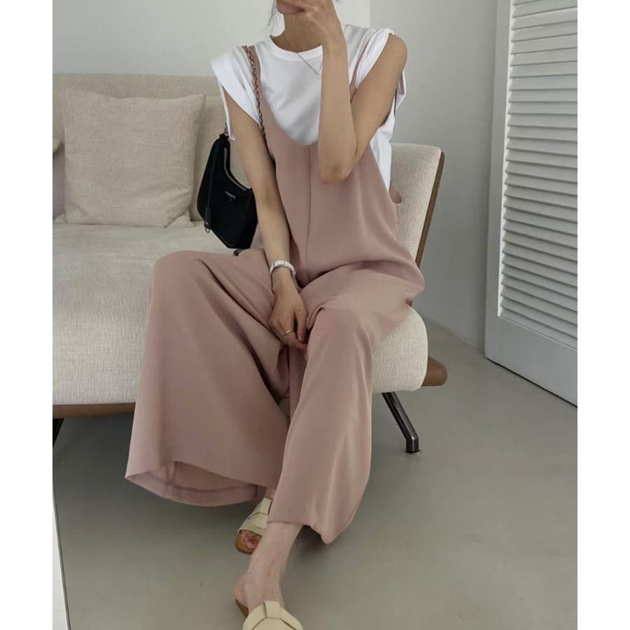体型カバーパンツ つなぎワイドパンツ キャミサロペット夏