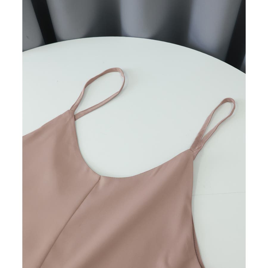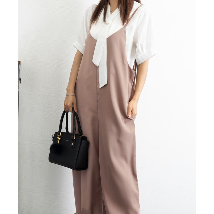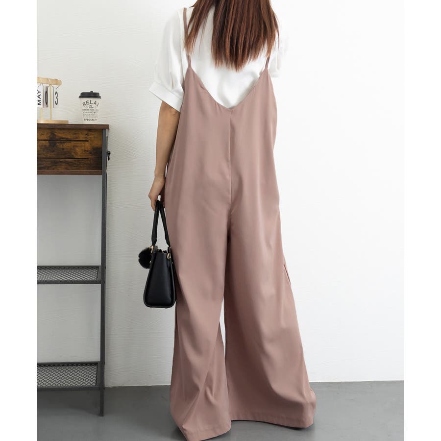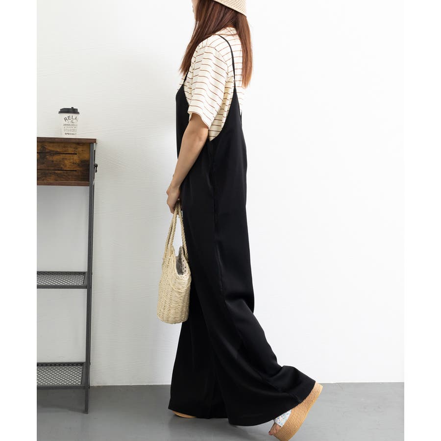 細めのストラップと前後Vラインがフェミニンで大人っぽい、キレイめに着られる大人サロペット