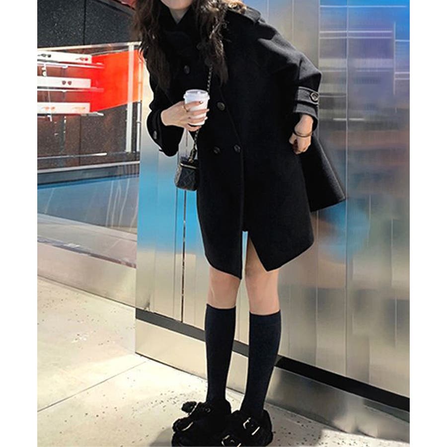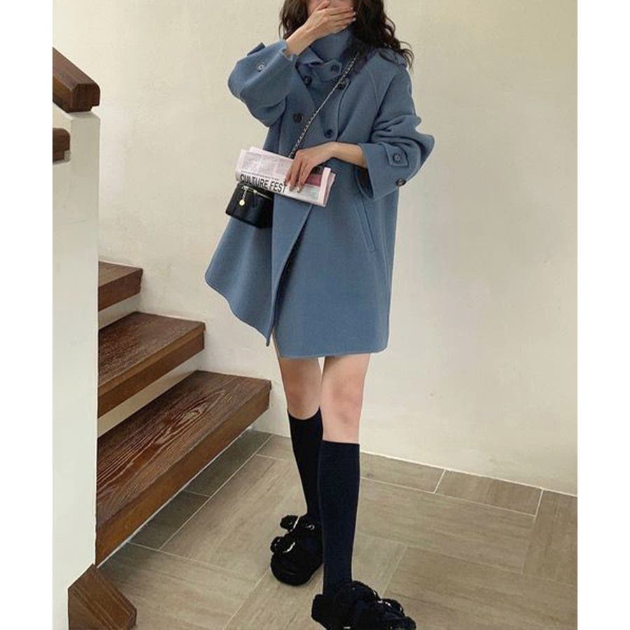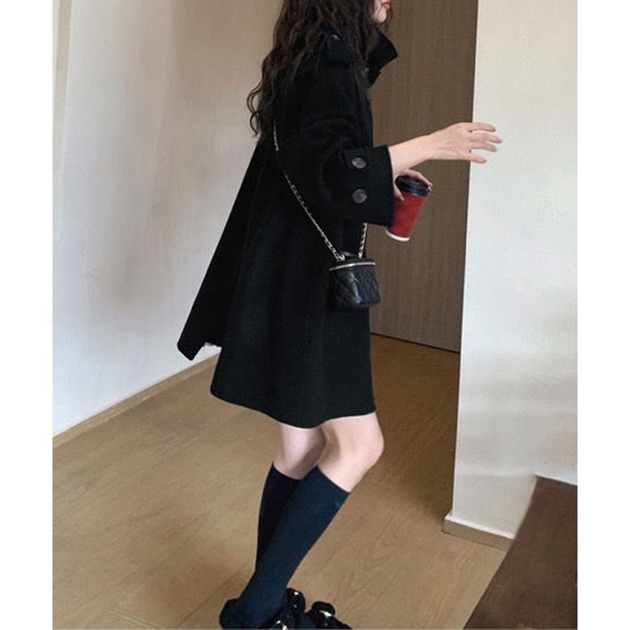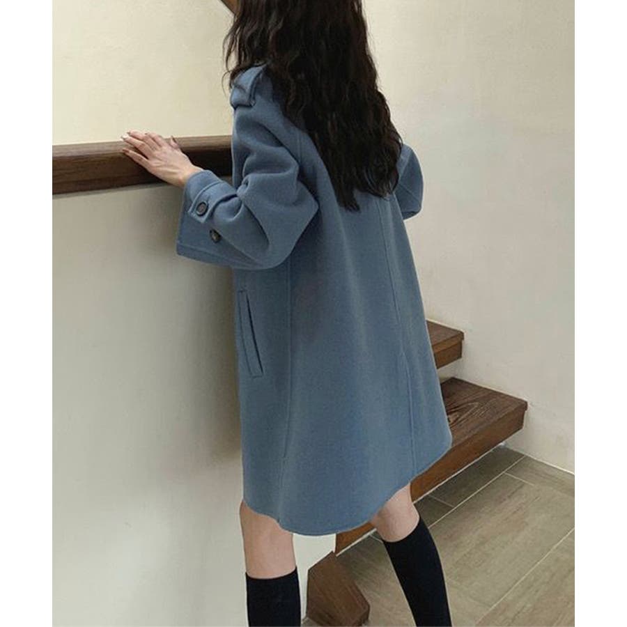体型カバーゆったり 軽めピーコート中厚 ハーフコート韓国風
