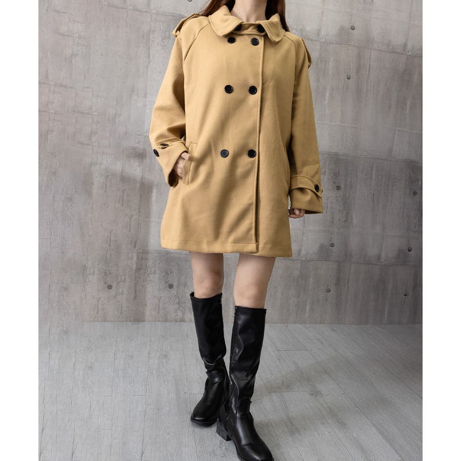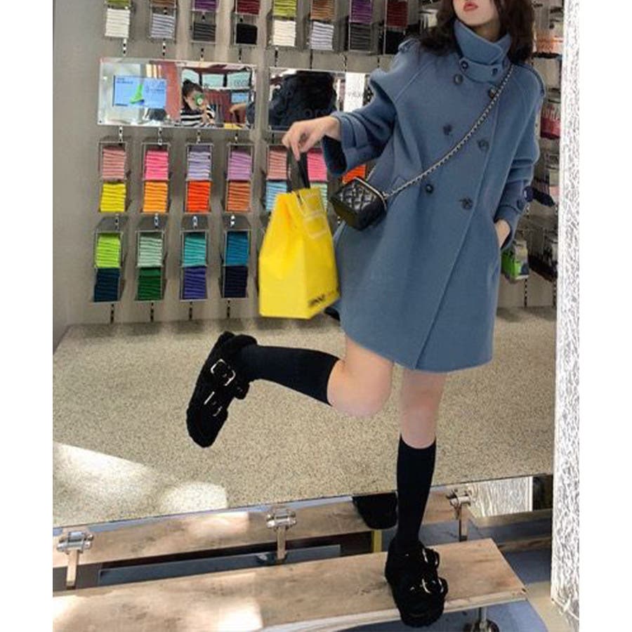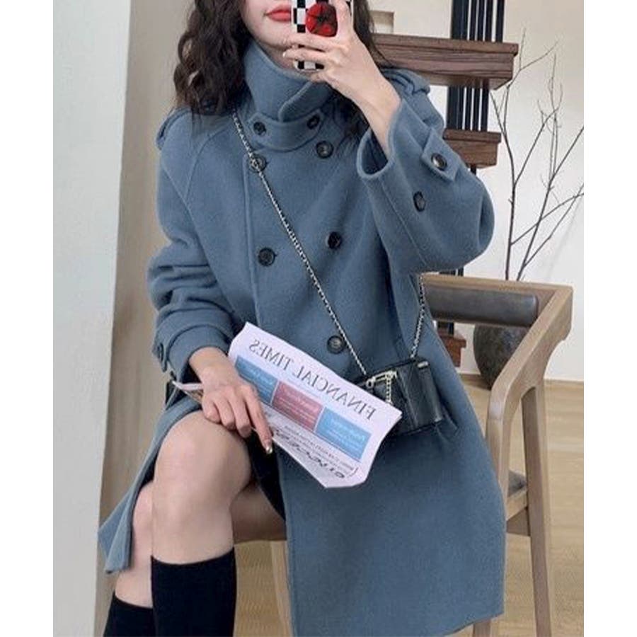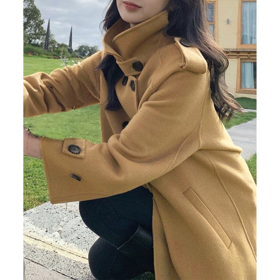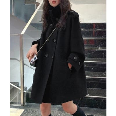 体型カバーゆったり 軽めピーコート中厚 ハーフコート韓国風