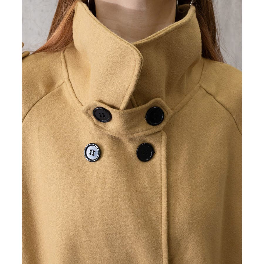 スタンドカラー仕立てとゆったりシルエットがクラシックな雰囲気を演出。