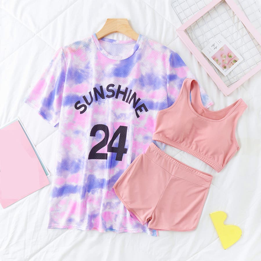 露出が苦手なあなたでも大丈夫なラッシュガード付きの水着3点セット