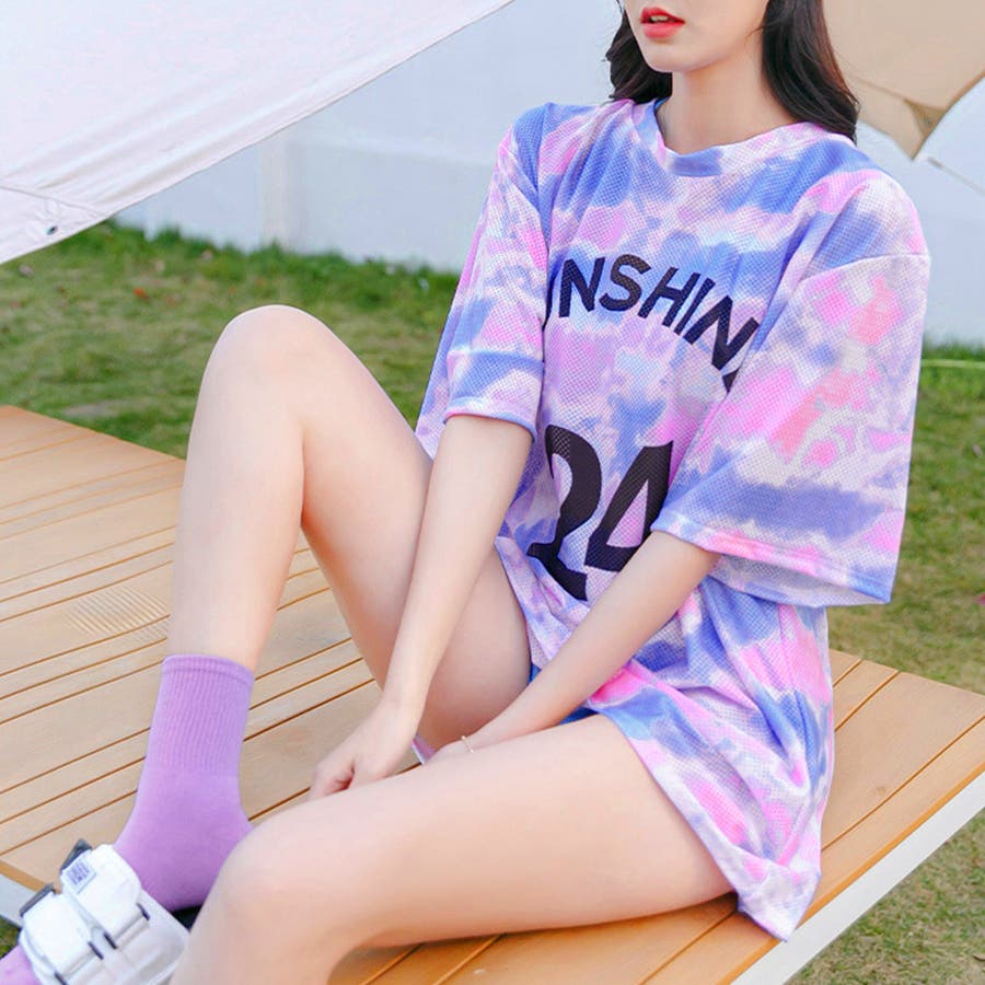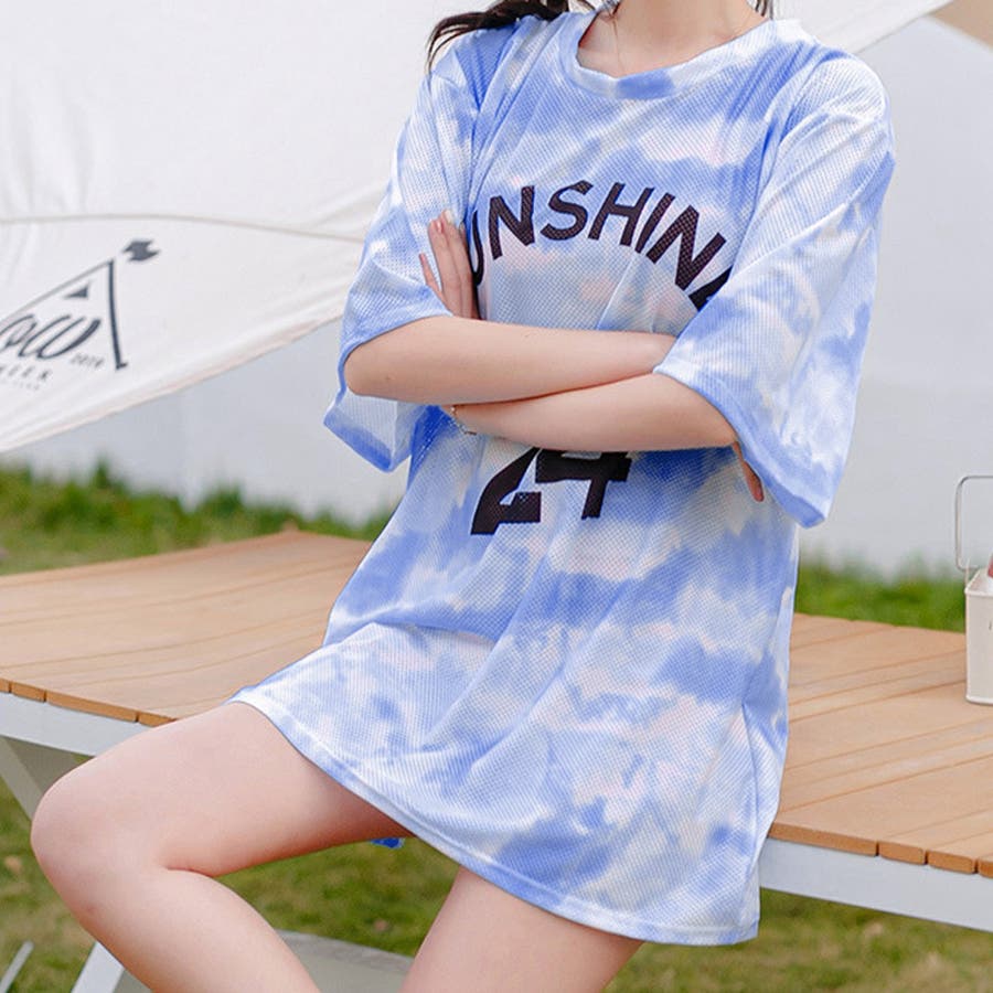 腰まであるラッシュガードは、気になるお腹周りや二の腕、太ももなどをすべてすっぽり包み込んでカバーしてくれるので、全身気になる方にはうってつけ!