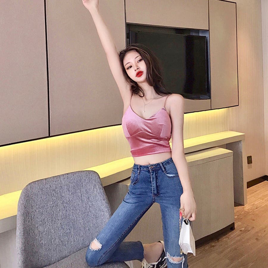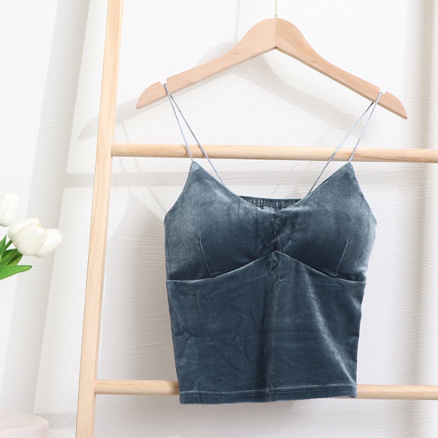 メインとしてヘルシーに一枚で着ても、羽織やシャツのインナーとしても活躍するカップ付きvネックキャミソール