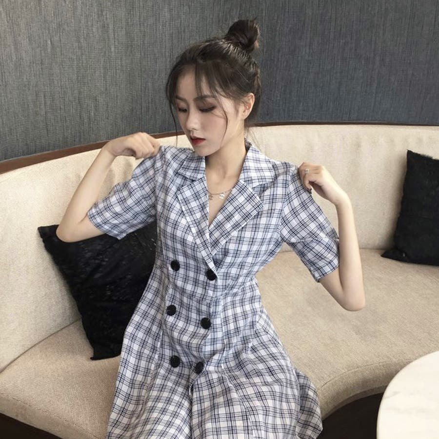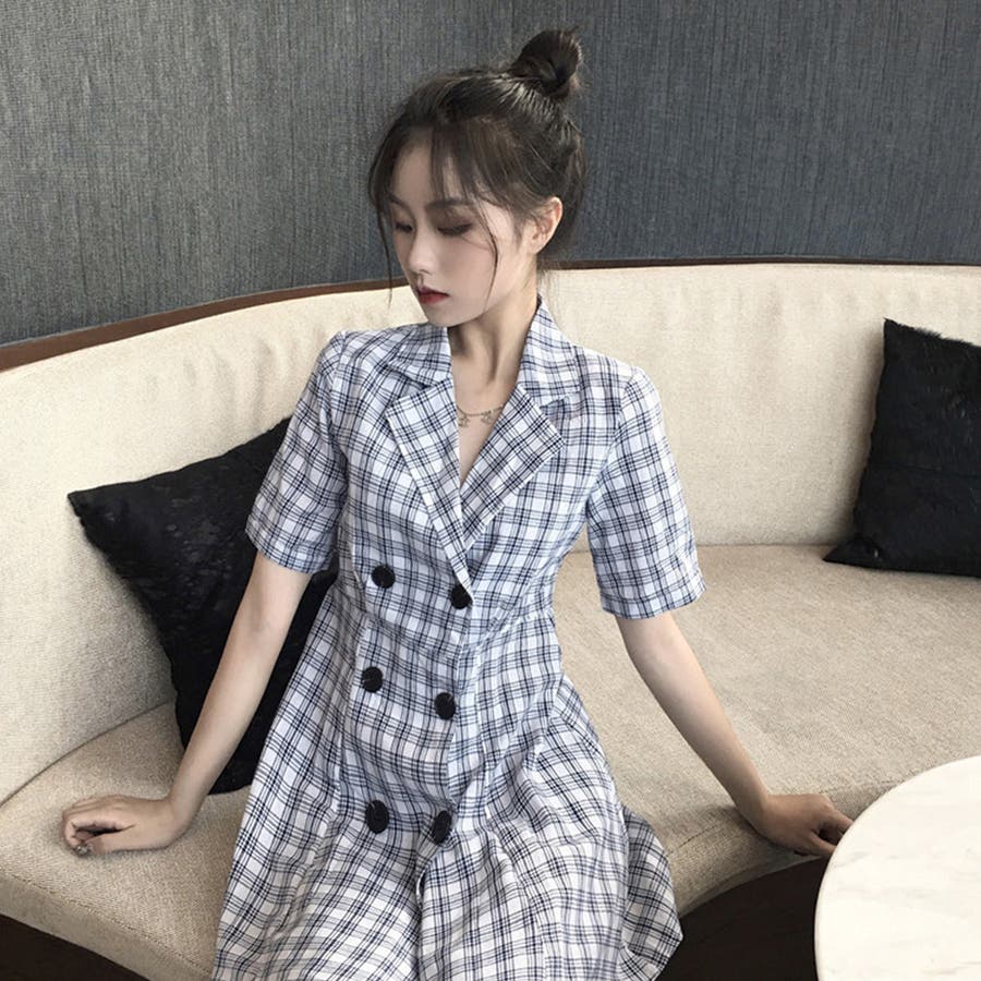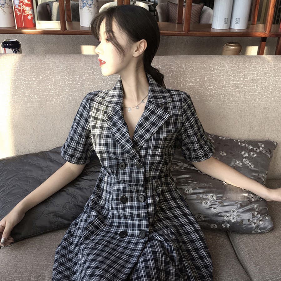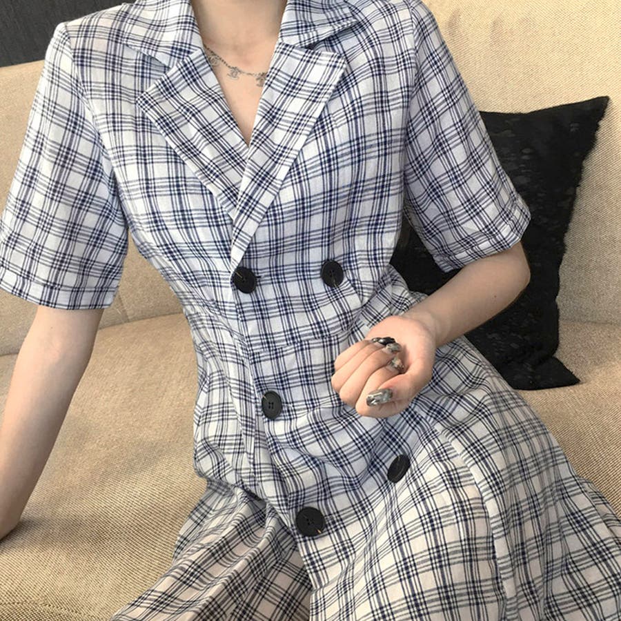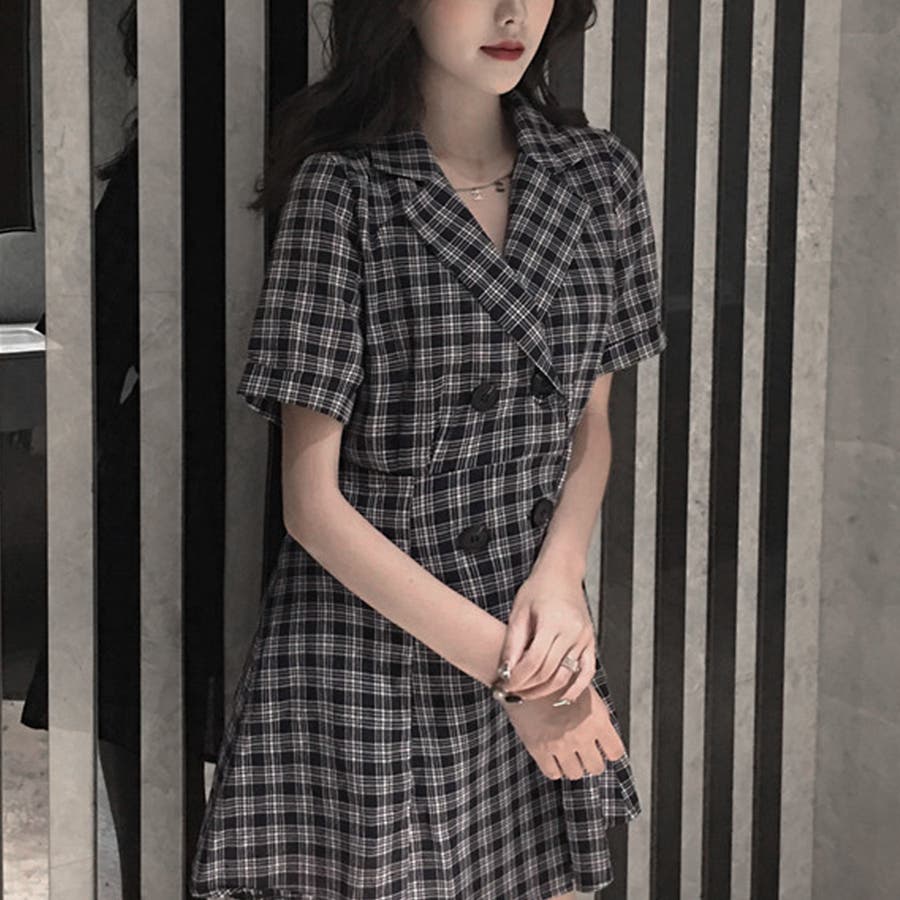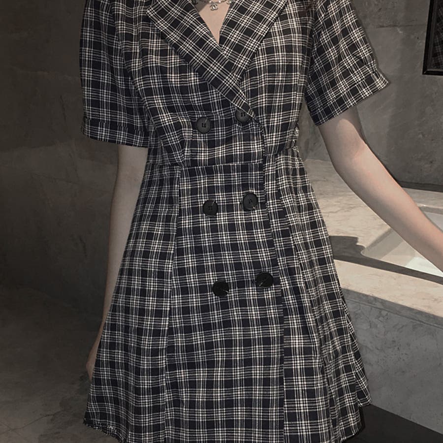 ダブルボタンのレトロなデザインで清楚な雰囲気が漂います