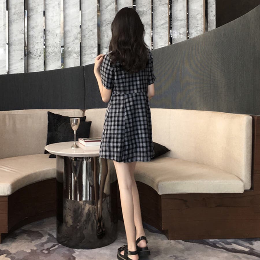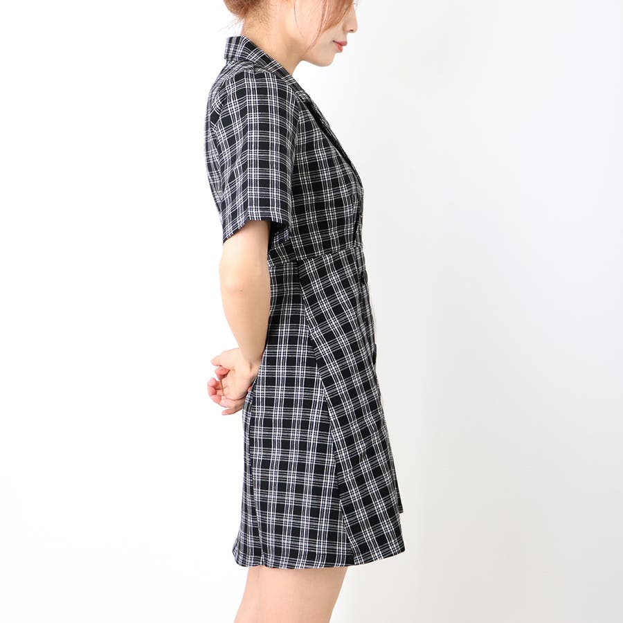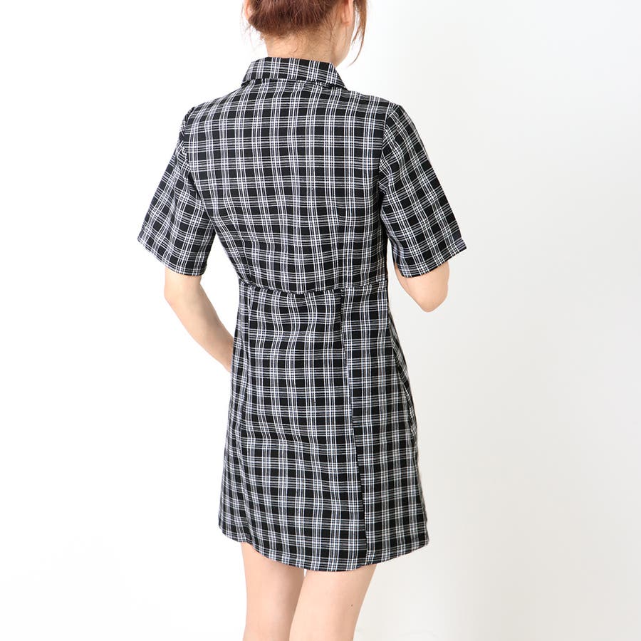 【ホワイト*ネイビー】チェック柄 ワンピース レディース