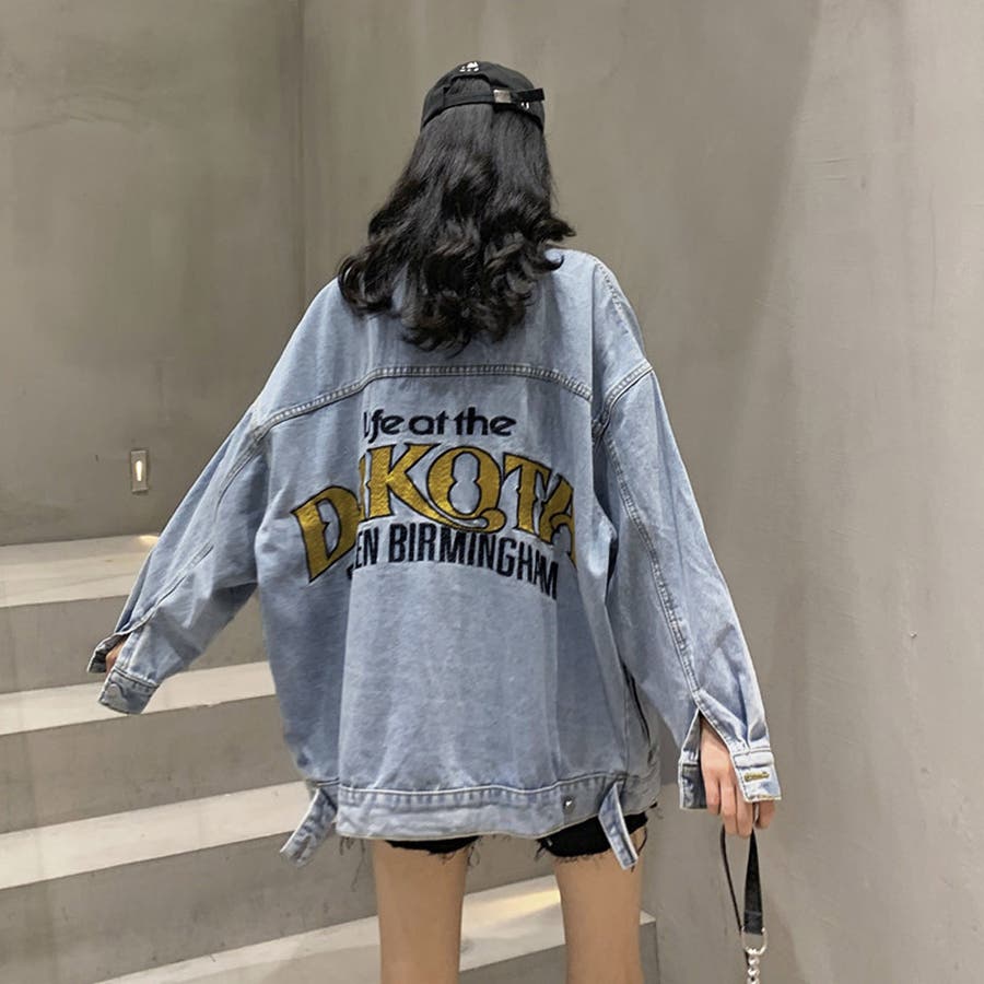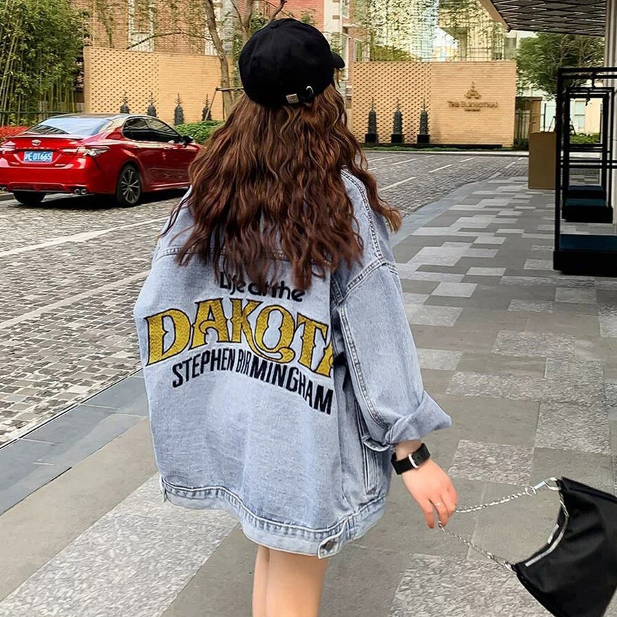 刺しゅう デニムコート 体型カバー 春秋冬 アウター ゆったり 英字プリント Gジャン オシャレ カジュアルトップス