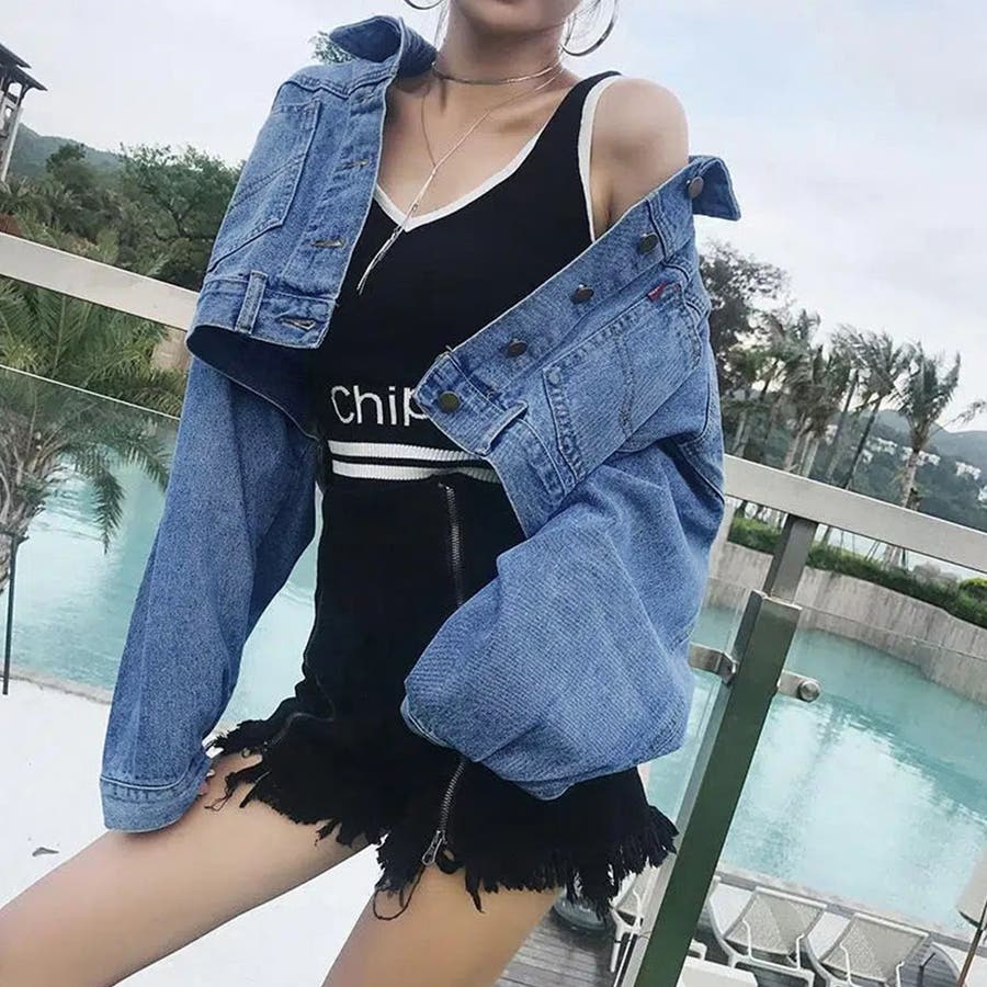 ドロップショルダー ライトアウター 秋 ミニ丈デニム羽織り