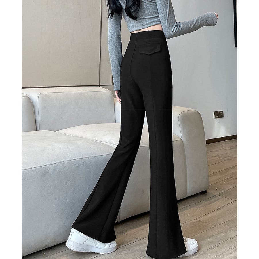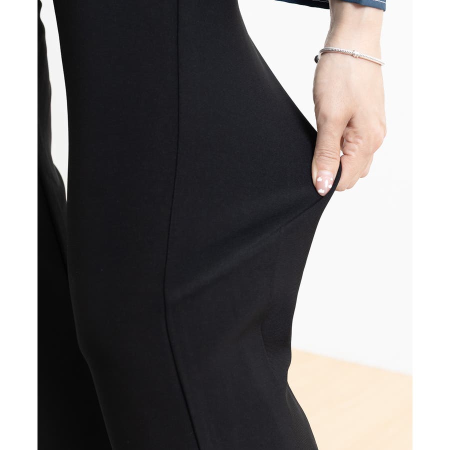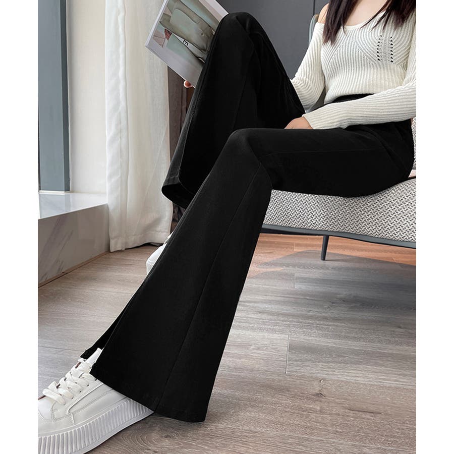 無地ロングパンツ黒 細見えパンツ 美尻 着やせボトムス女性