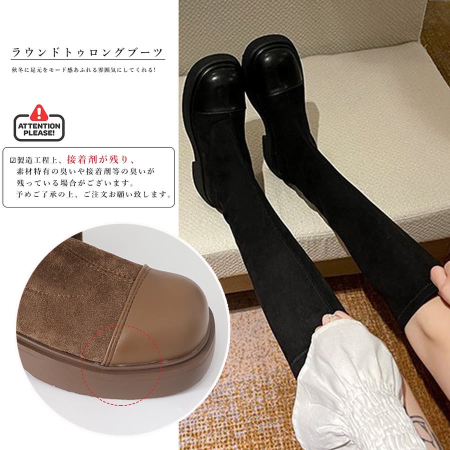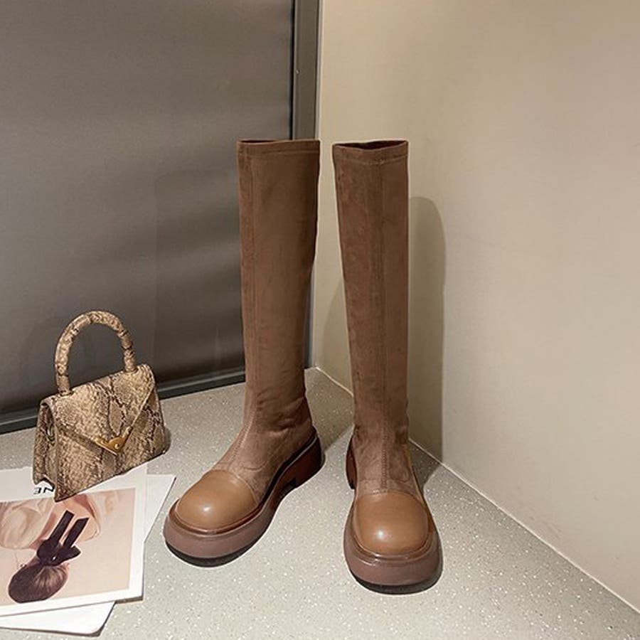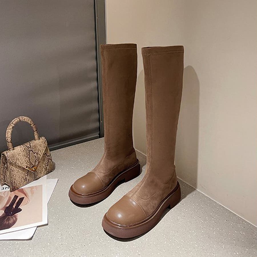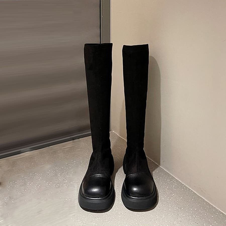 ロングブーツ ラウンドトゥ 厚底ブーツ