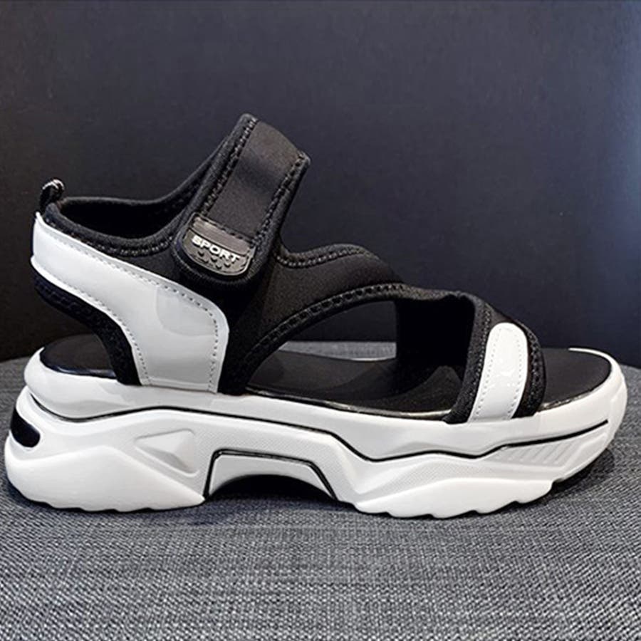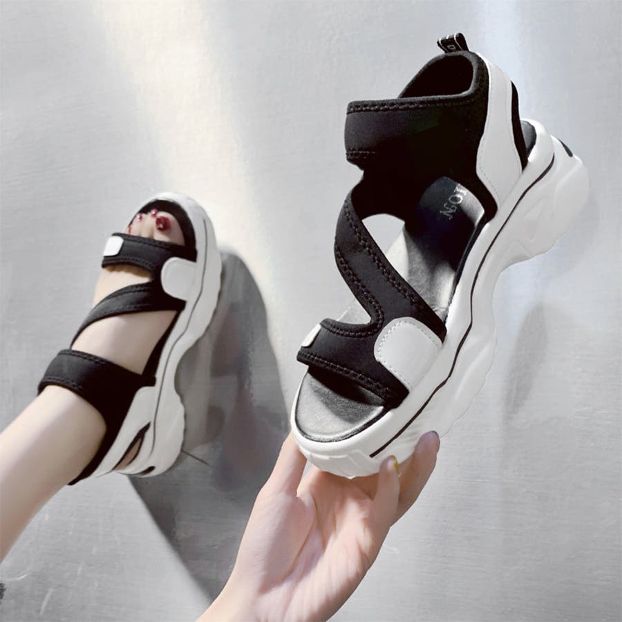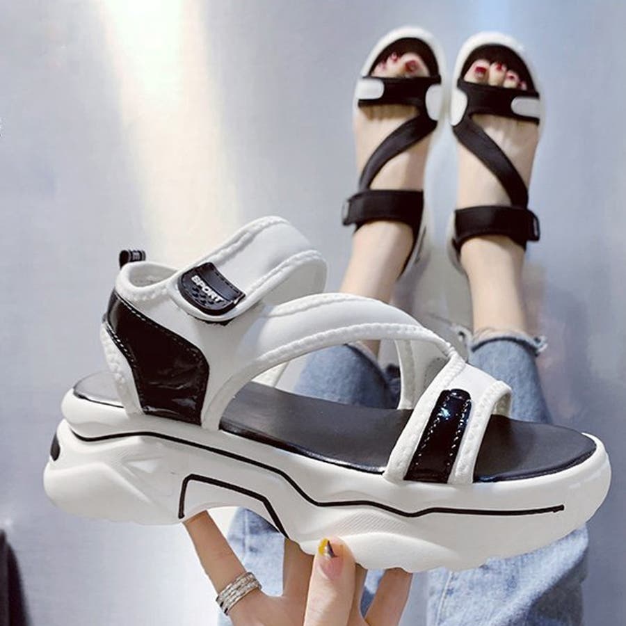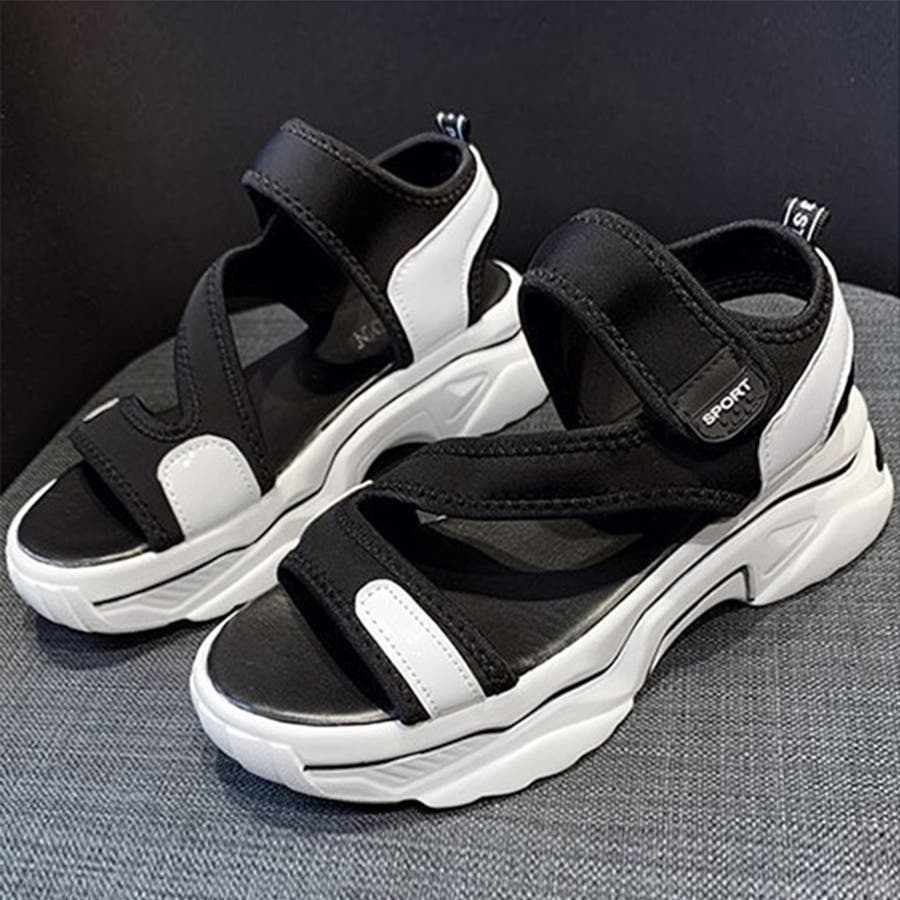 スポサン白黒 韓国 歩きやすいシューズ ボリュームサンダル