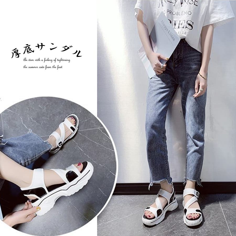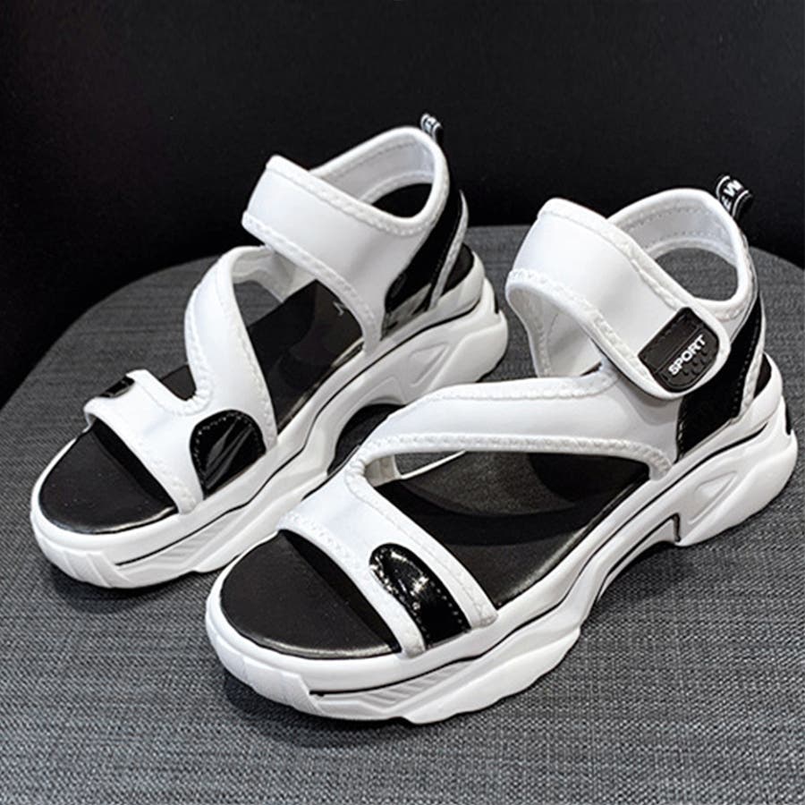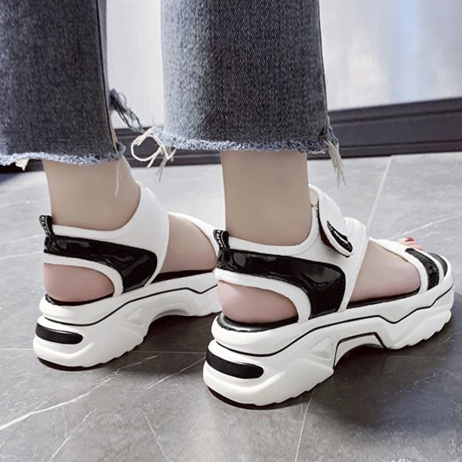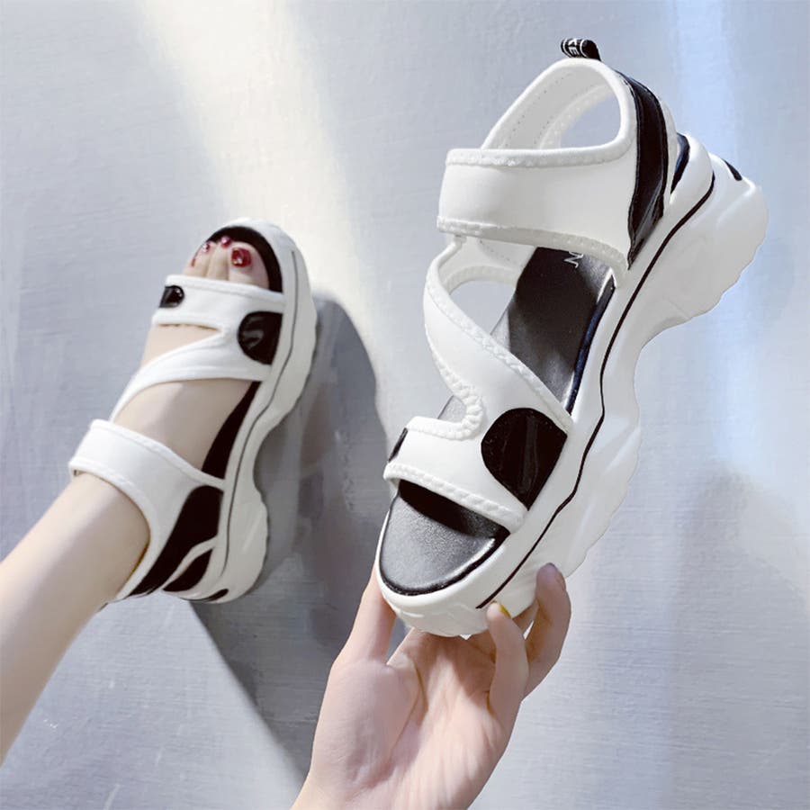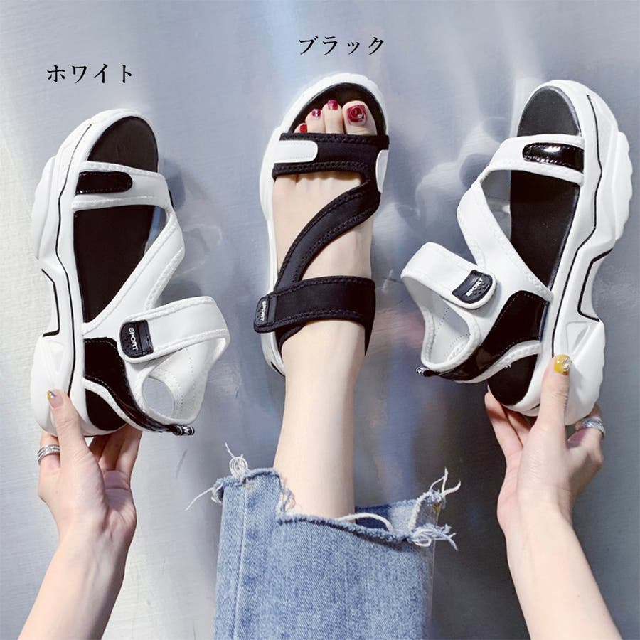 スポサン白黒 韓国 歩きやすいシューズ ボリュームサンダル