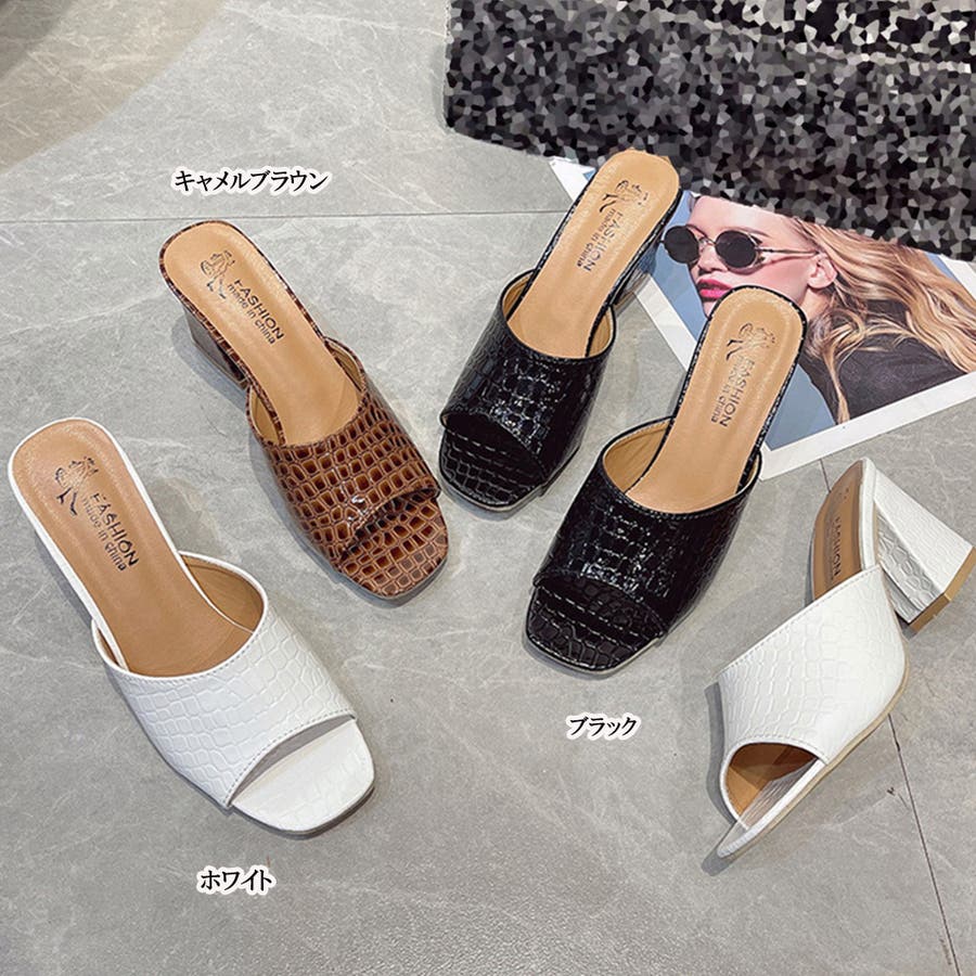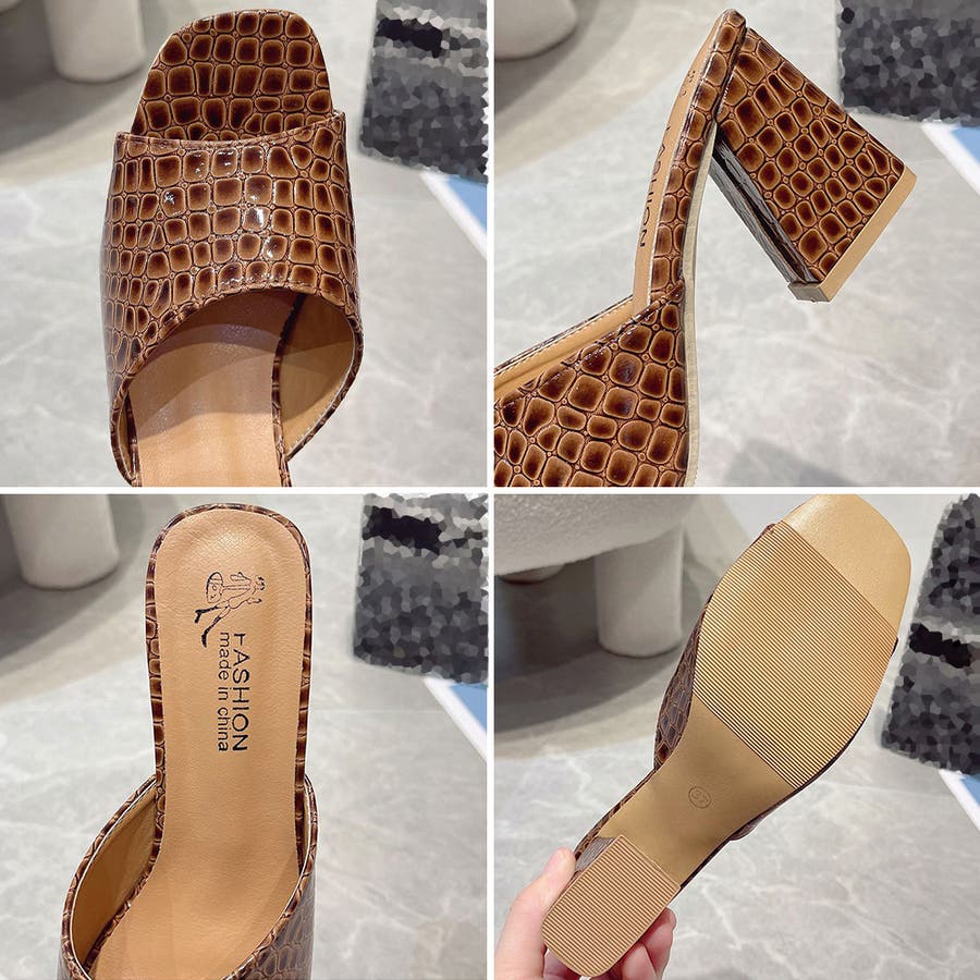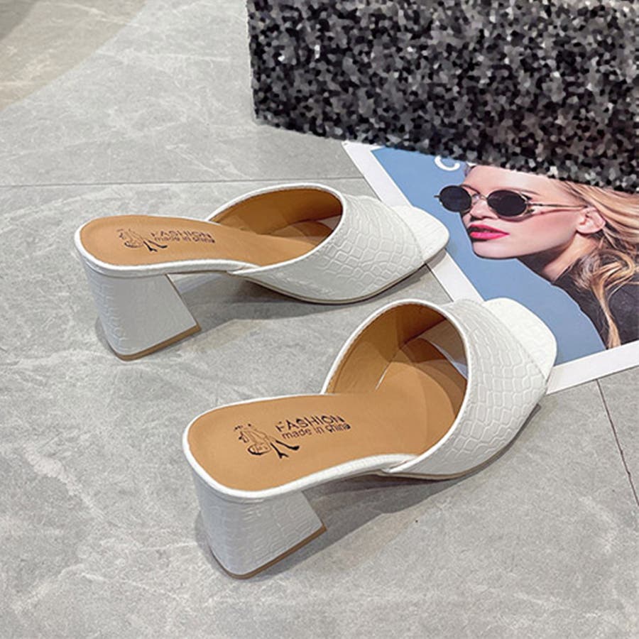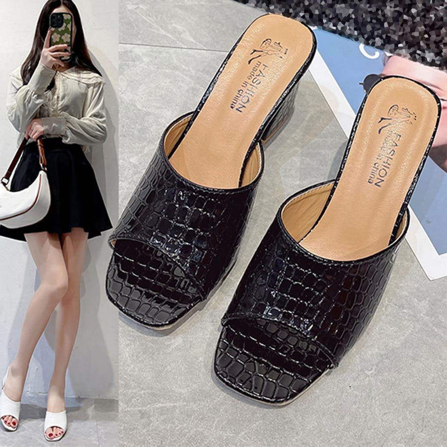 スクエアトゥ サンダル チャンキーヒール