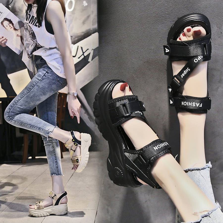 厚底スポーツサンダル ベルクロサンダル夏