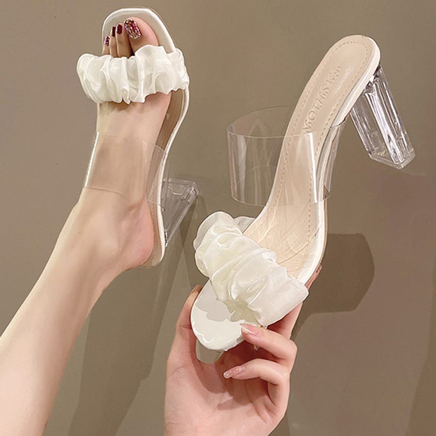クリアヒール サンダル スクエアトゥ 夏