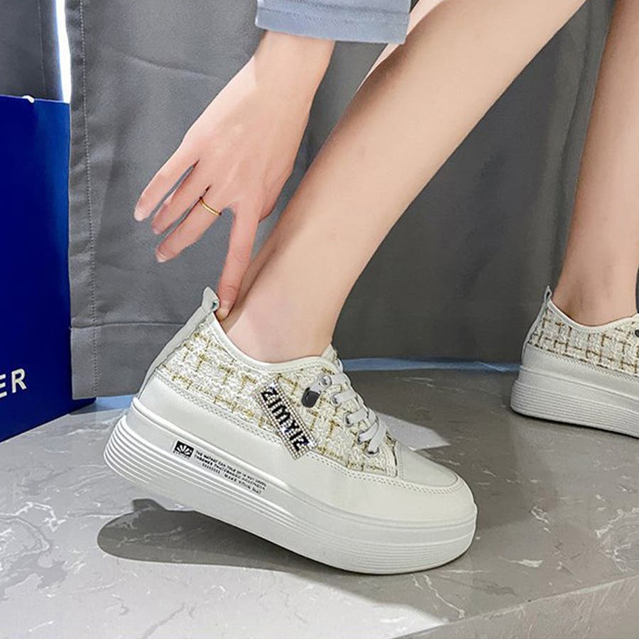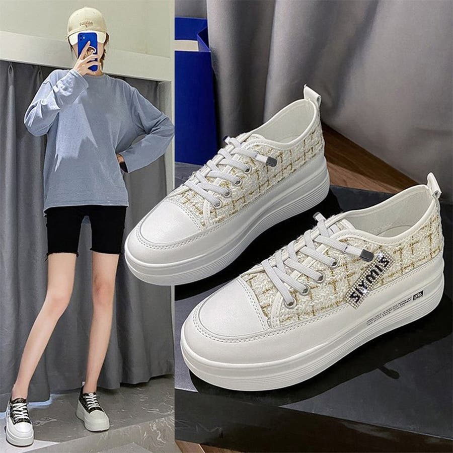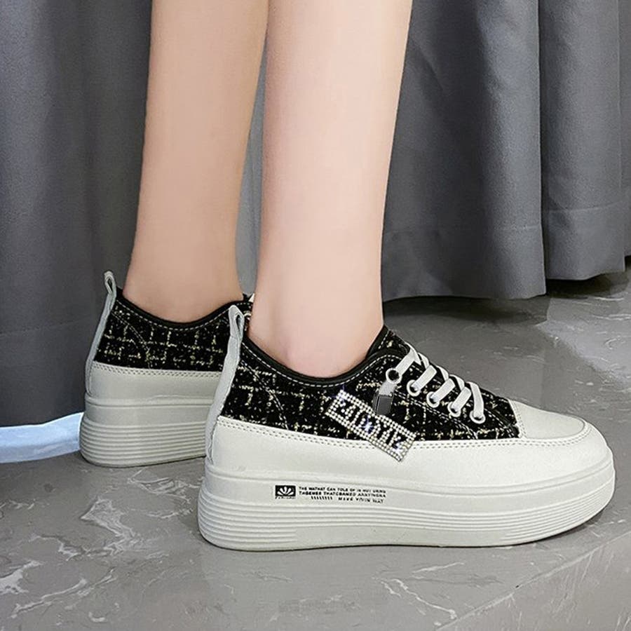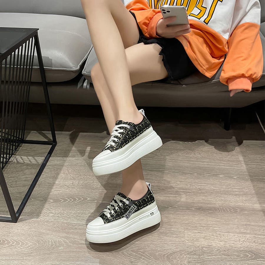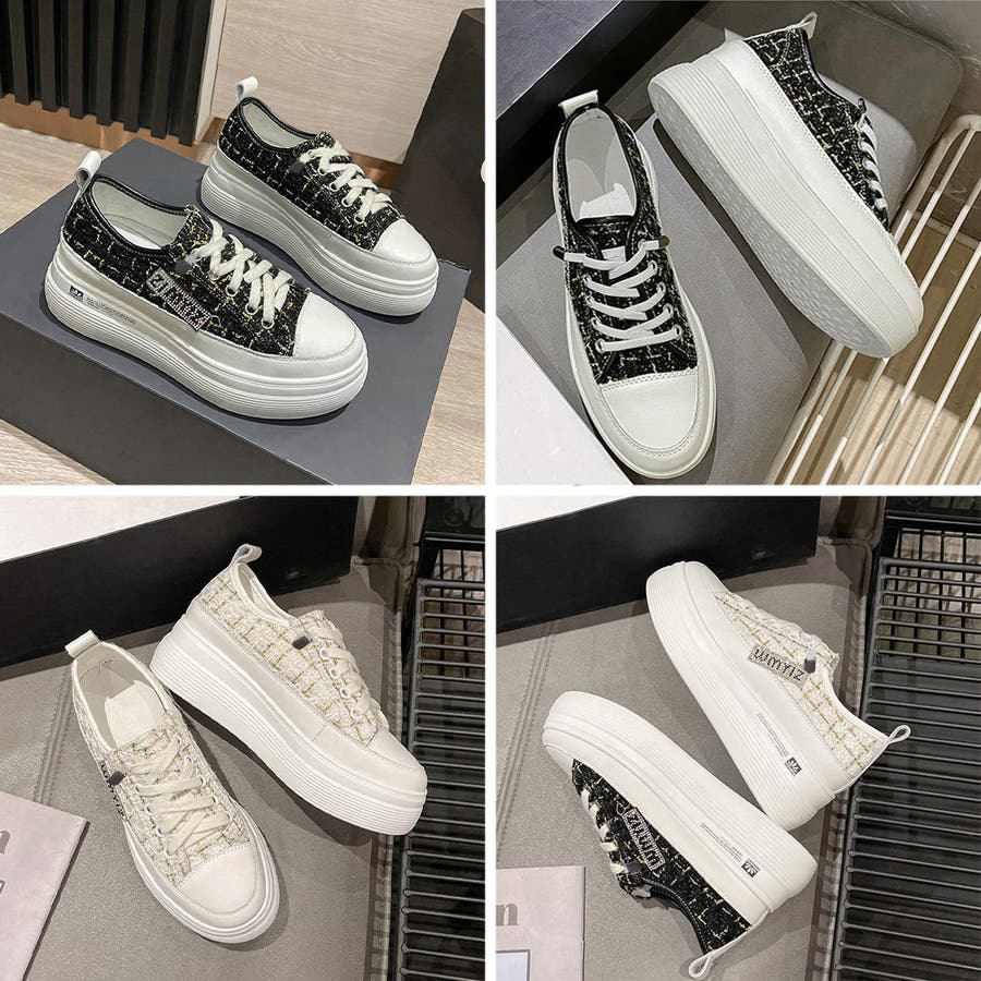 ツイードスニーカー 厚底シューズ 韓国