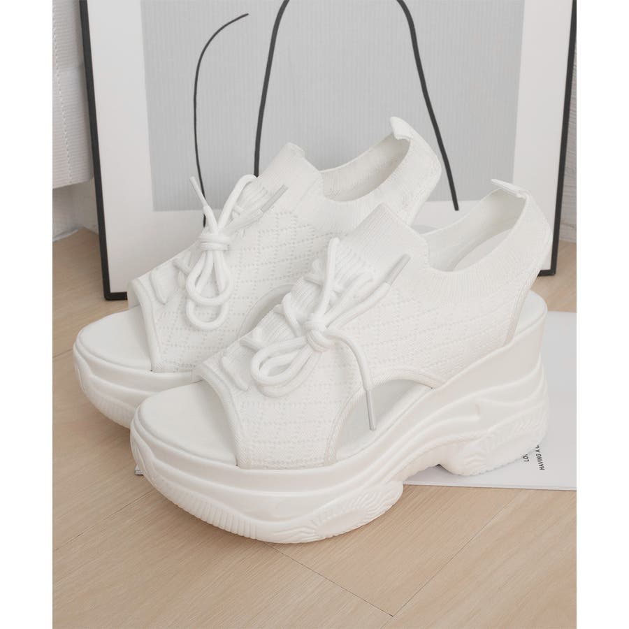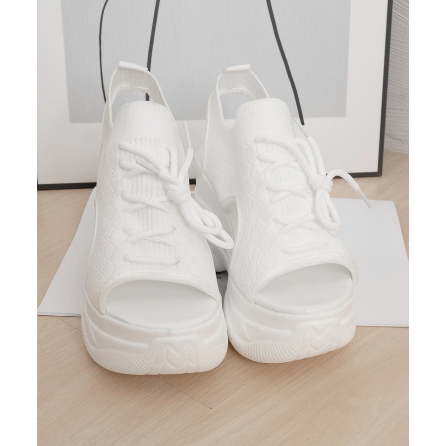 レースアップ×ニット素材で、カジュアルなアイテムとも相性抜群
