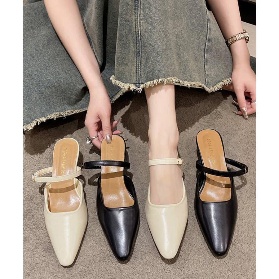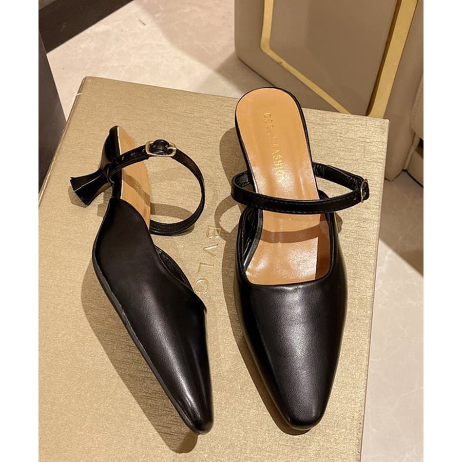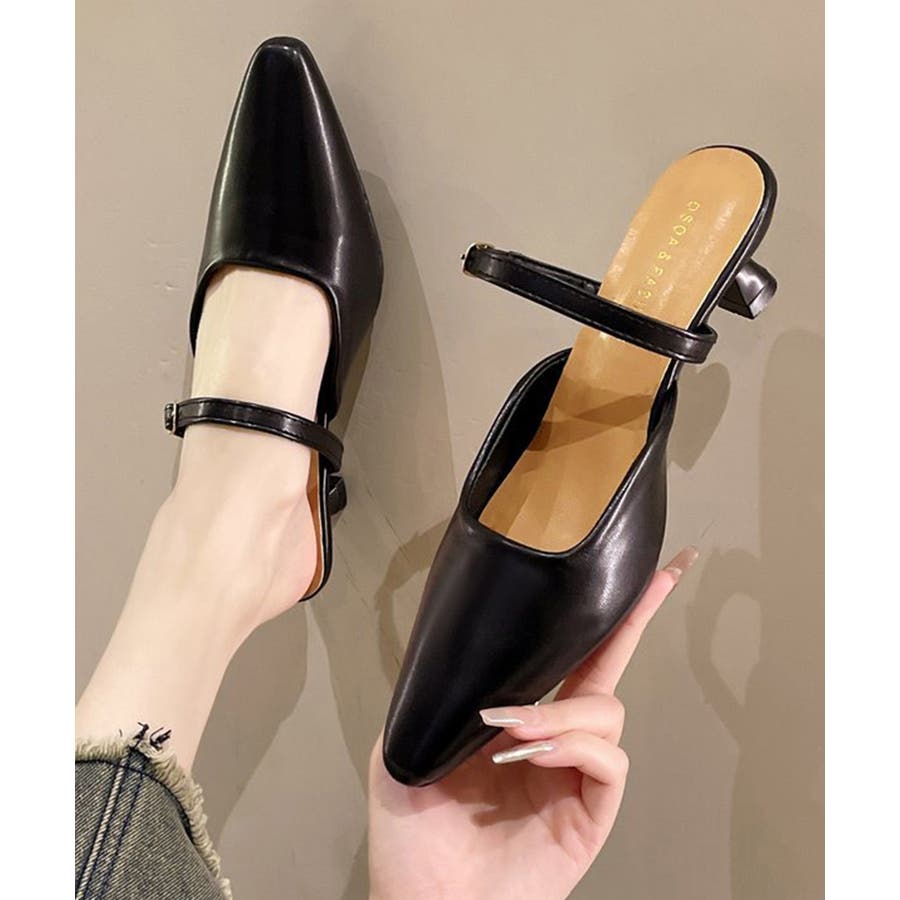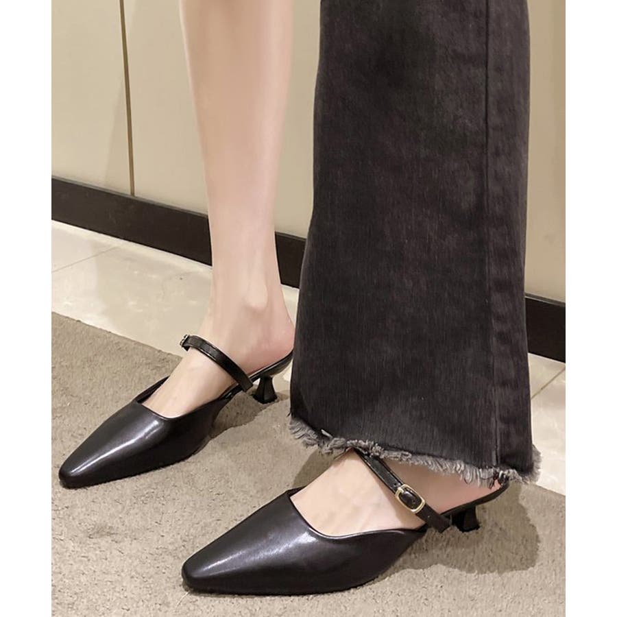 ミュールサンダル春 パーティーパンプス きれいめミュール黒