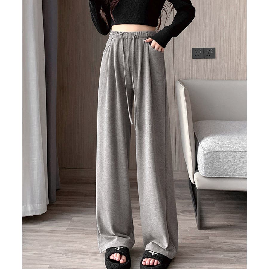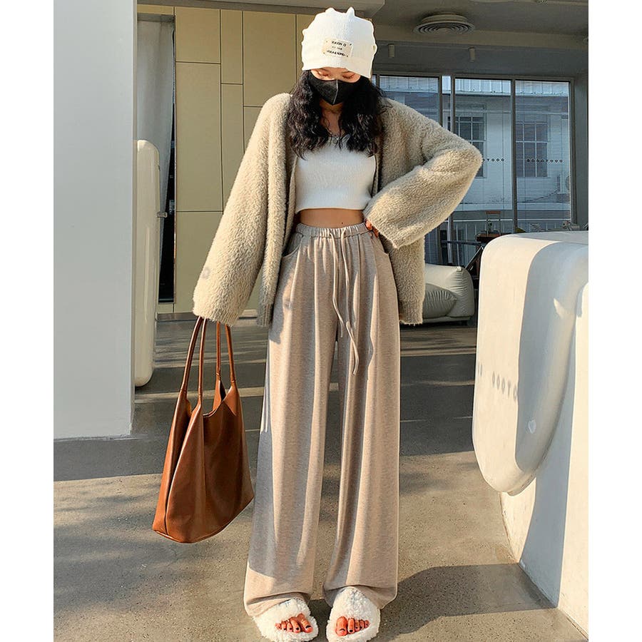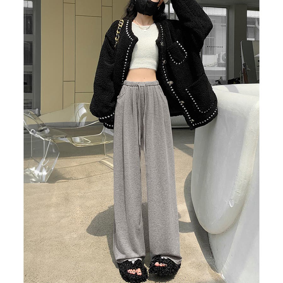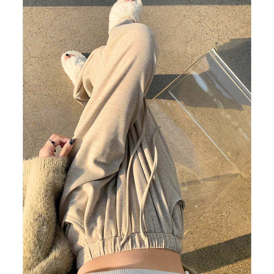 薄手スウェットパンツ 韓国風ワイドパンツ