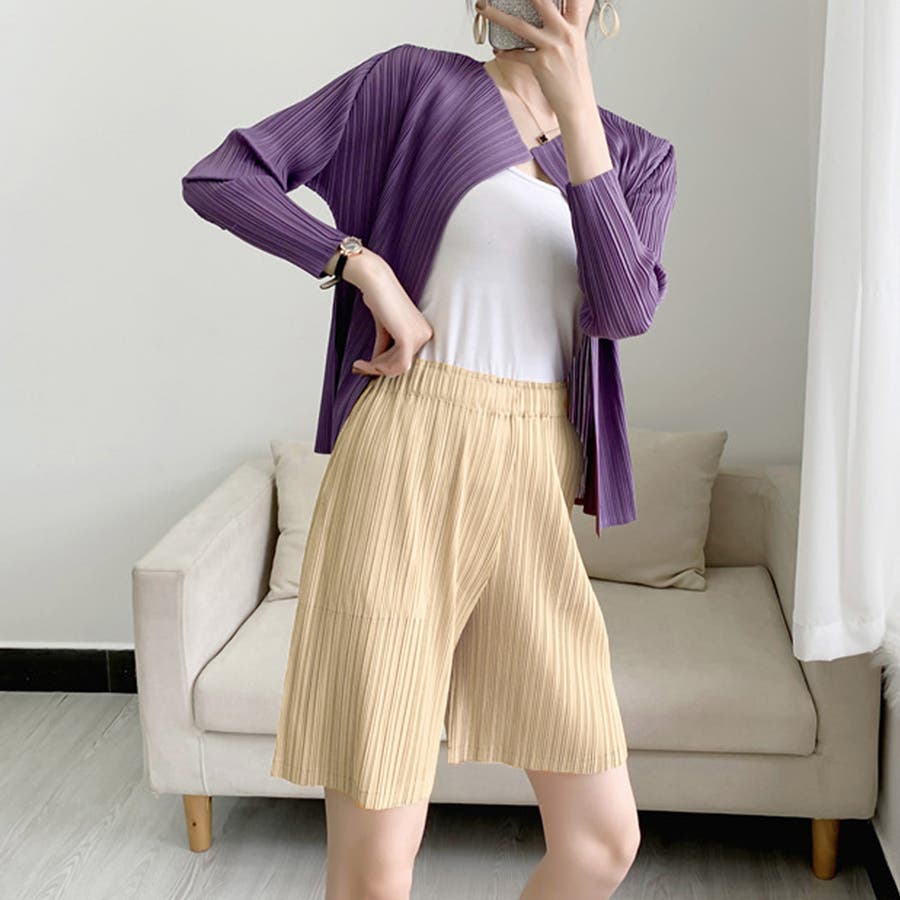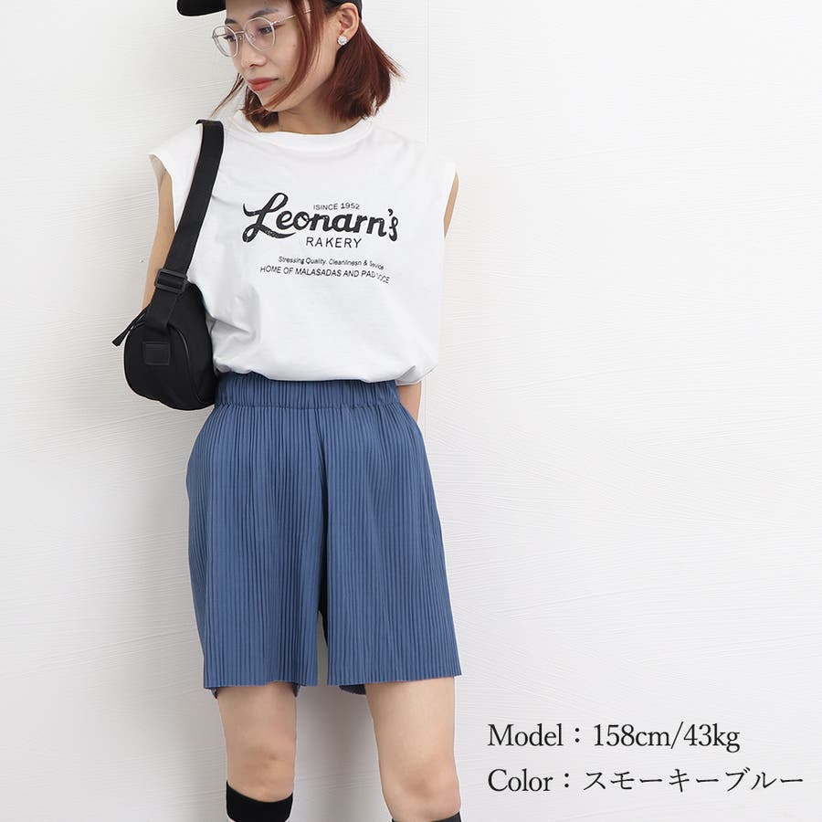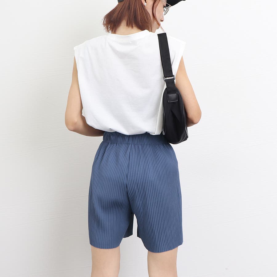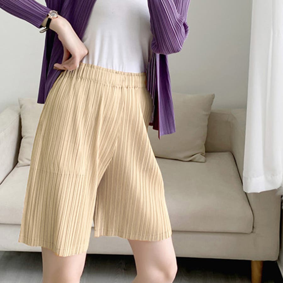 【ベージュ】プリーツパンツ ショート ワイドパンツ