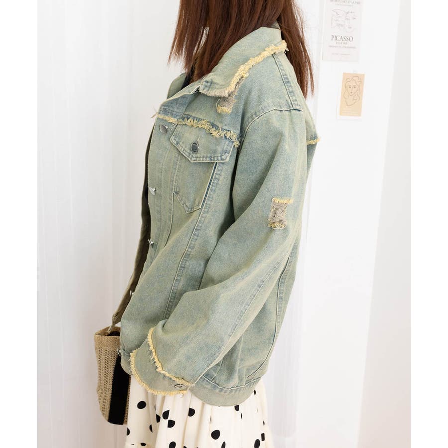 フリンジデニムジャケット ダメージデニム
