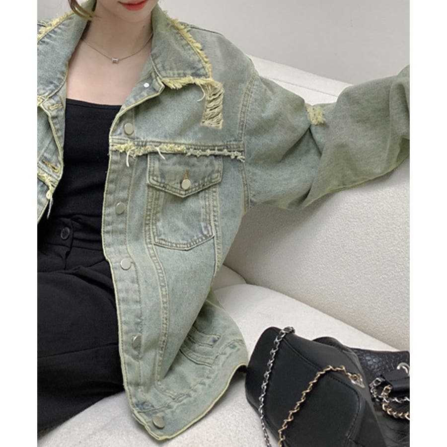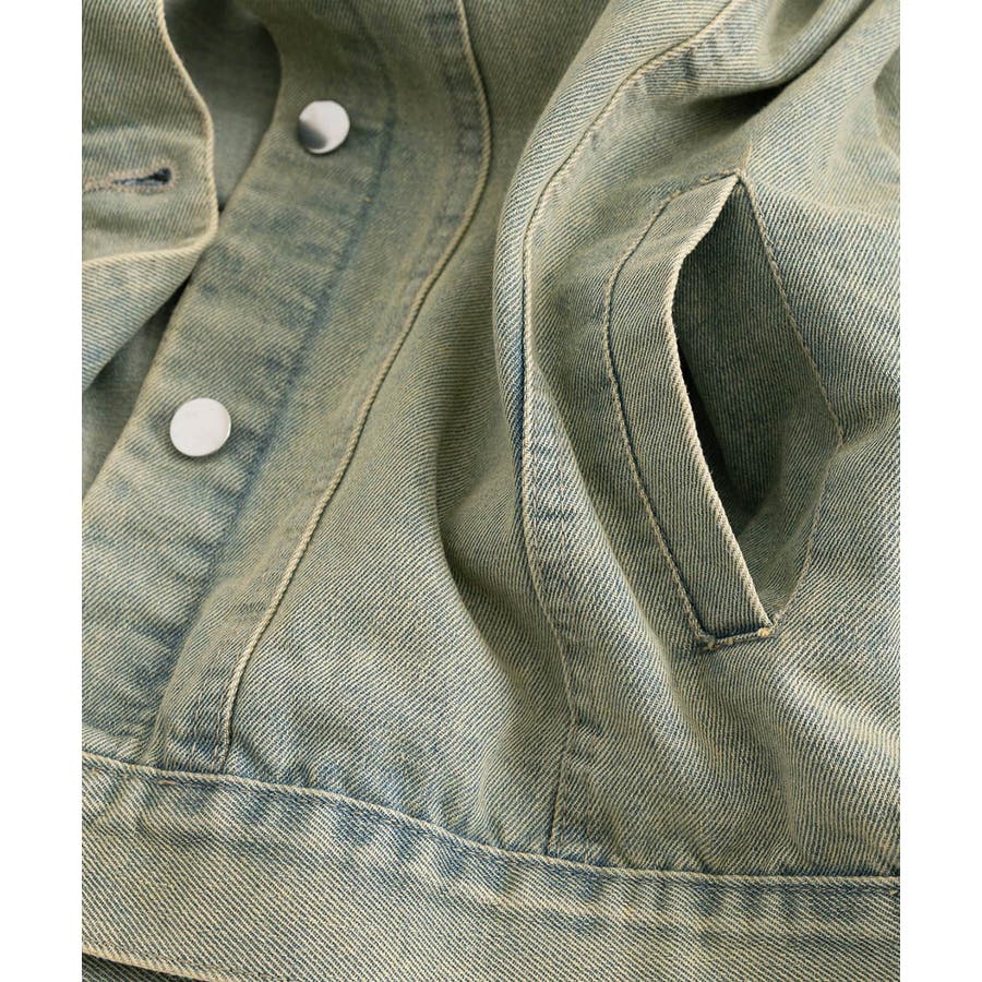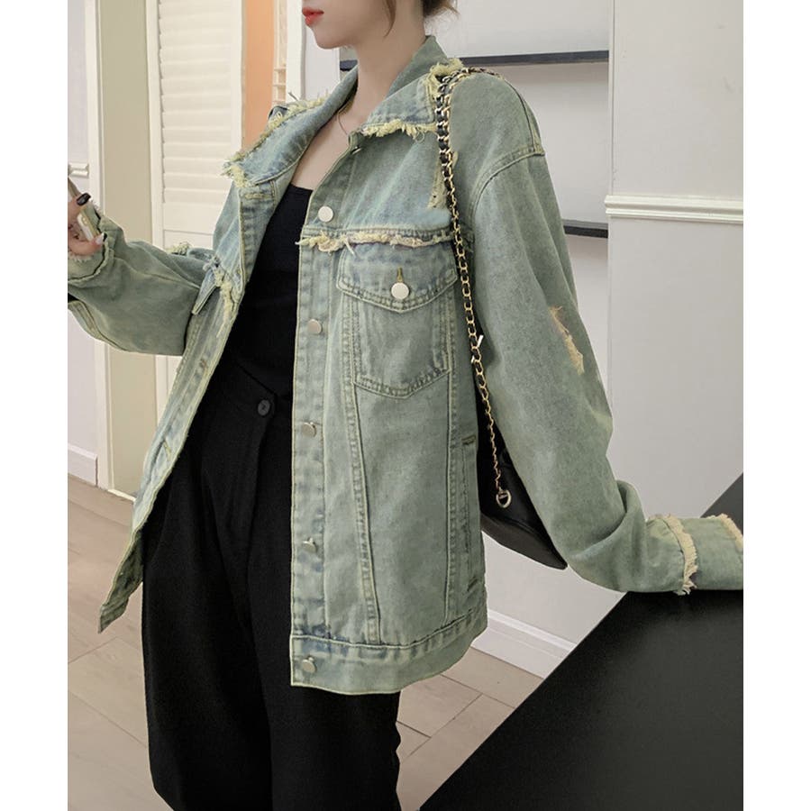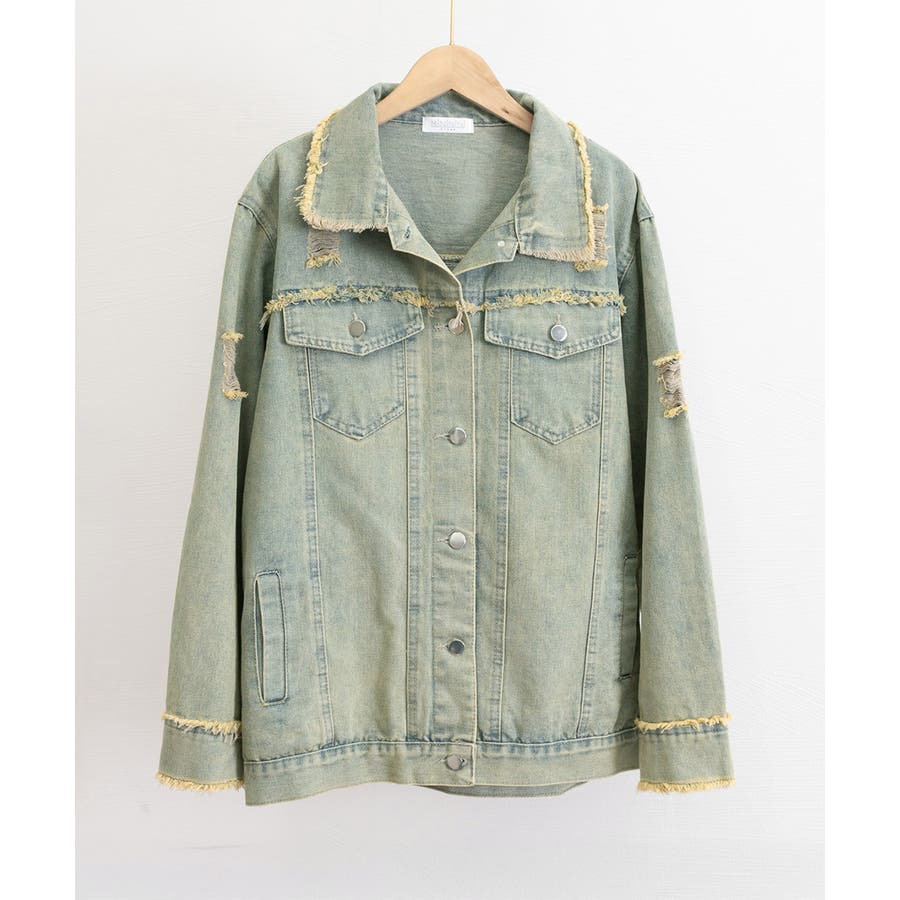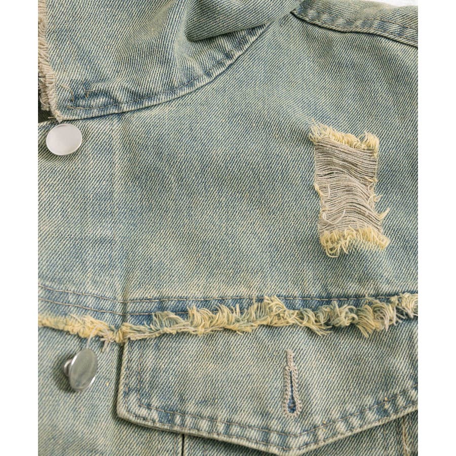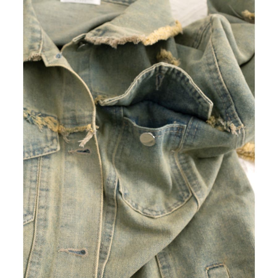 ダメージ加工が施されたヴィンテージ風デニムジャケット。