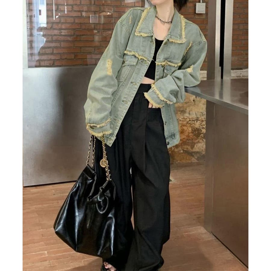 切りっぱなしのフリンジデザインが、こなれ感とエッジの効いたスタイルを演出。