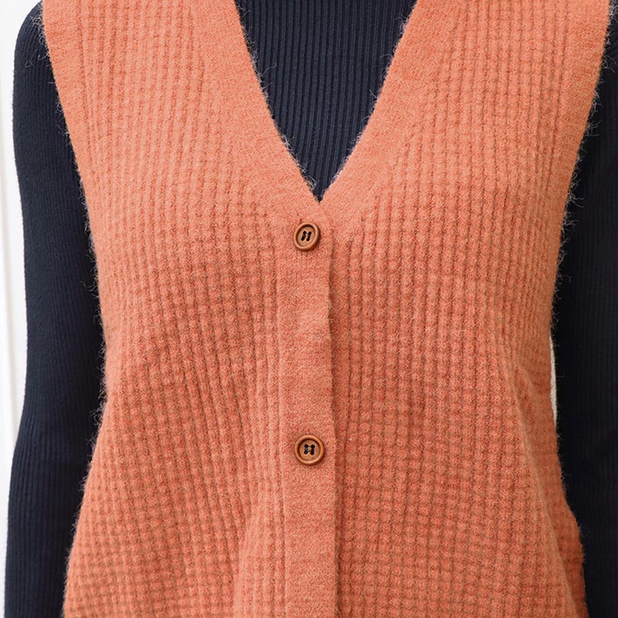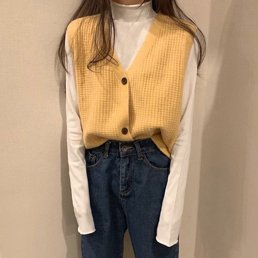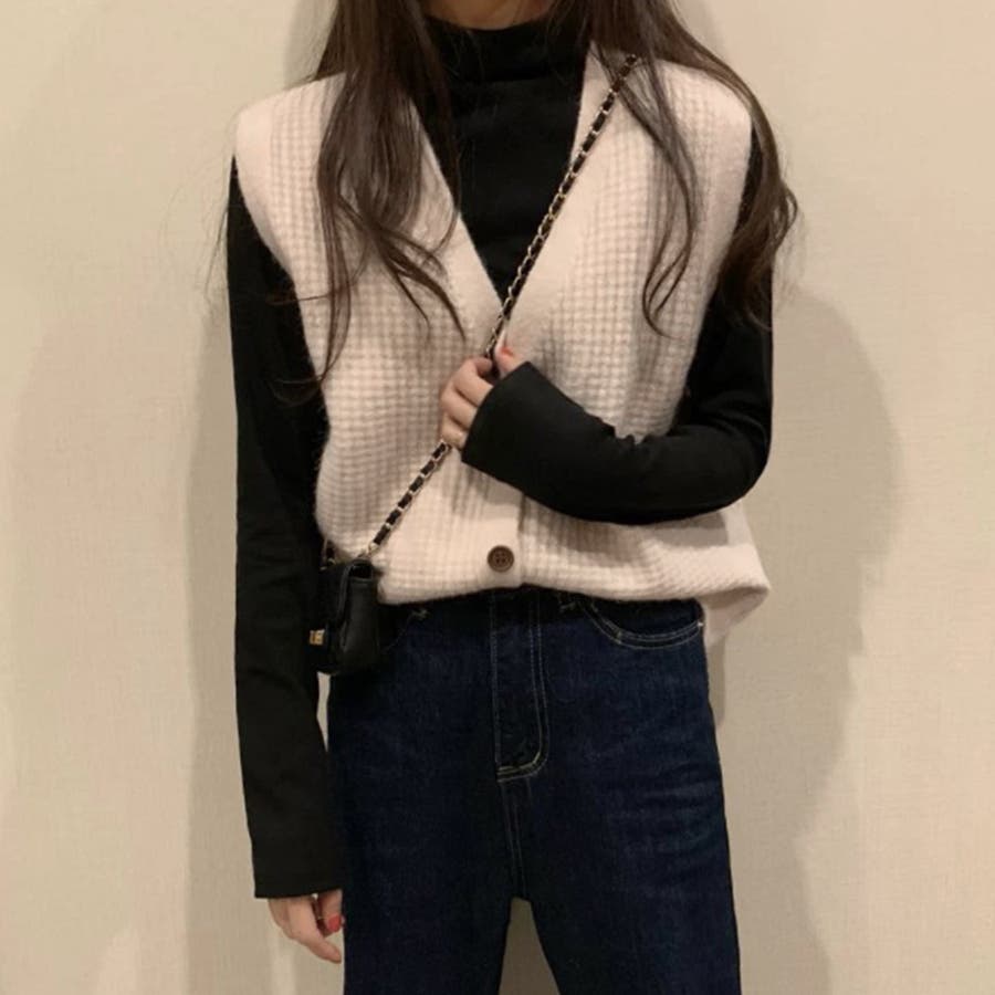 胸元のざっくりとしたデザインでコーデがグッとお洒落になるvネックニットベストです