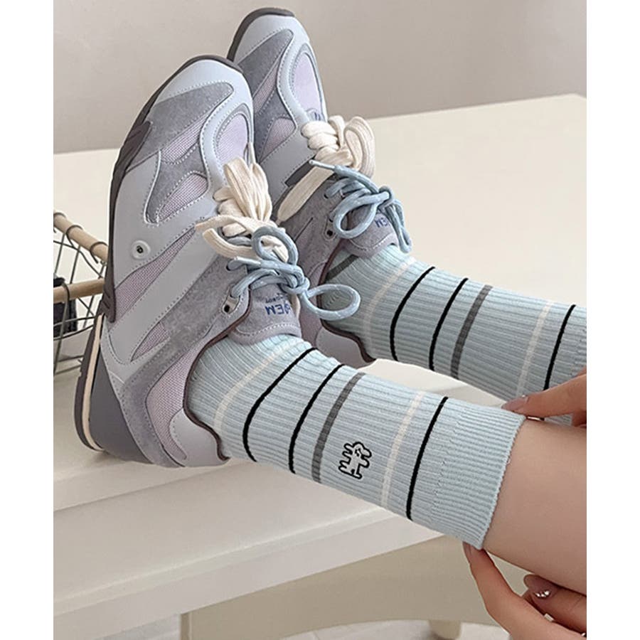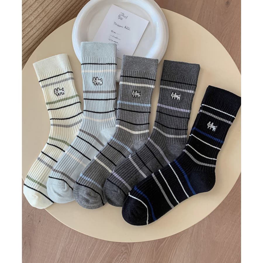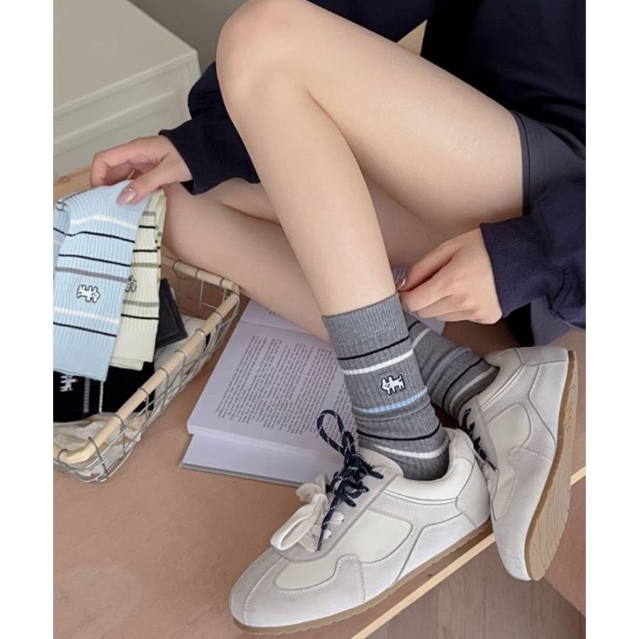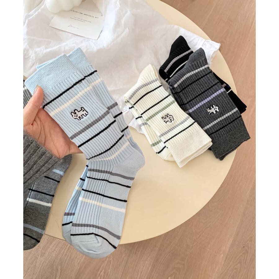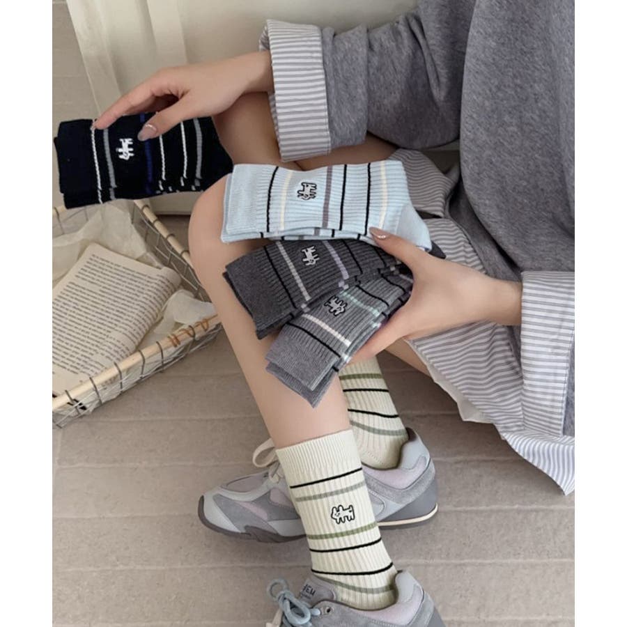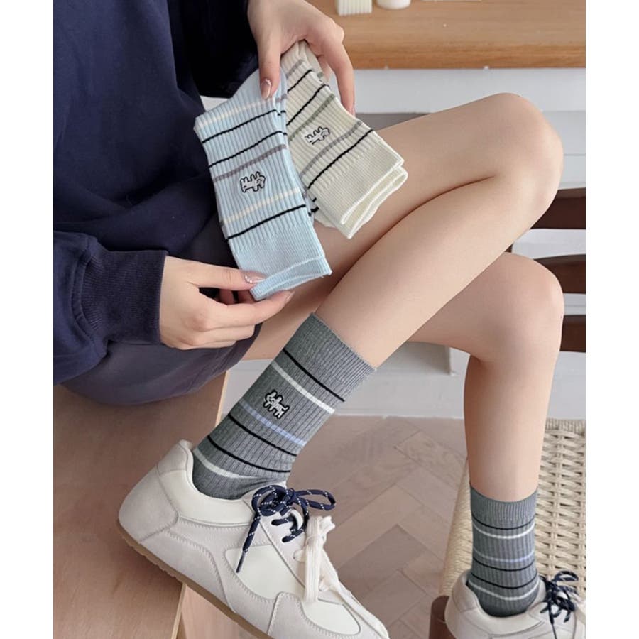 カジュアルなボーダー柄が目を引くミドル丈ソックス。