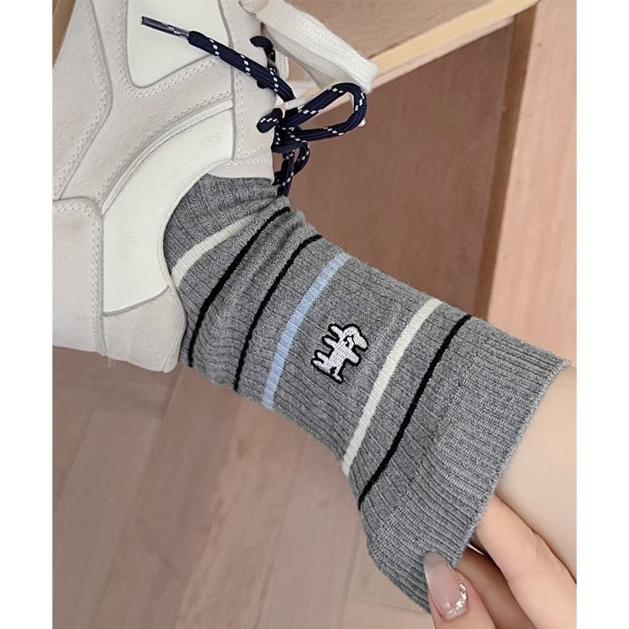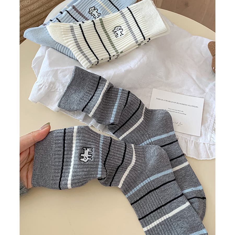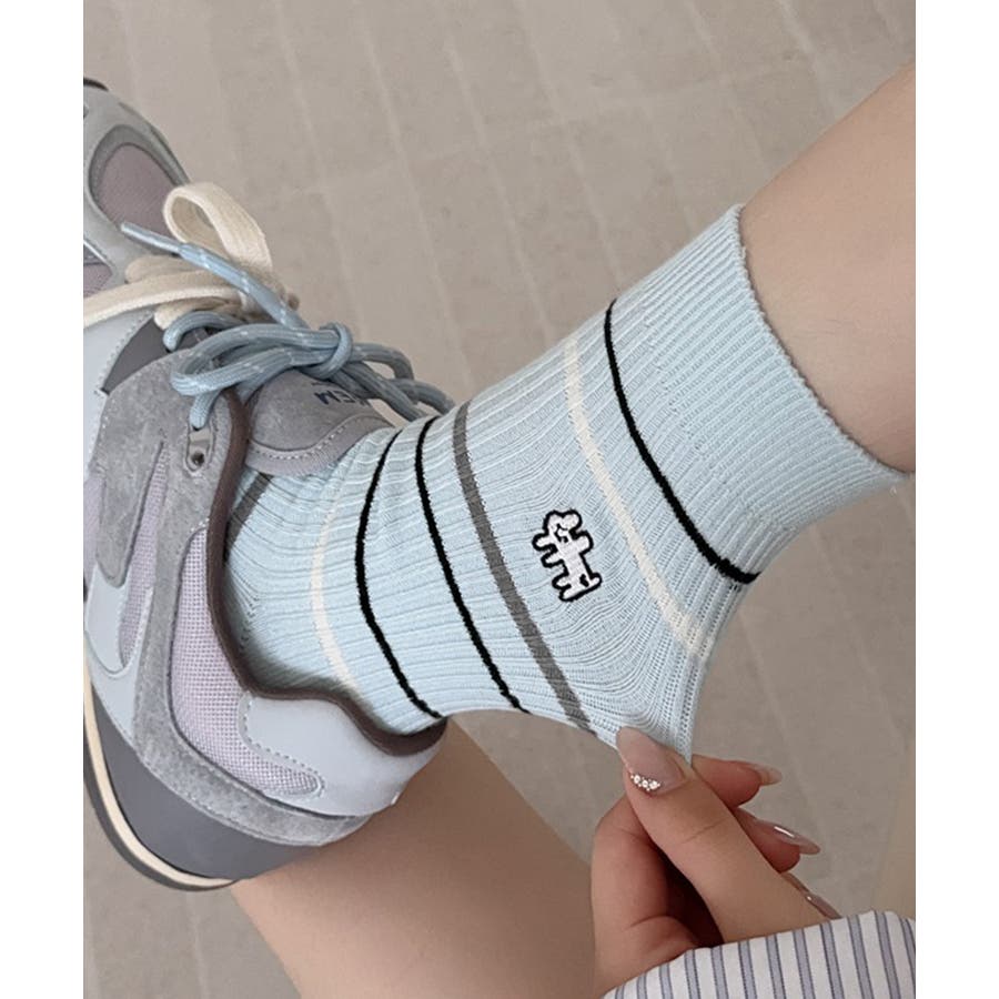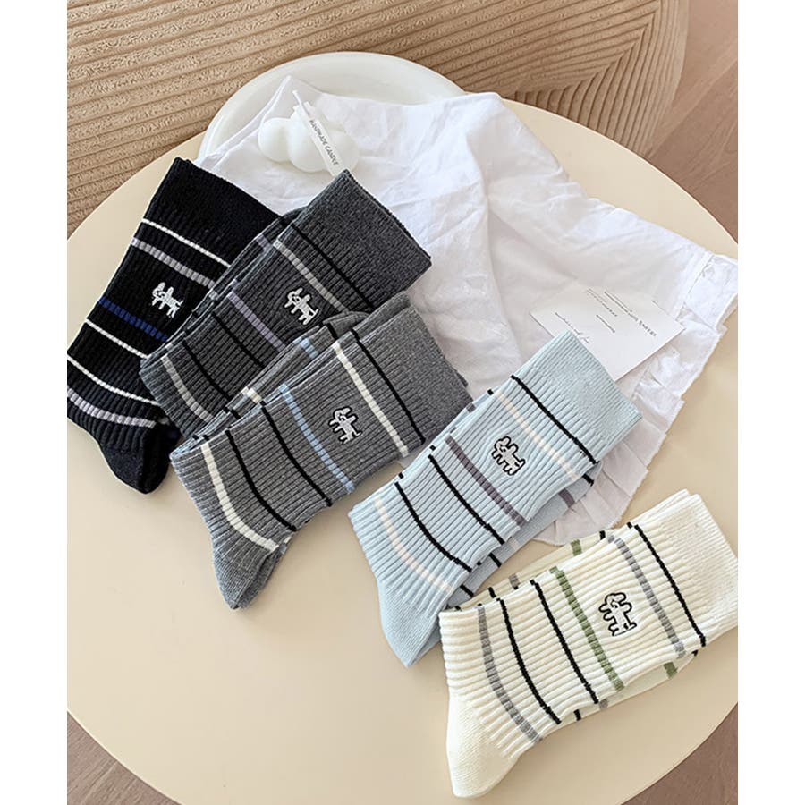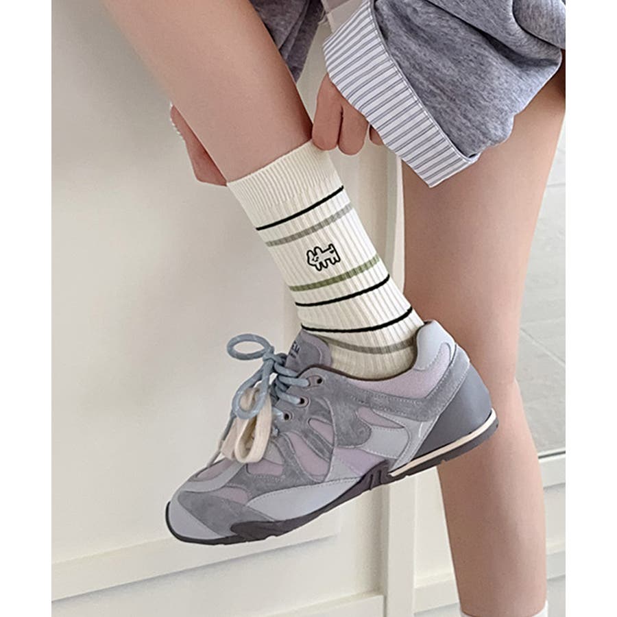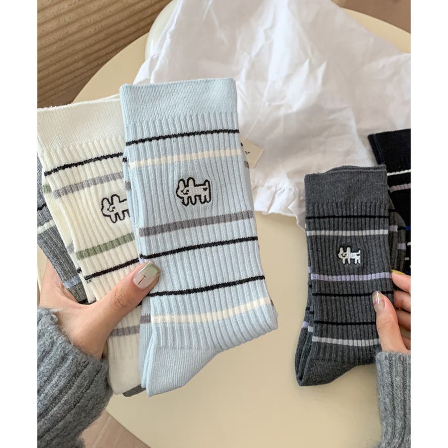 カジュアルなボーダー柄が目を引くミドル丈ソックス。