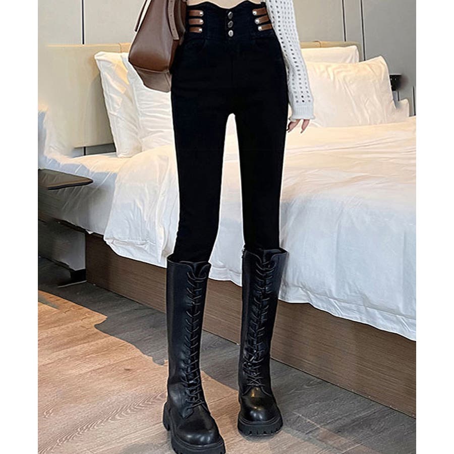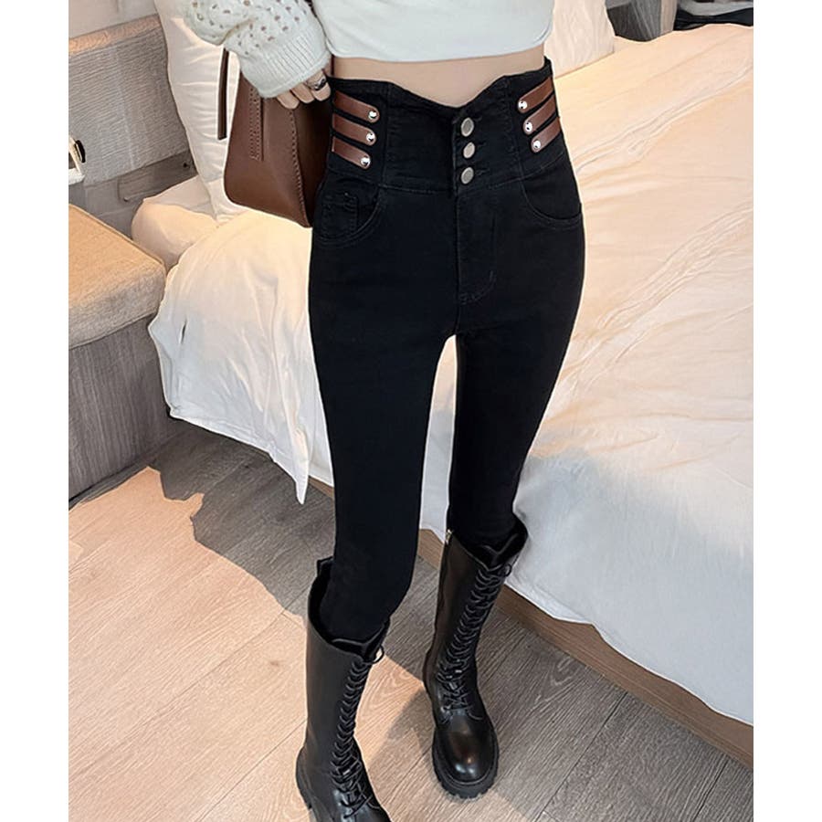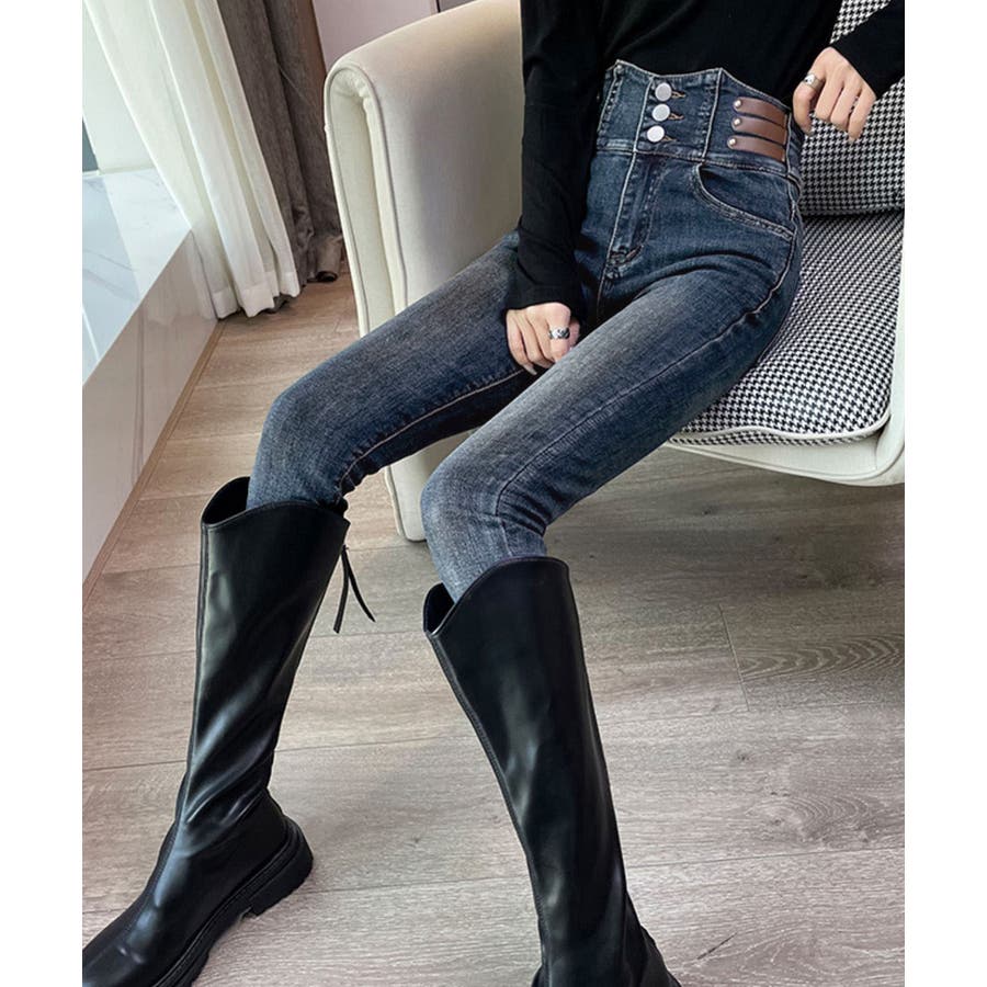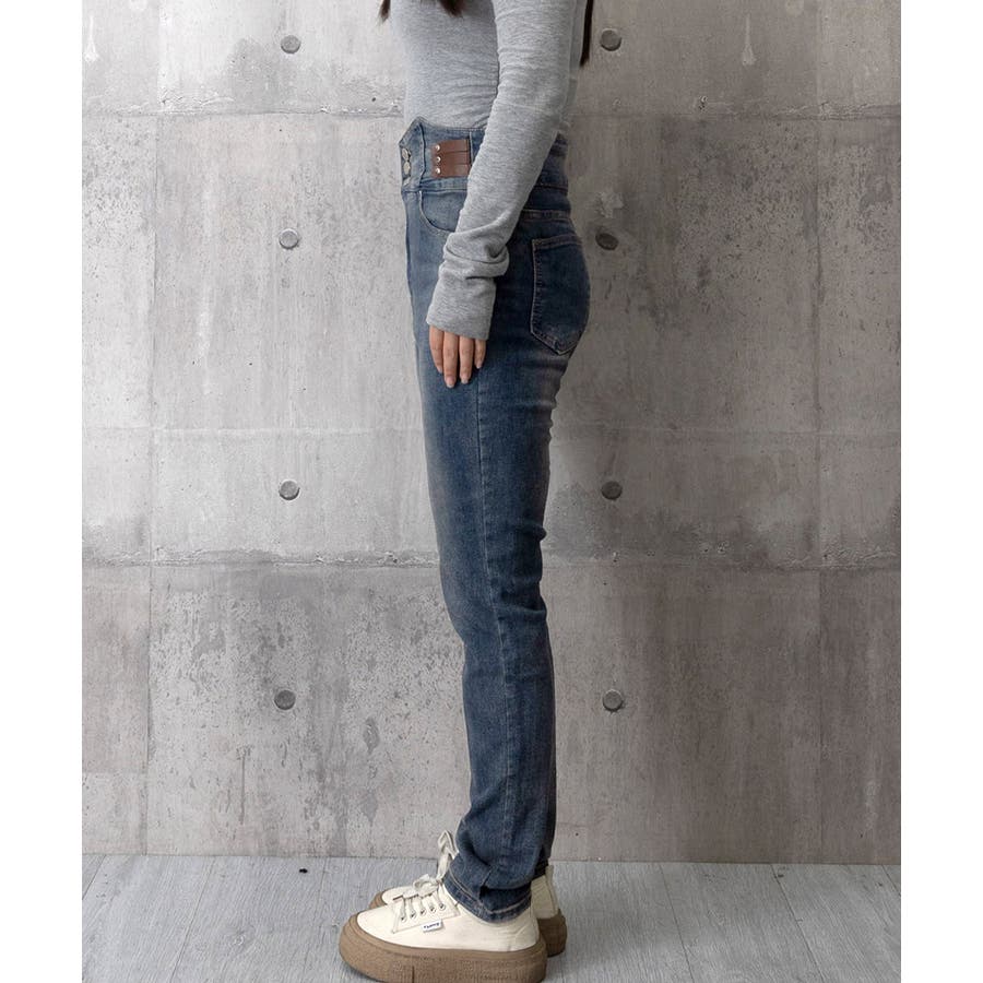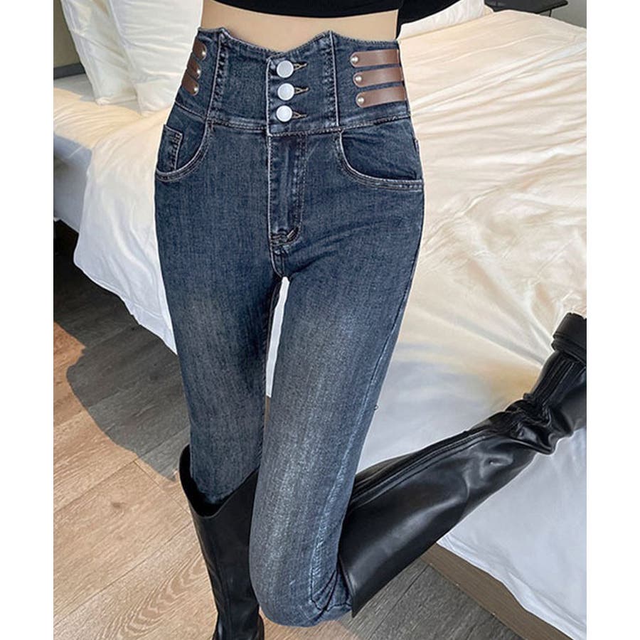 ベルトデザイン スキニーデニムパンツ美脚