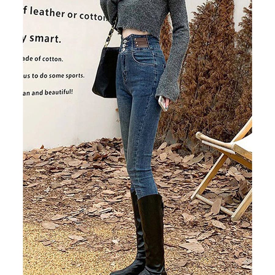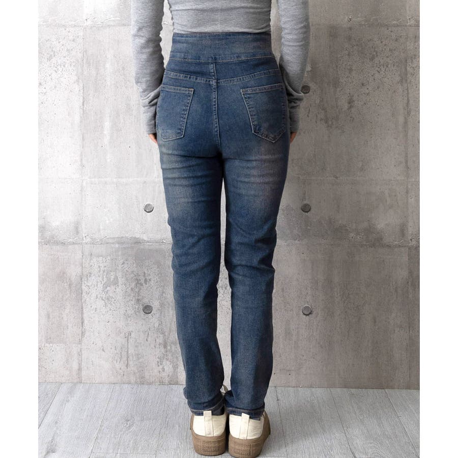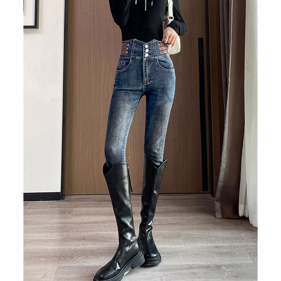 トレンド感抜群のハイウエストスキニーデニムパンツ。
